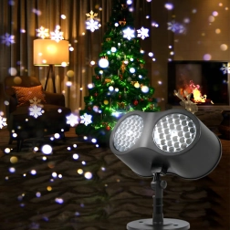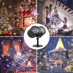 Iedegiet svētkus stilīgi. Divkāršā LED optika projicē spilgtus, dinamiski kustīgus sniega motīvus, kas nekavējoties rada svētku noskaņu uz mājas fasādes, viesistabā vai terasē. Platais pārklājums nosedz lielas virsmas un nodrošina izteiksmīgu efektu arī lielākā attālumā.