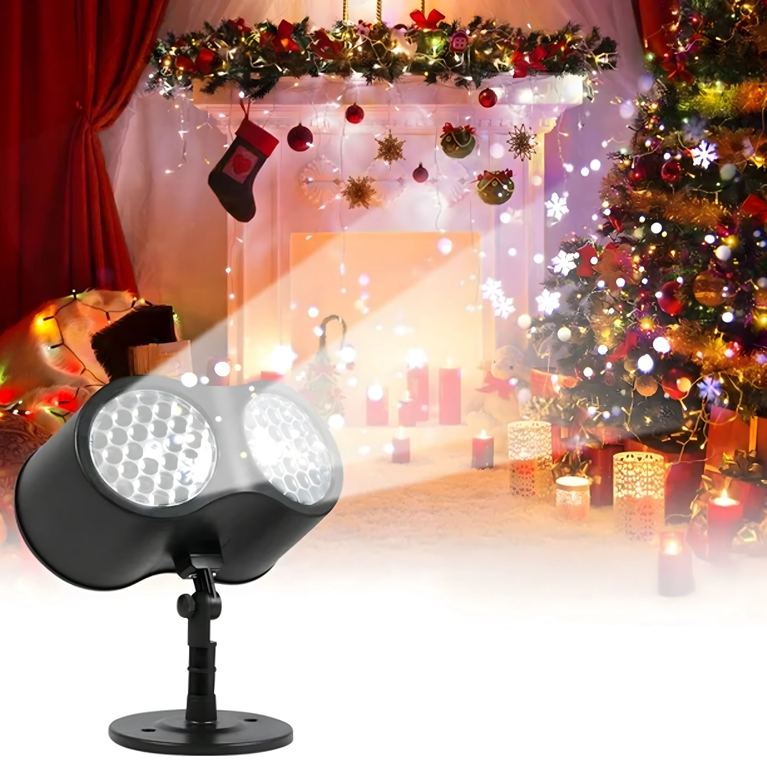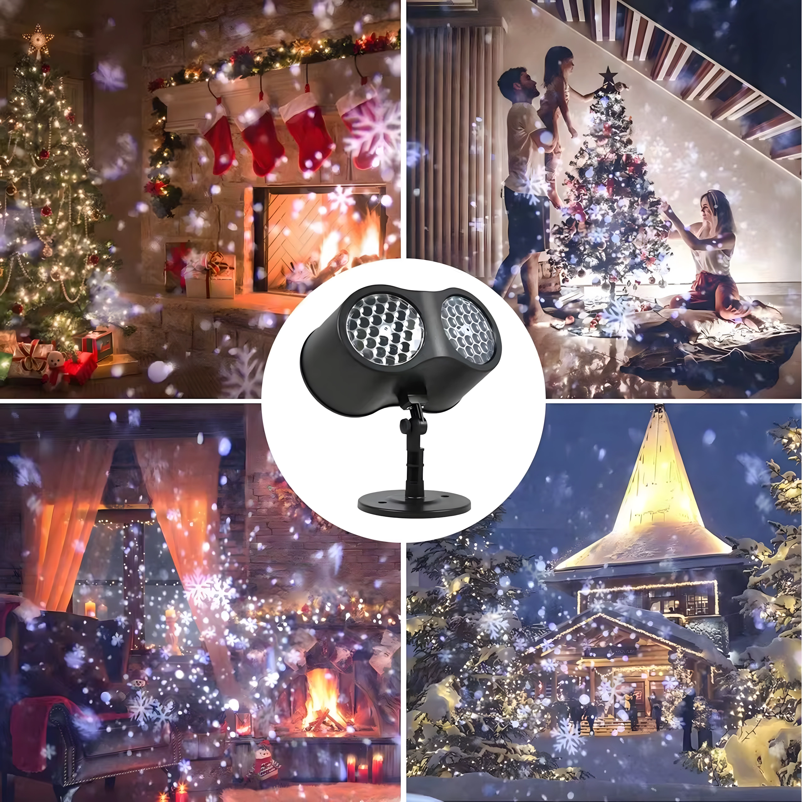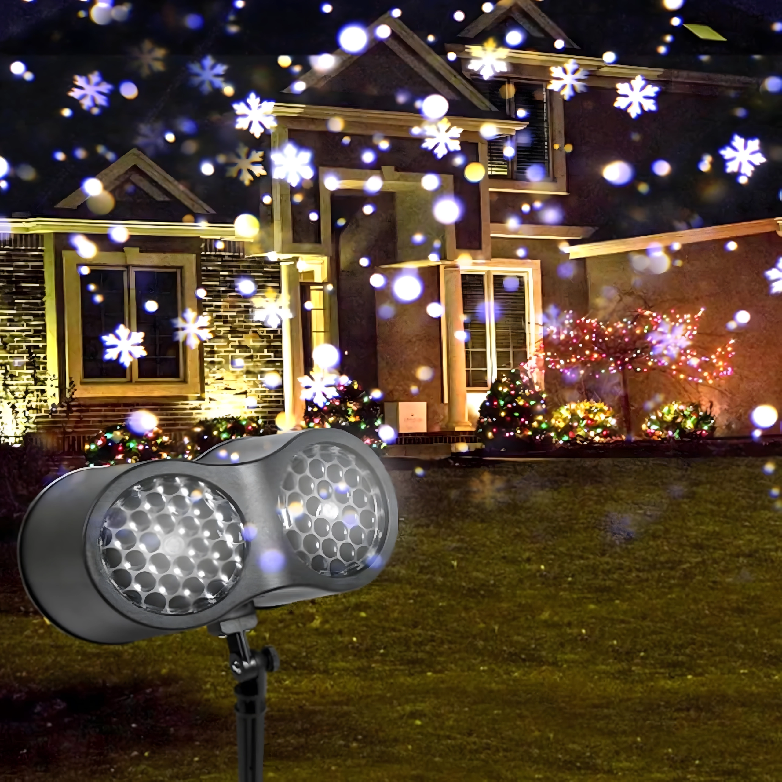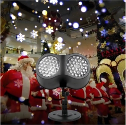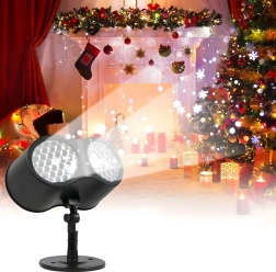 Divkāršā LED optika projicē spilgtas, dinamiskas pārslas un punktus pāri lielām sienu un fasāžu virsmām – ideāli ātrai svētku dekorēšanai bez kāpnēm un virtenēm.