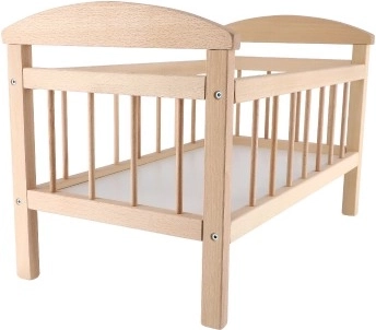 Koka leļļu gultiņa ir ideāla rotaļlieta bērna iztēles un rūpju par savām rotaļlietām attīstīšanai. Ar skaistu dabīgu dizainu un robustu konstrukciju no kvalitatīvas koksnes tā nodrošina drošību un stabilitāti.