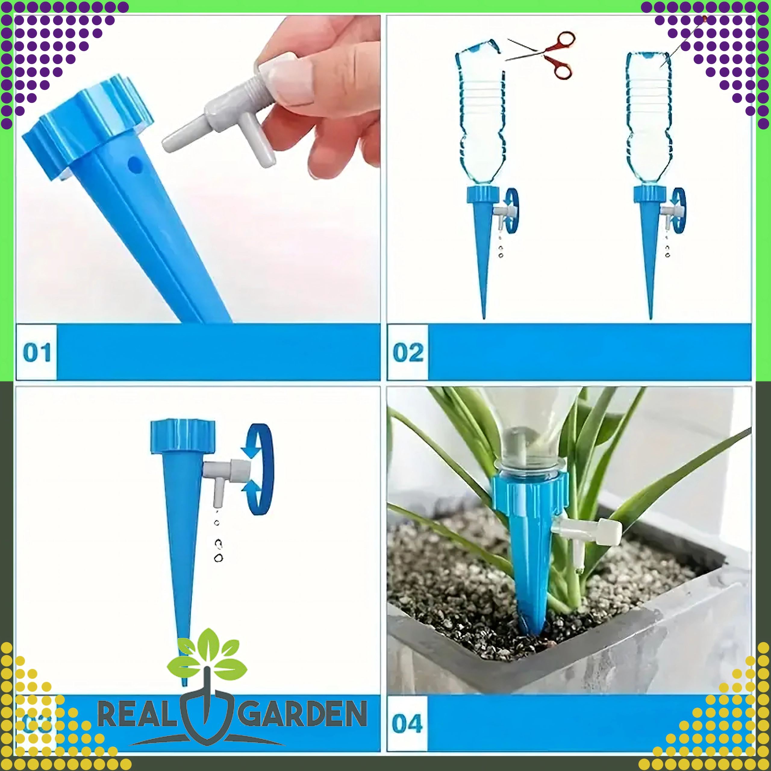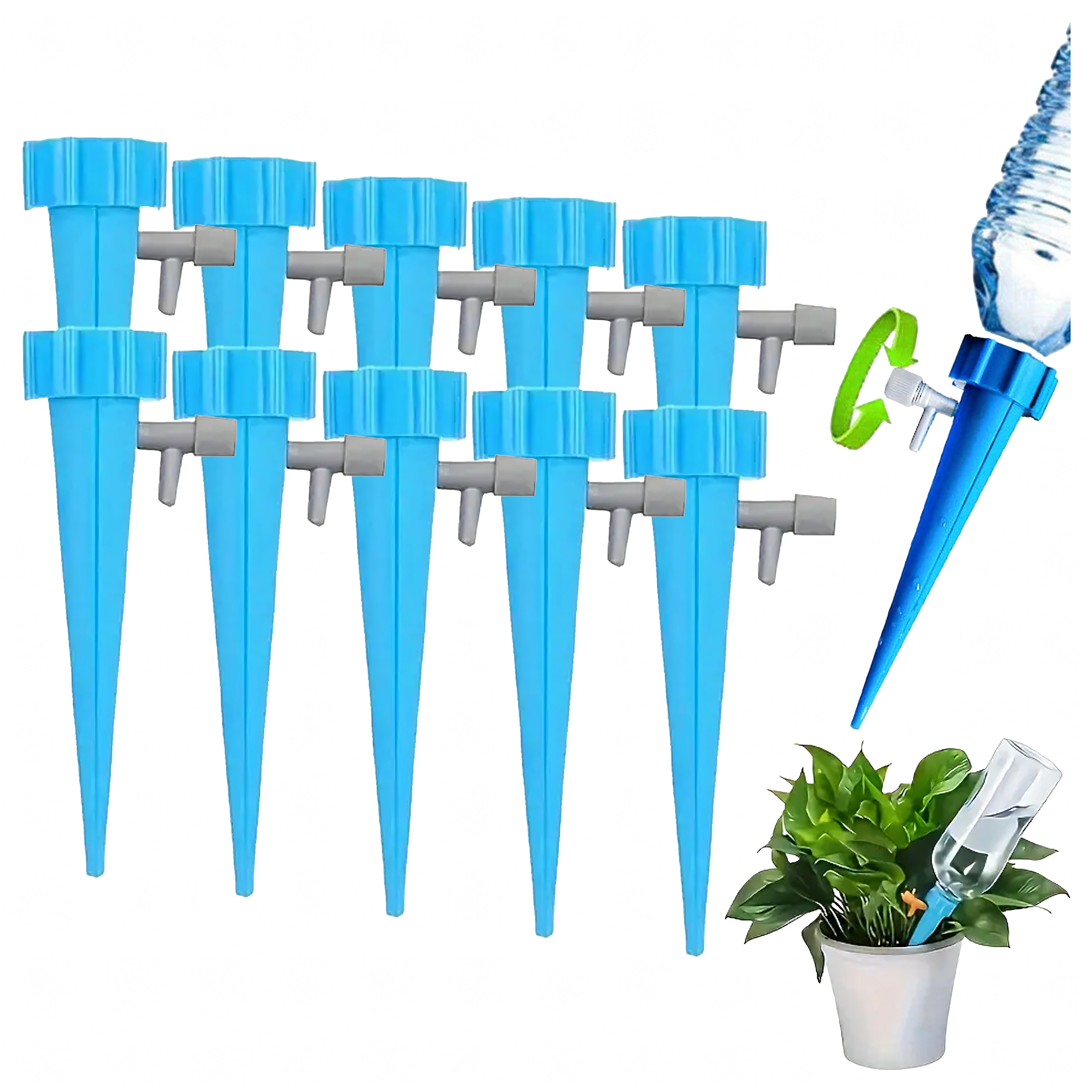Vienkāršs risinājums ikvienam, kurš vēlas būt drošs, ka augi saņems tieši tik daudz ūdens, cik tiem nepieciešams. Laistītāji ar praktisku krāniņu ļauj vienmērīgi regulēt plūsmu, tāpēc tie der dažādiem substrātiem un puķu podiem. Uzstādīšana ir ātra, bez instrumentiem – uzlieciet uz PET pudeles, apgrieziet un iespraudiet podā.