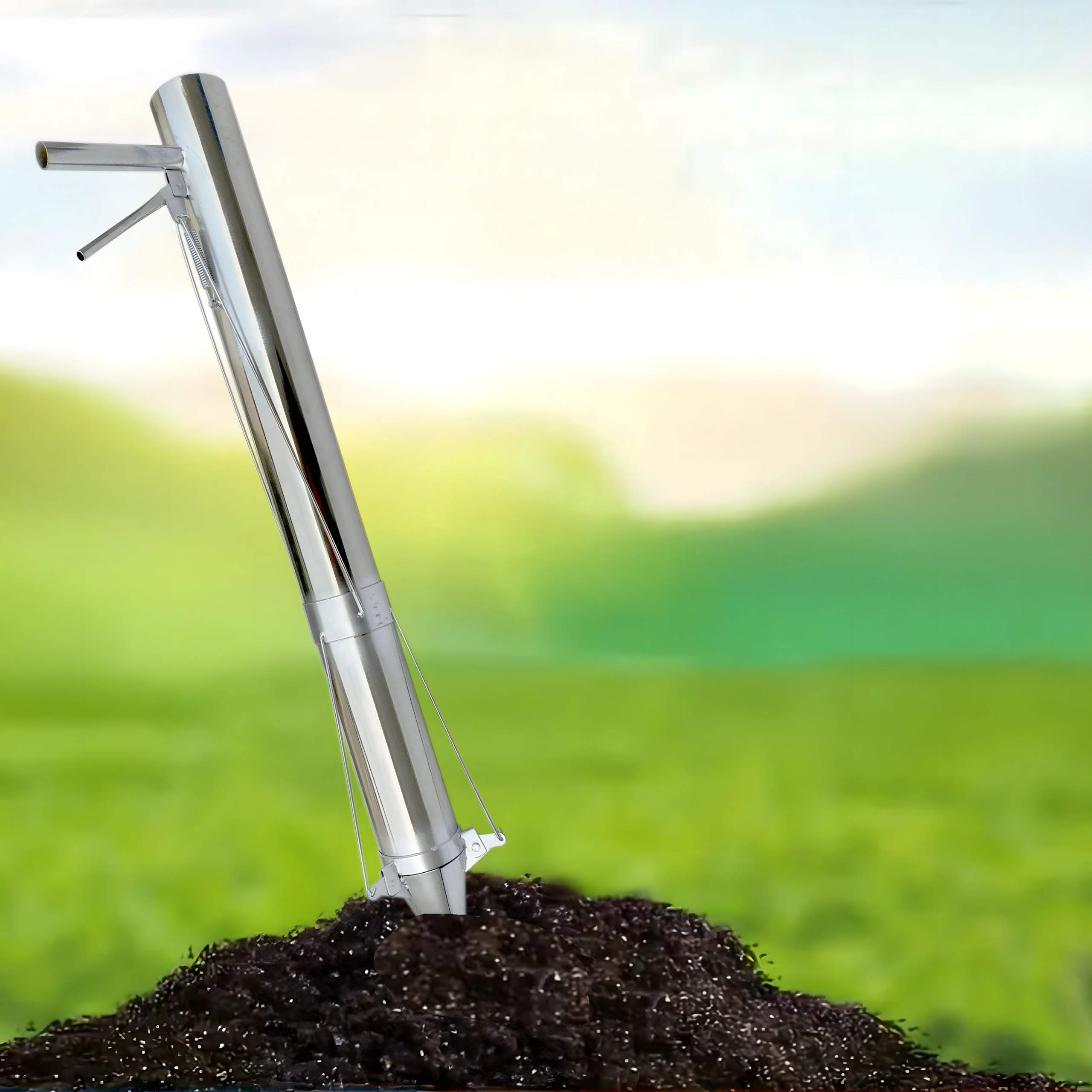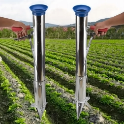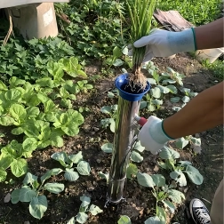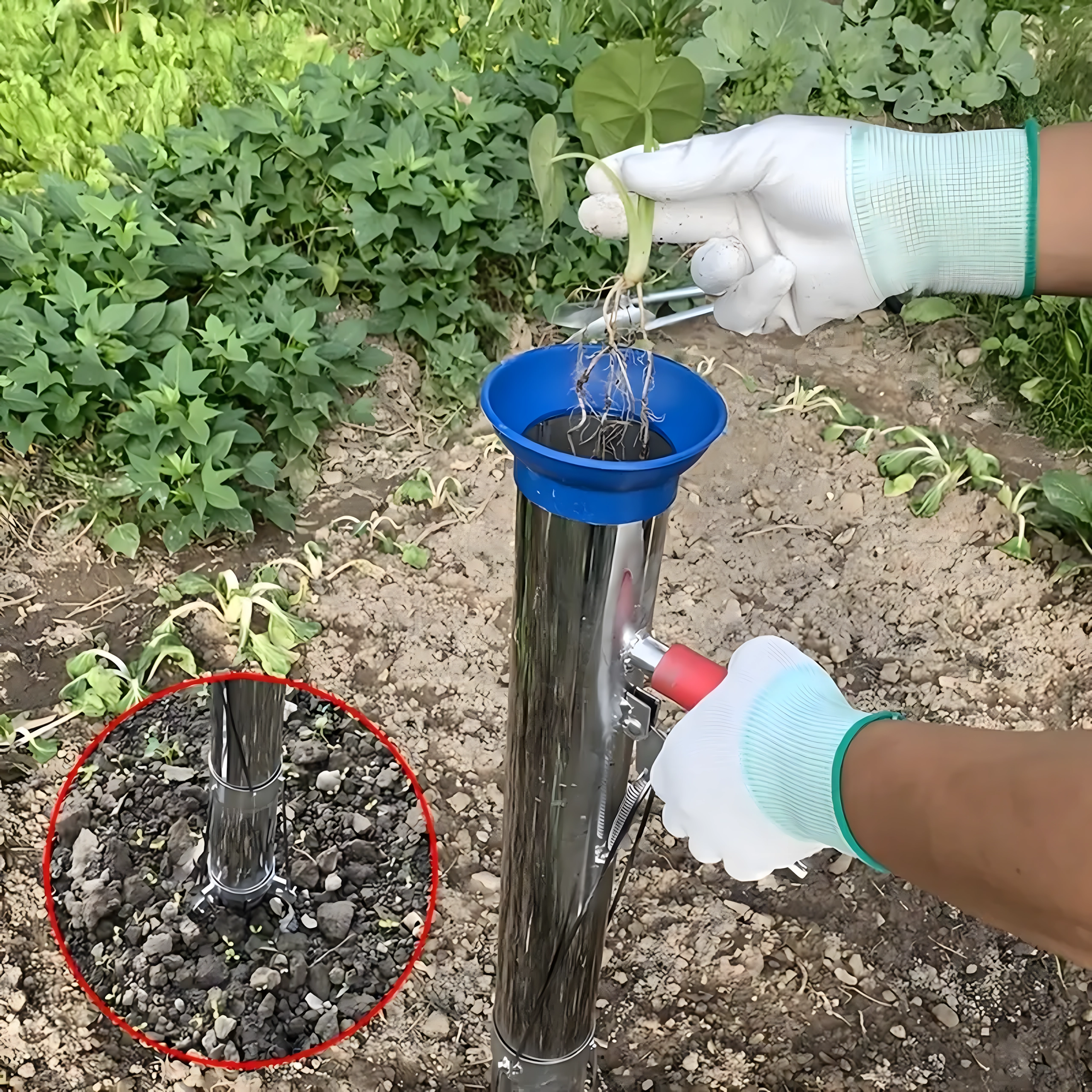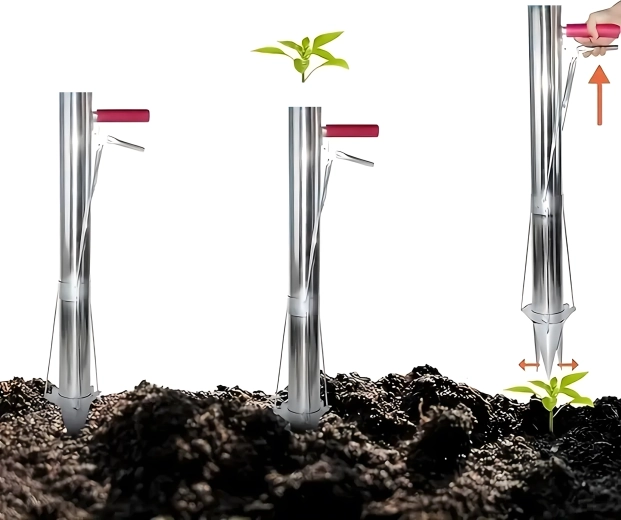 Koniskais gals un cilindriskā korpusa forma ar vienu spiedienu izveido tīru atveri, ielieciet stādu un ar sviru viegli atbrīvojiet augsni atpakaļ.
