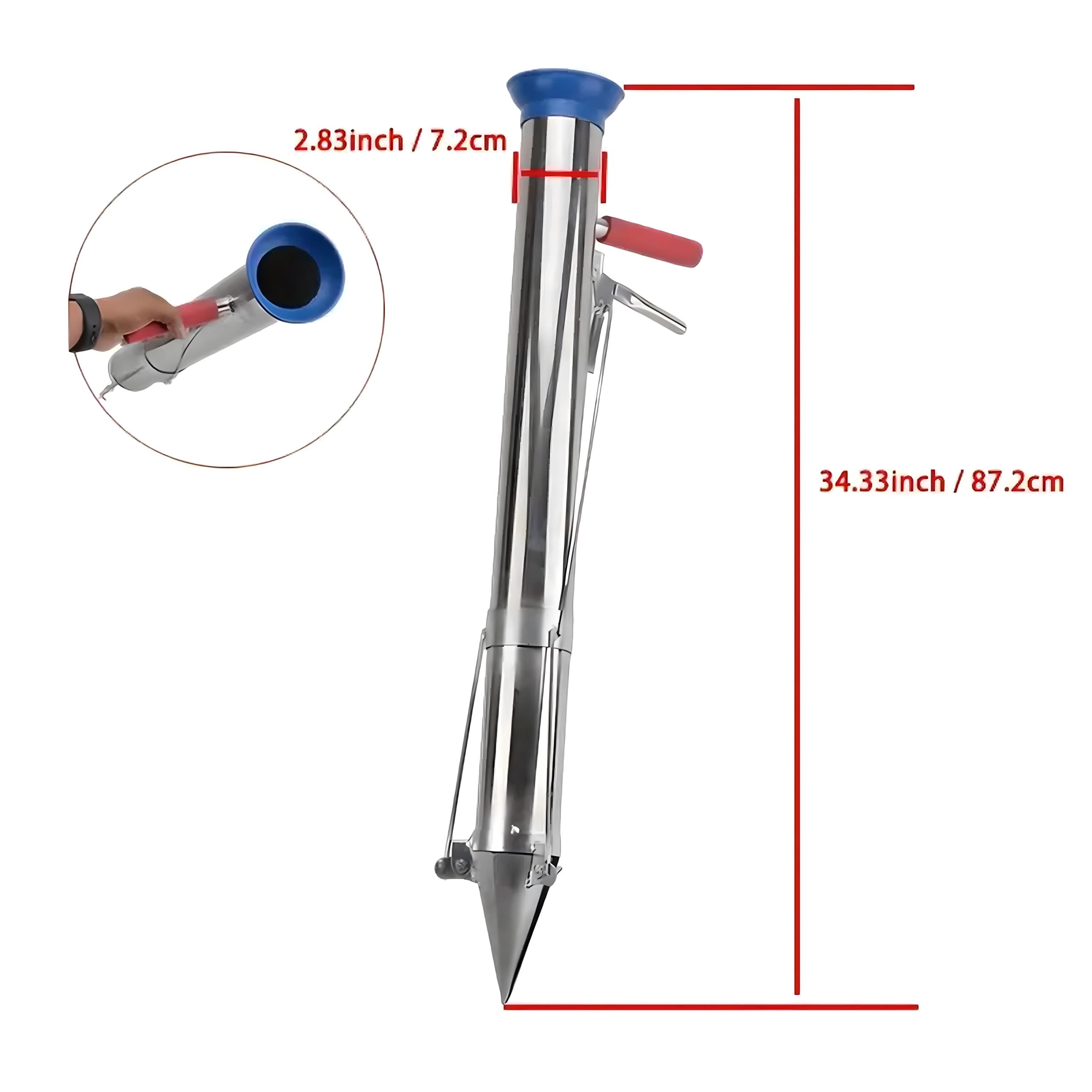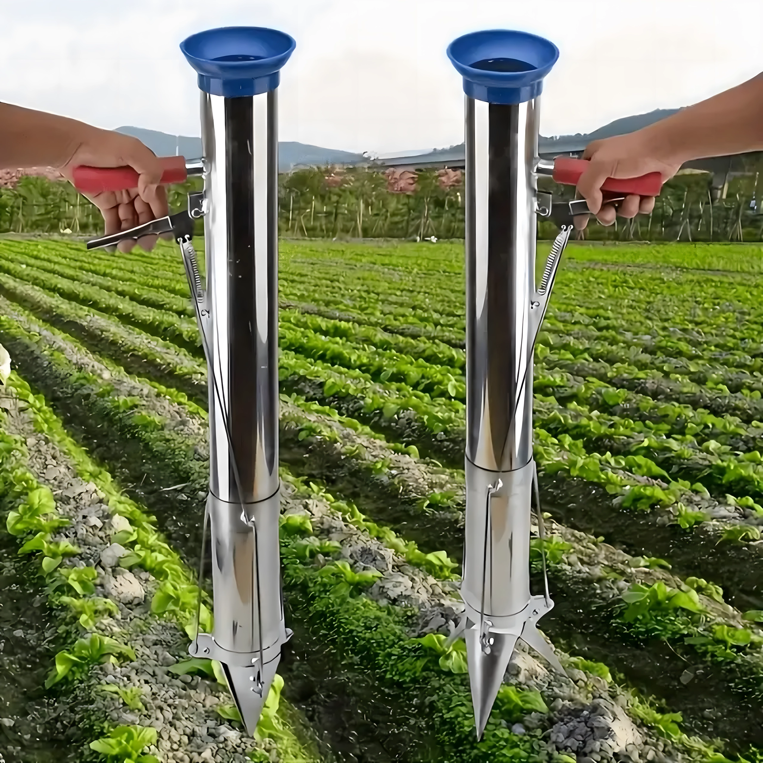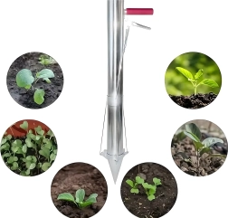 Šis universālais rokas stādotājs atvieglo sīpolu, dārzeņu un ziedu stādu iestādīšanu un palīdz arī precīzi izņemt nezāles. Garā, stingrā tērauda konstrukcija ar asu galu bez piepūles ieduras augsnē, bet sviras mehānisms nodrošina ātru augsnes serdes atbrīvošanu un vieglu auga ievietošanu.