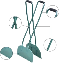 - Izturīgas lāpstiņas ar zobainu malu, metāla rokturi