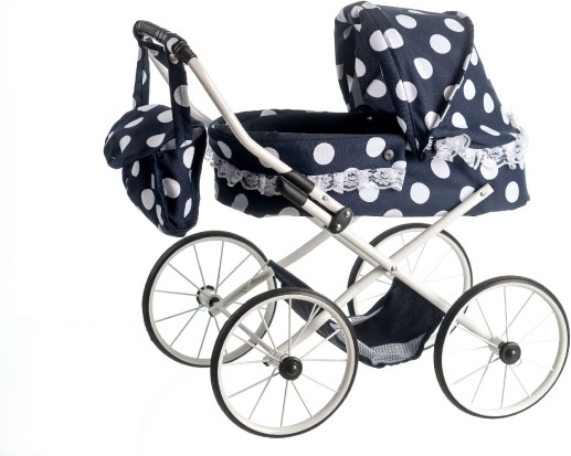 Šie mīlīgie retro leļļu rati ir lieliska izvēle bērniem, kuri mīl ģimenes lomu spēles. Melna krāsa ar baltiem punktiem un dekoratīvām mežģīnēm izskatās stilīgi un laikmetīgi, bet pīts ratanā grozs piešķir ratiem burvīgu izskatu. Pateicoties regulējamam rokturim (55 cm), rati labi pielāgojas bērna augumam.