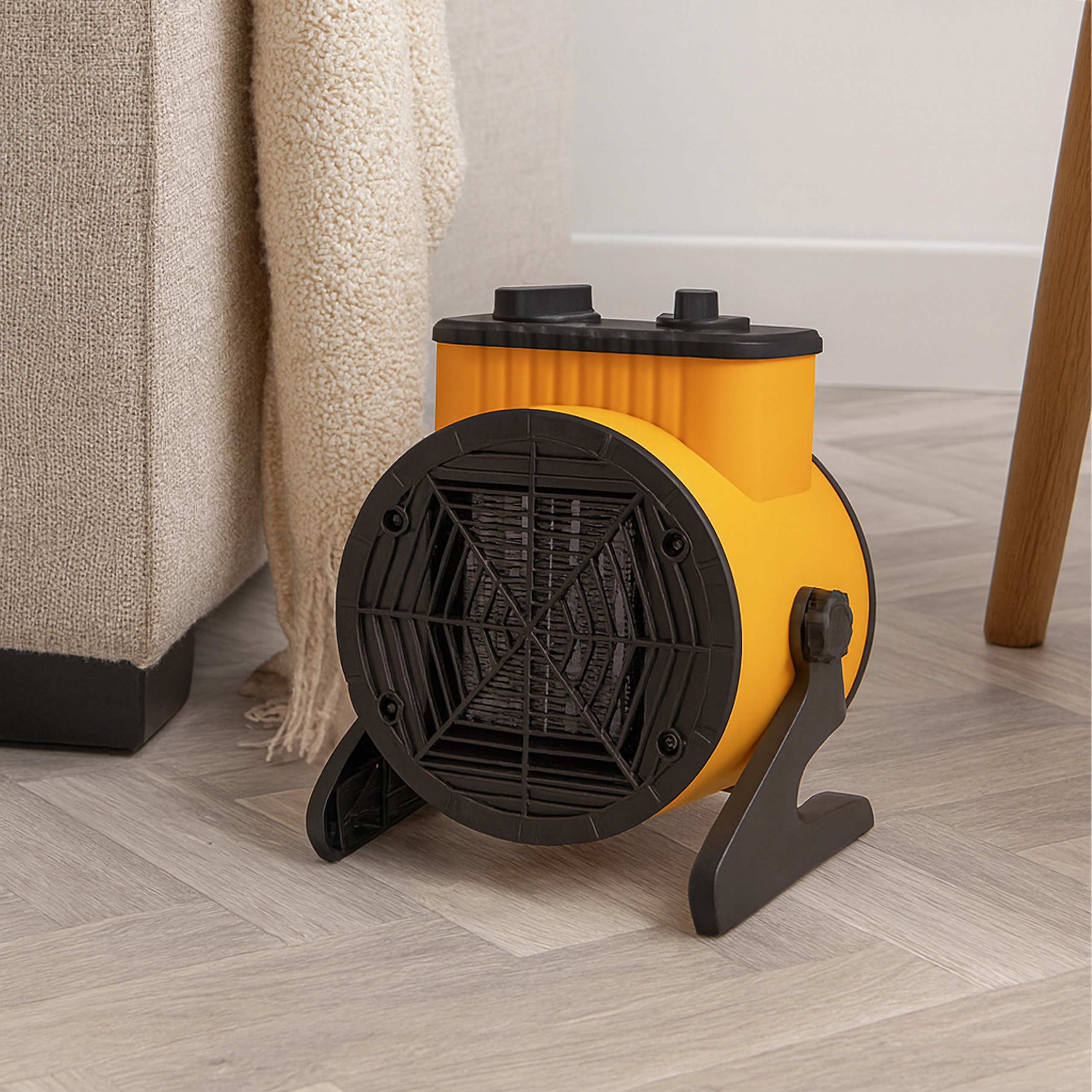 Stabils, noliecams statīvs un integrēts rokturis ļauj novirzīt gaisa plūsmu tieši tur, kur nepieciešams – vannasistabā, darbnīcā vai garāžā.