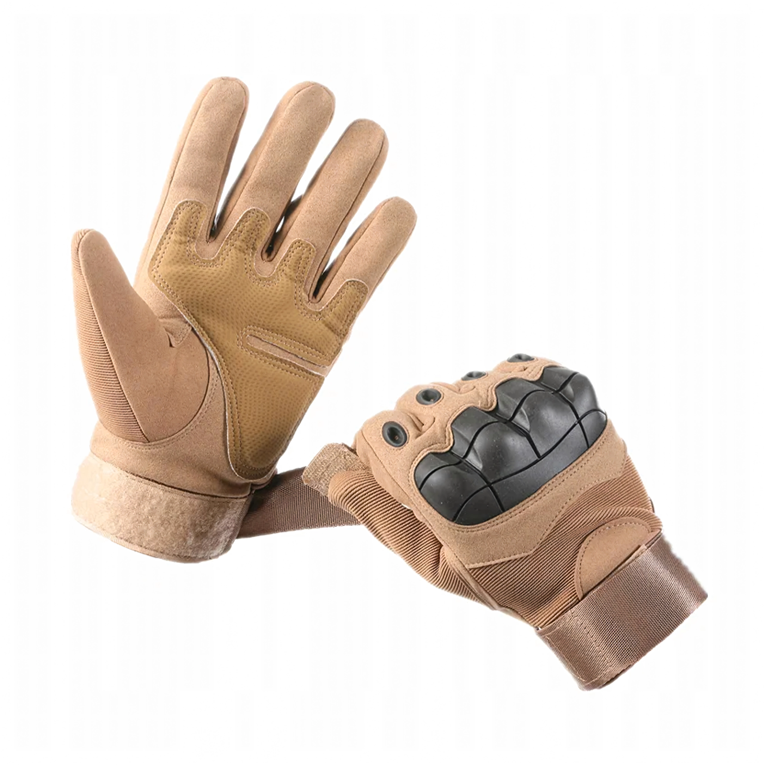 Universāli taktiskie cimdi izmērā L nodrošina locītavu aizsardzību, ērtu satvērienu un skārienjutīgu vadību ikdienai un prasīgām āra aktivitātēm. Pateicoties izturīgai konstrukcijai, pastiprinātām plaukstām un regulējamai aprocei ar lipekļa aizdari, tie lieliski pieguļ un sargā braucot ar motociklu vai velosipēdu, šaušanā, darbā un taktiskajās spēlēs.