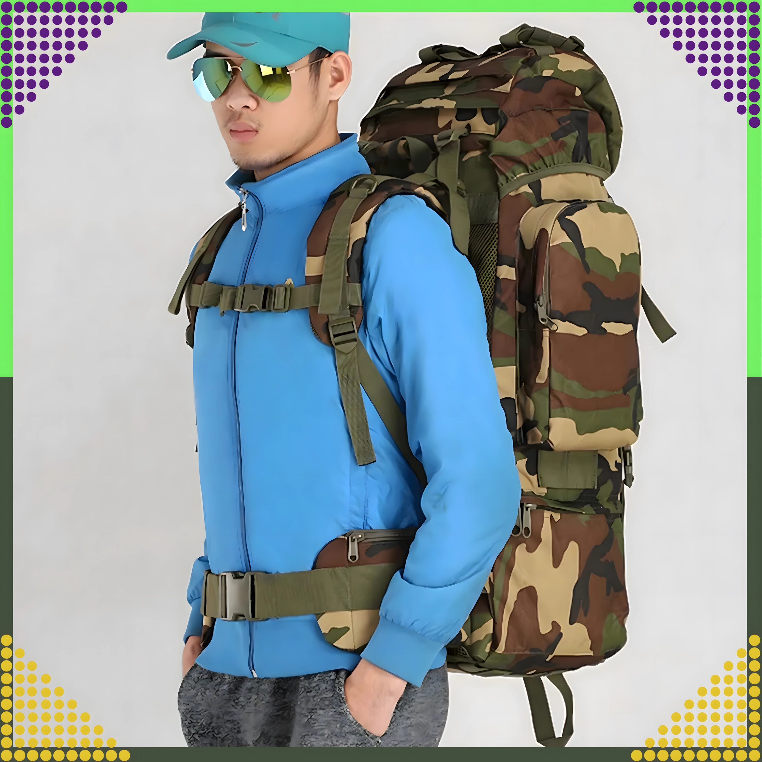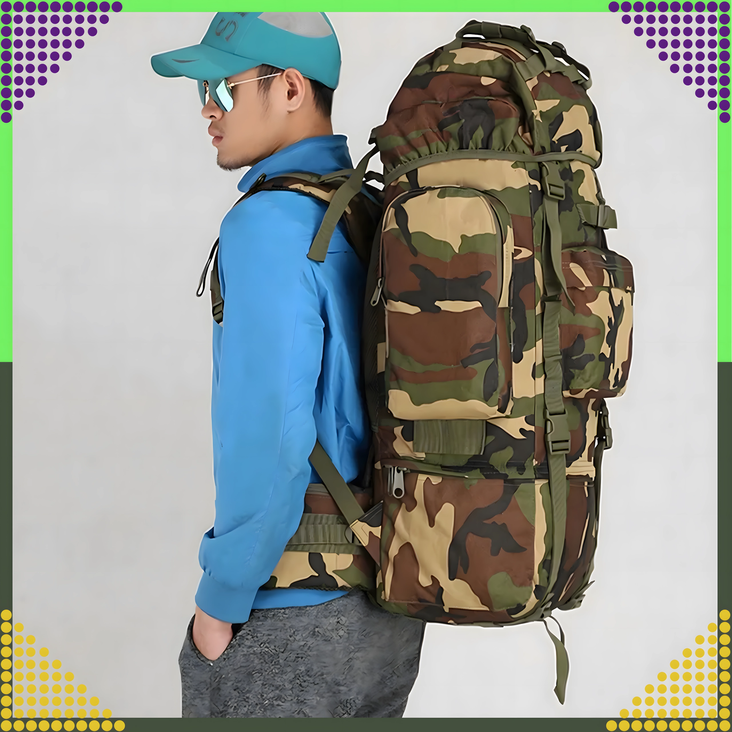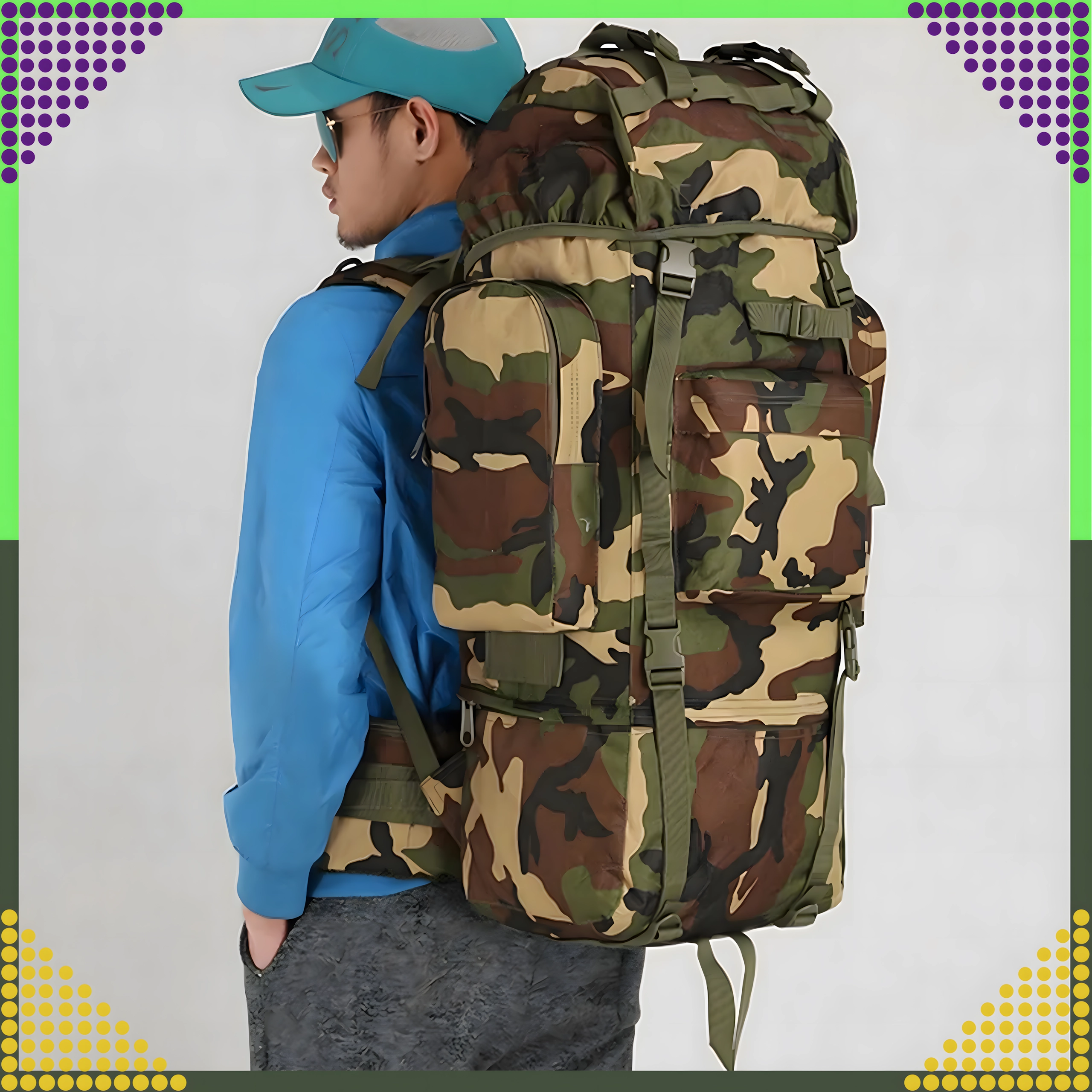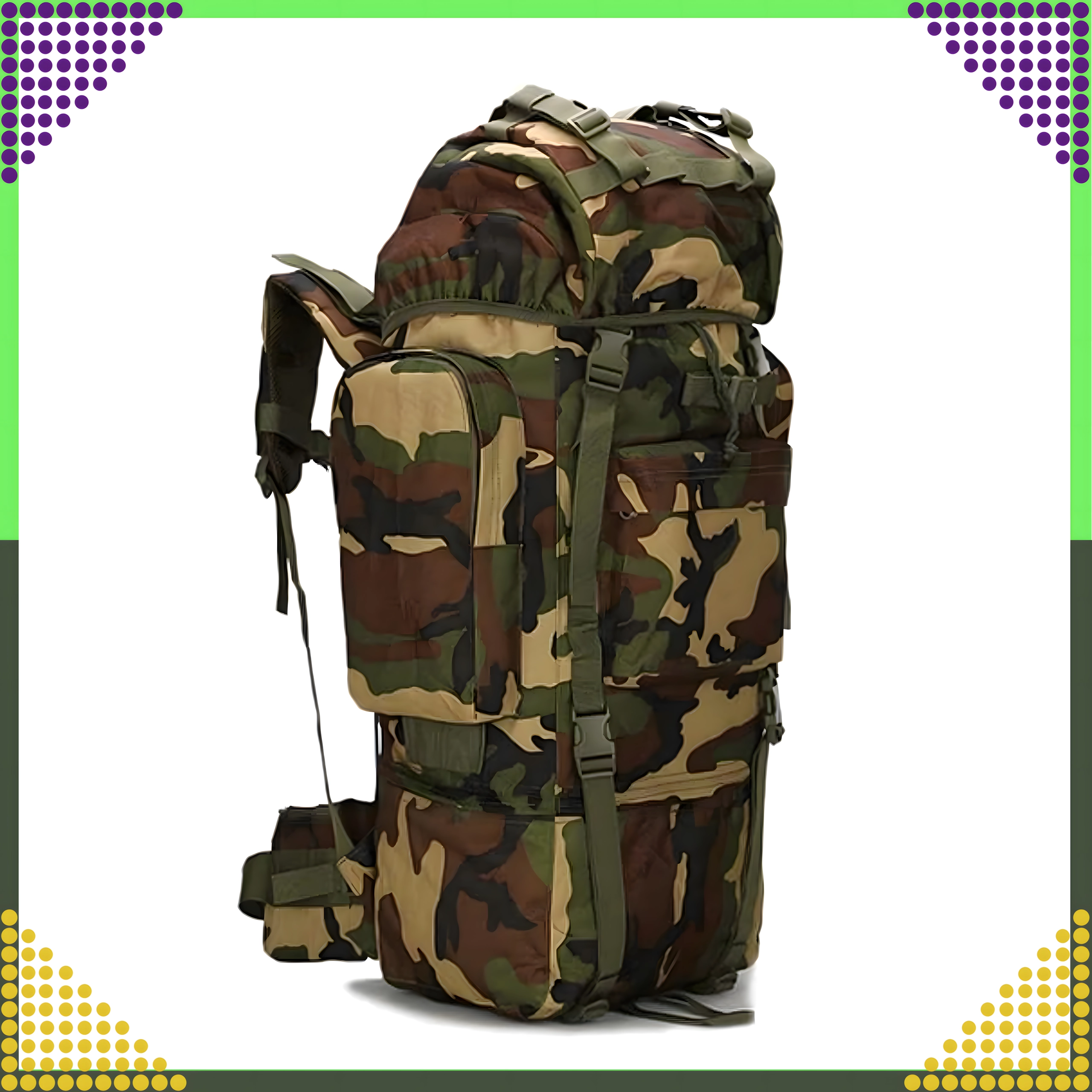 Meklējat uzticamu mugursomu kalniem, kempingam vai garākām dabas ekspedīcijām? Šī taktiskā 65 l mugursoma apvieno augstu izturību, nēsāšanas komfortu un praktisku dalījumu. Galveno nodalījumu ar ieliktni papildina priekšējās un sānu kabatas ar rāvējslēdzējiem, lai viss svarīgais būtu ātri pie rokas.