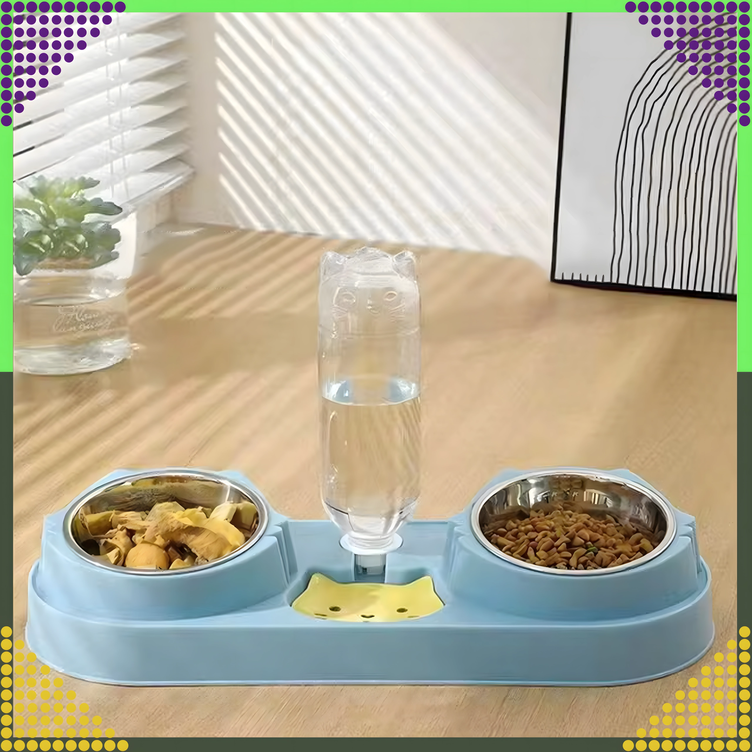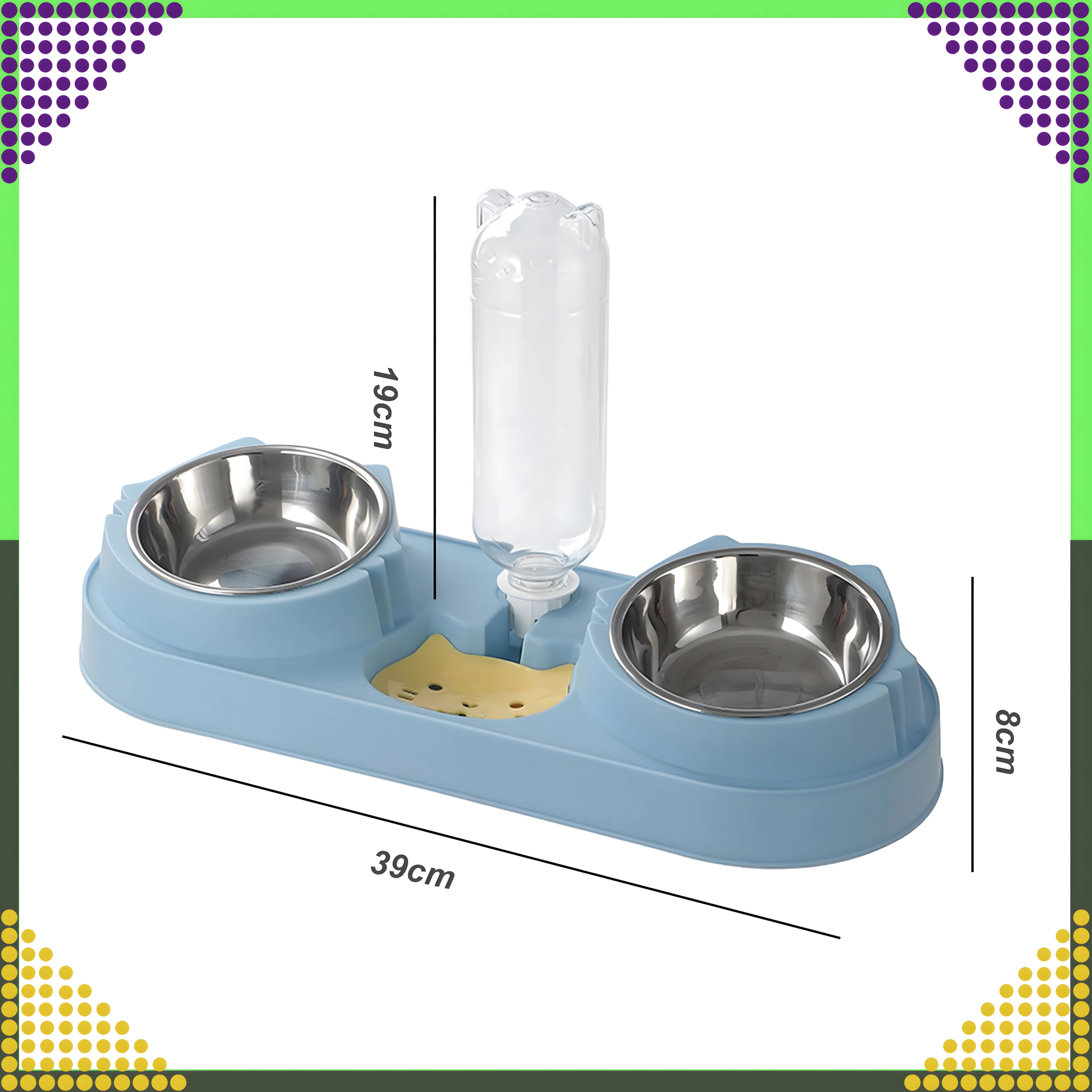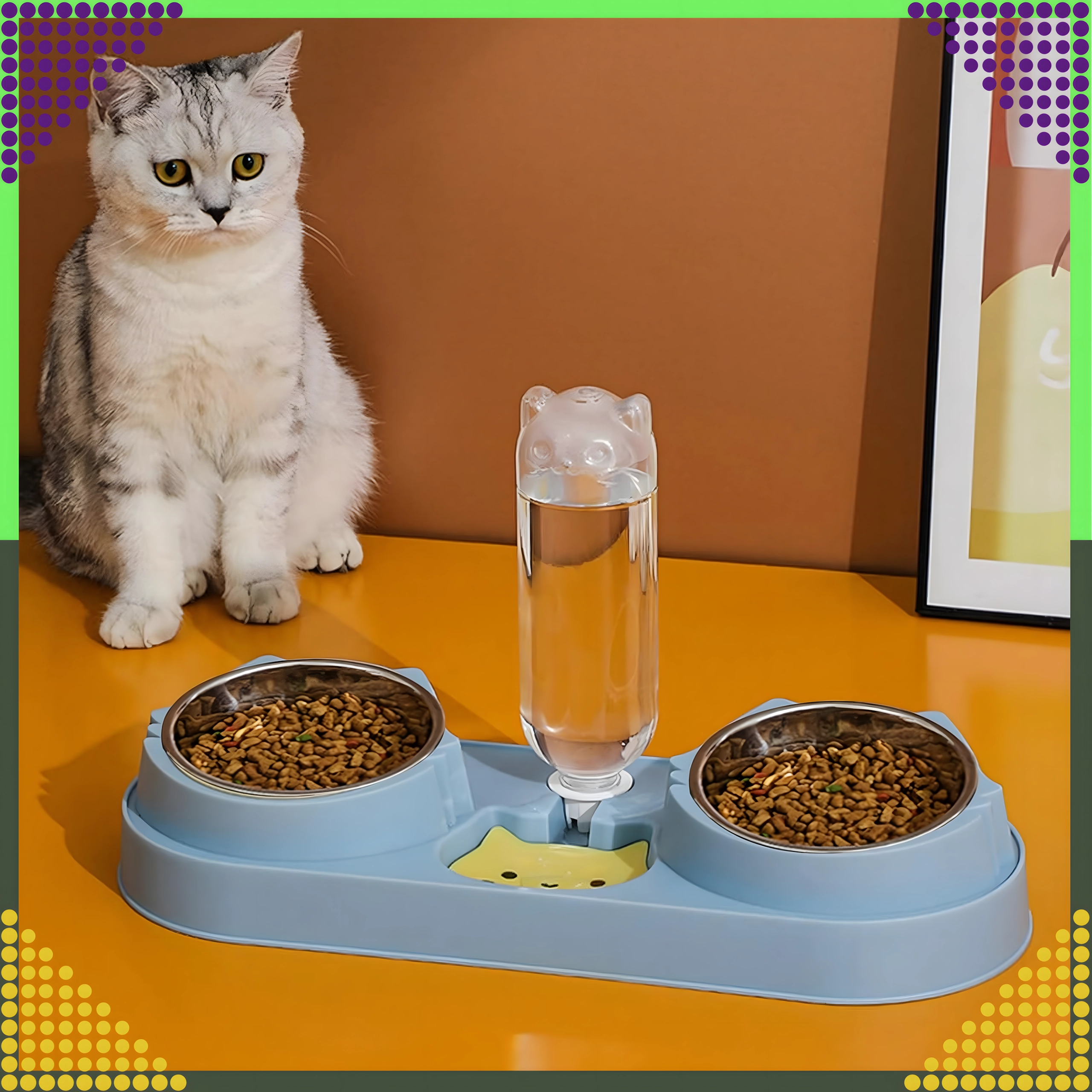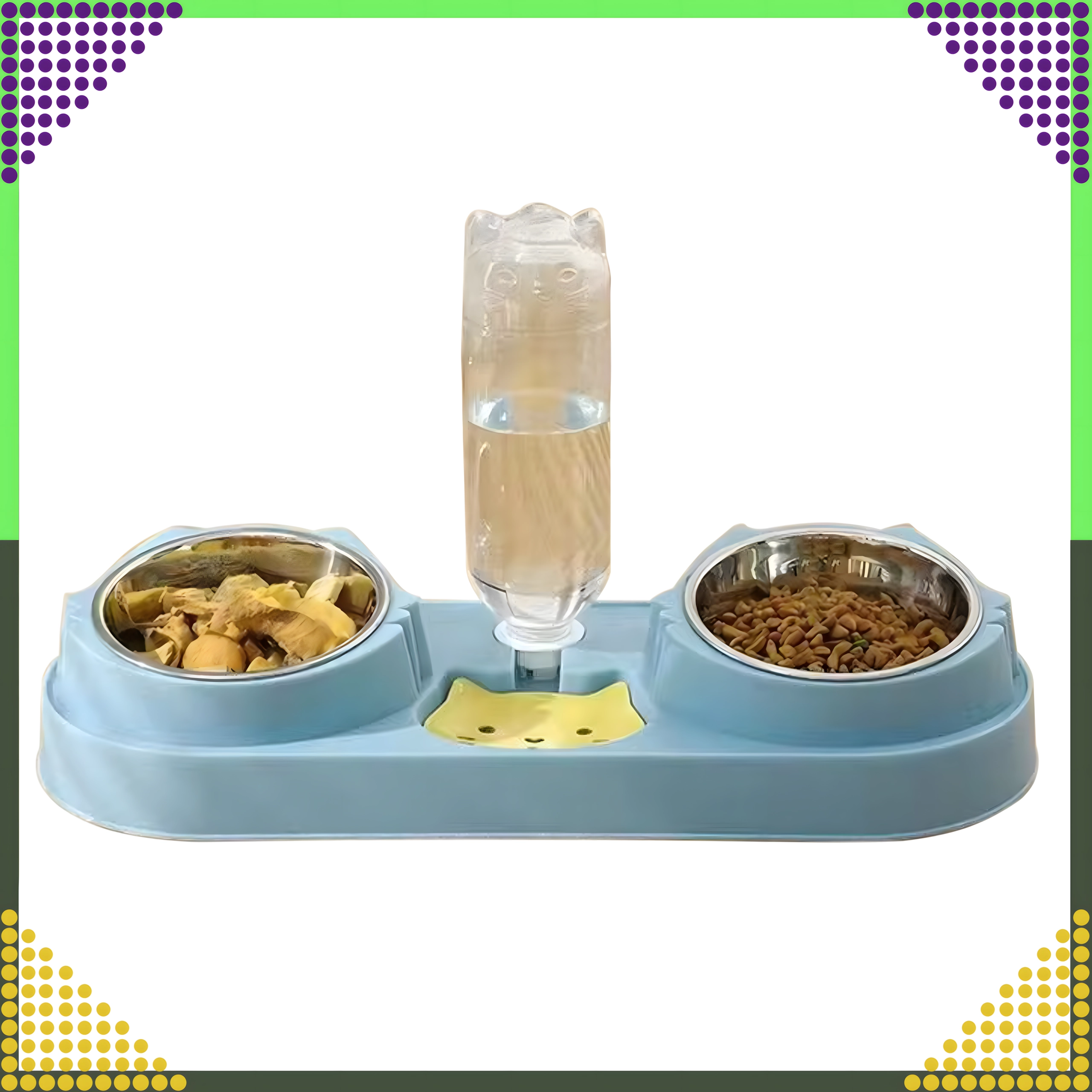 Praktiska divkāršā bļoda mājdzīvniekiem ar integrētu ūdens dozatoru nodrošina vienlaicīgu barības un svaiga ūdens pasniegšanu. Izņemamās nerūsējošā tērauda bļodas atvieglo ātru tīrīšanu, stabilā pamatne novērš apgāšanos, bet gravitācijas dzirdne uztur ūdeni tīru un pieejamu arī jūsu prombūtnes laikā.