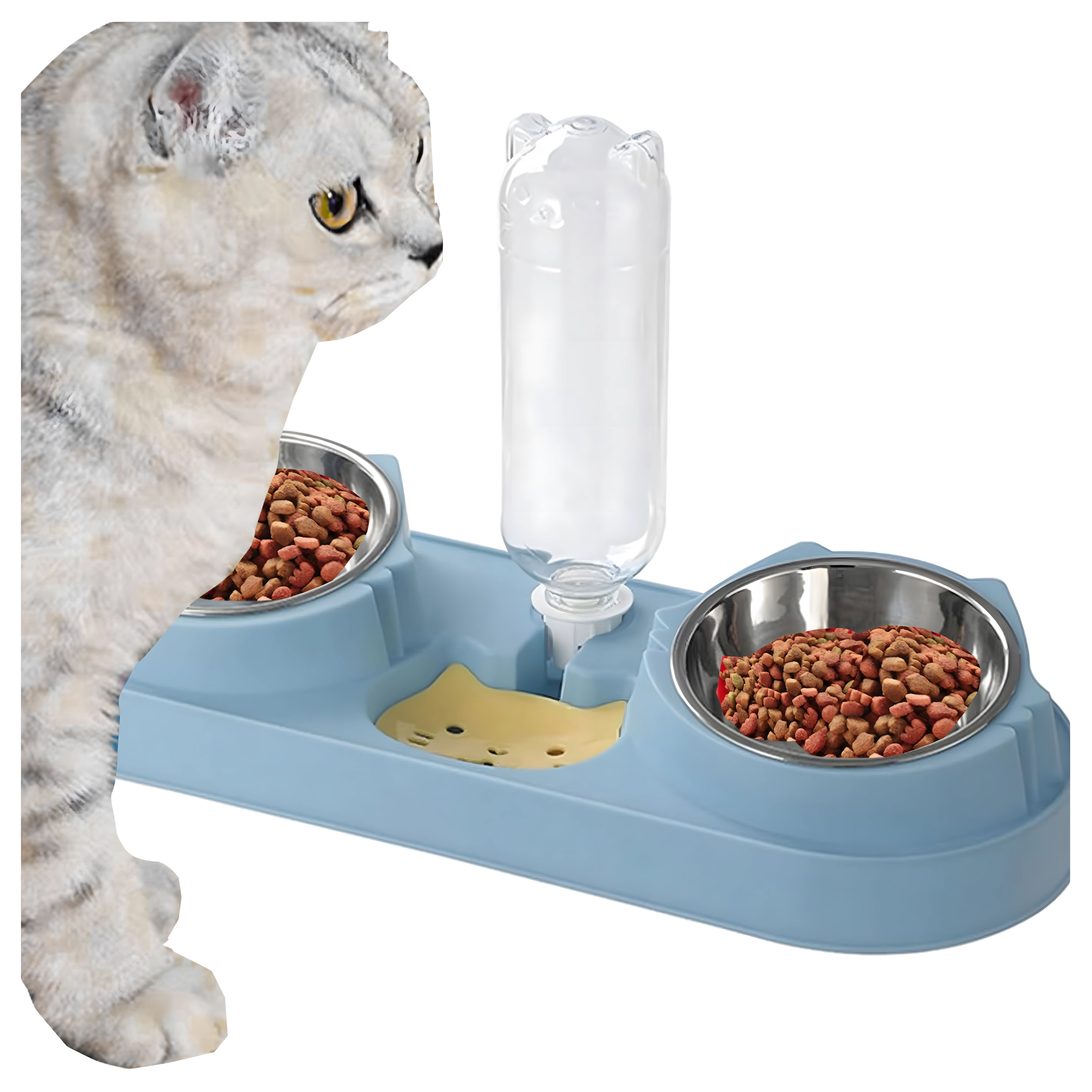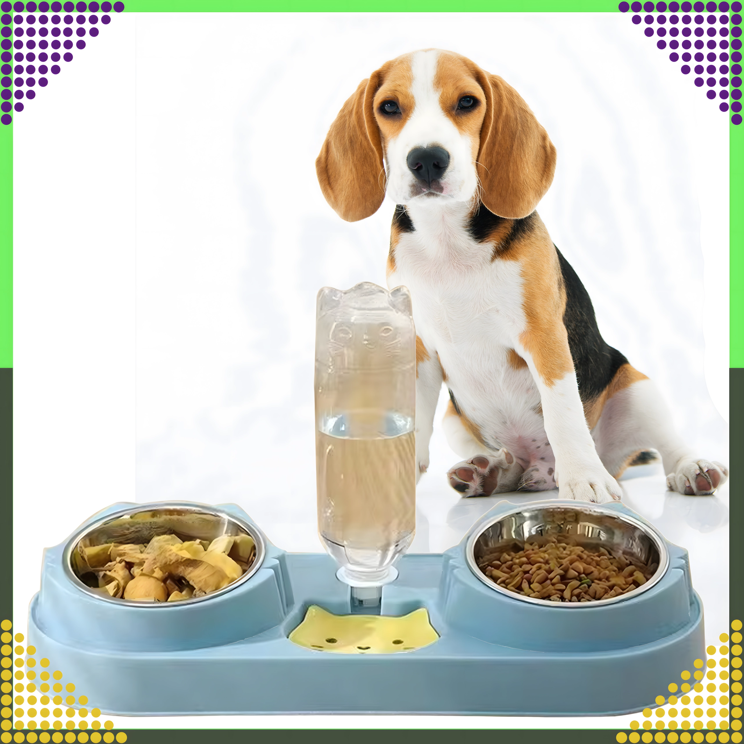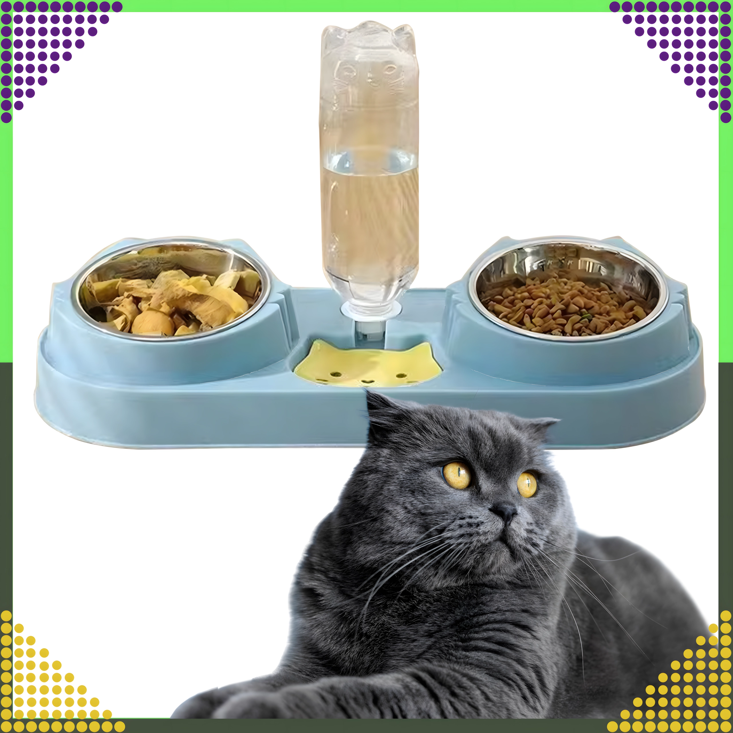 Praktiska divkāršā bļoda mājdzīvniekiem ar integrētu ūdens dozatoru nodrošina vienlaicīgu barības un svaiga ūdens pasniegšanu. Izņemamās nerūsējošā tērauda bļodas atvieglo ātru tīrīšanu, stabilā pamatne novērš apgāšanos, bet gravitācijas dzirdne uztur ūdeni tīru un pieejamu arī jūsu prombūtnes laikā.
