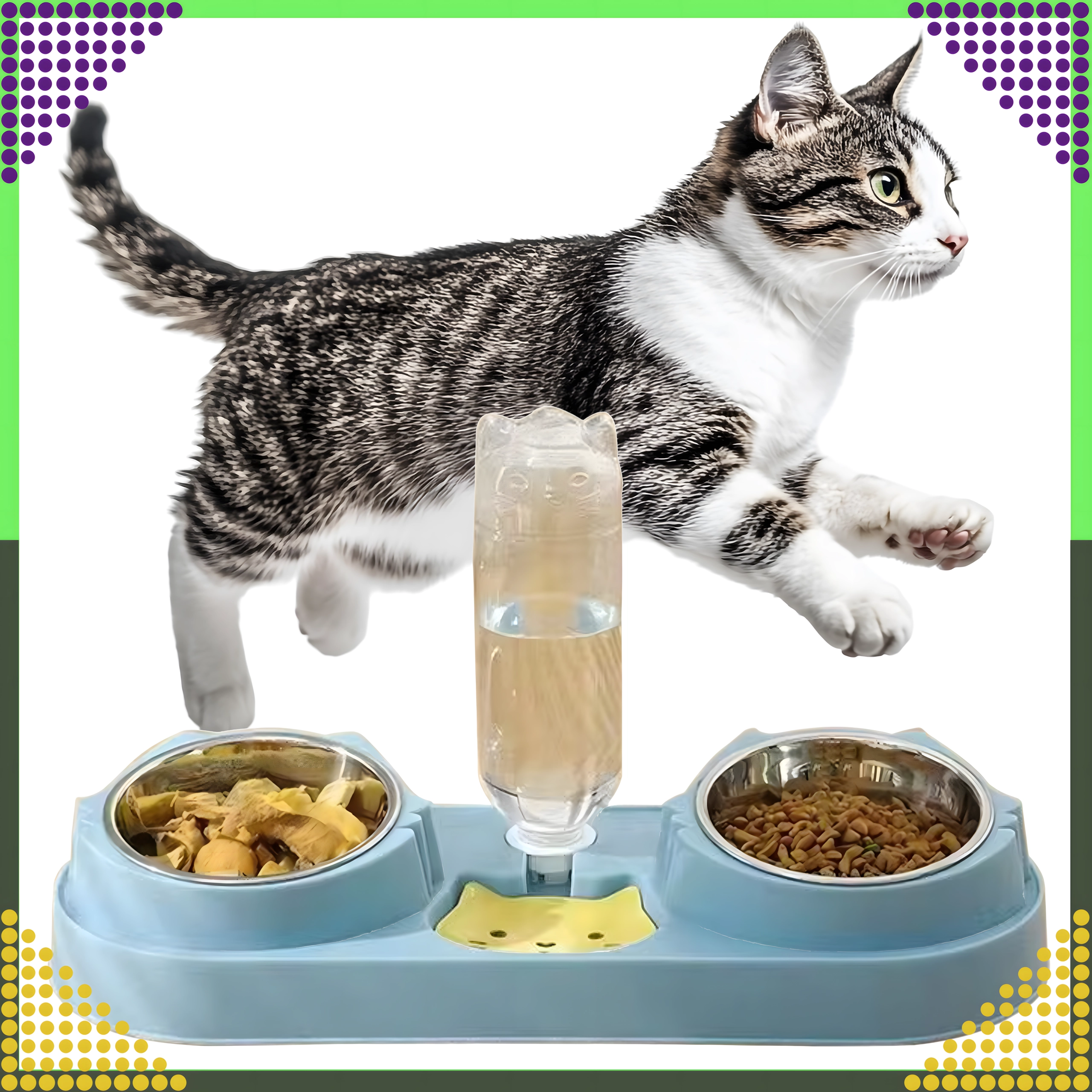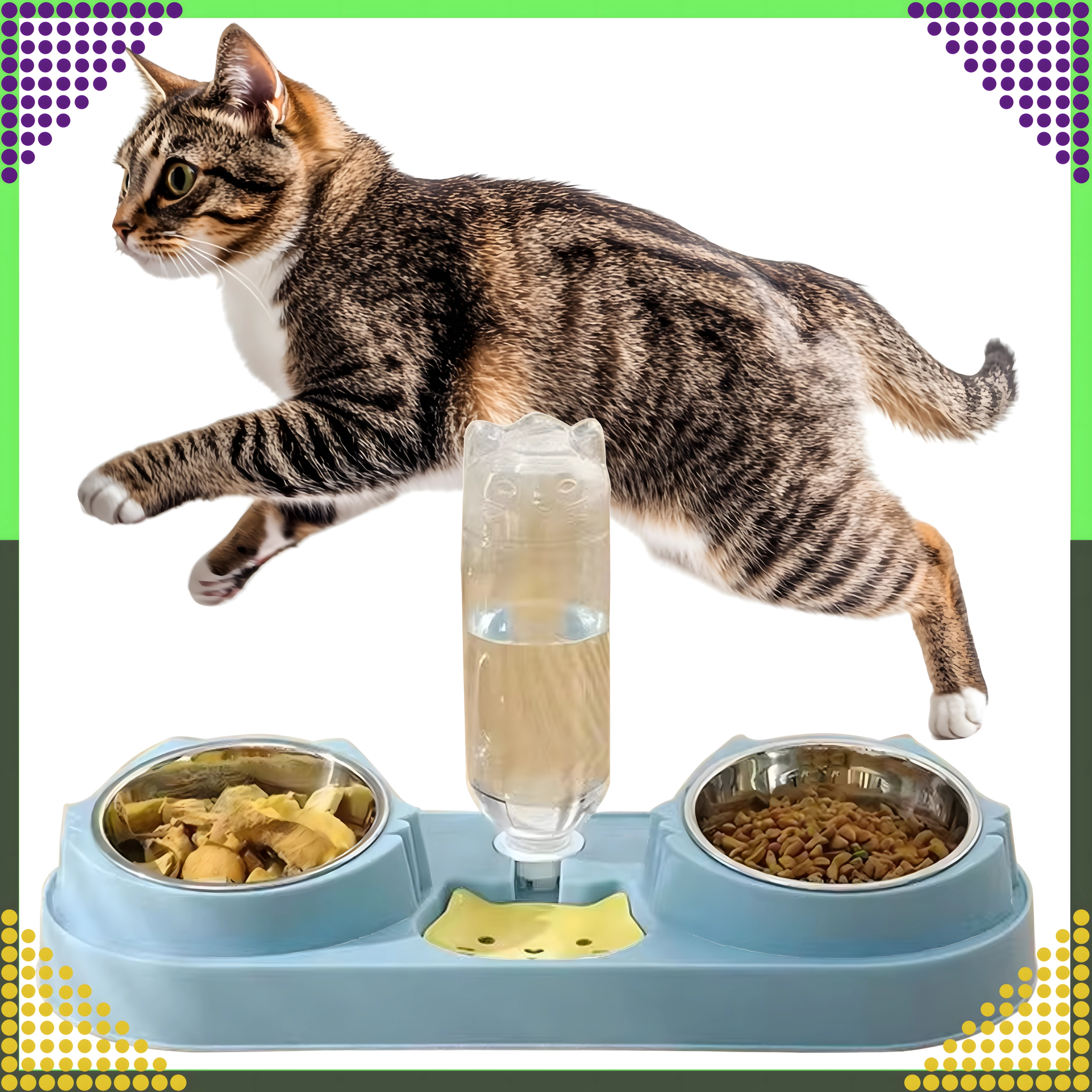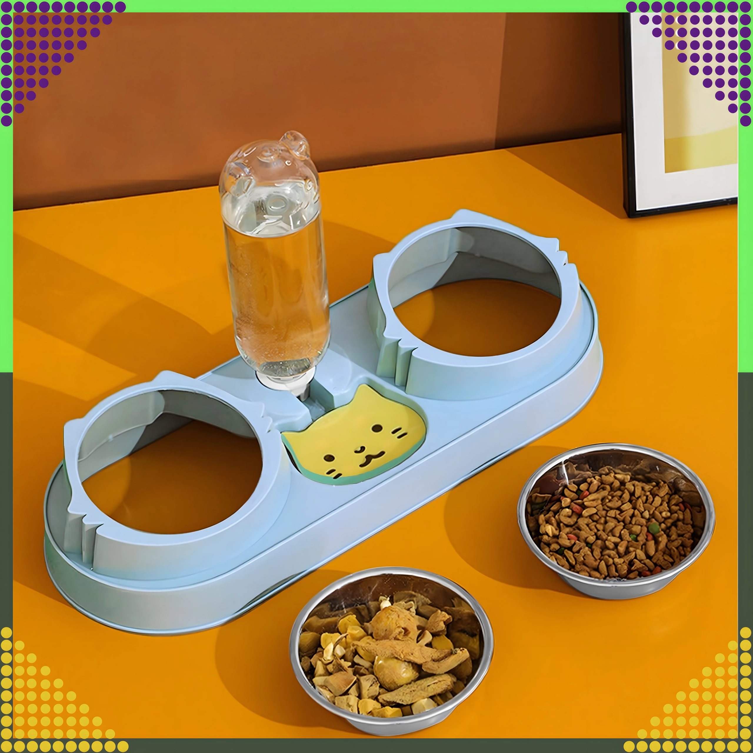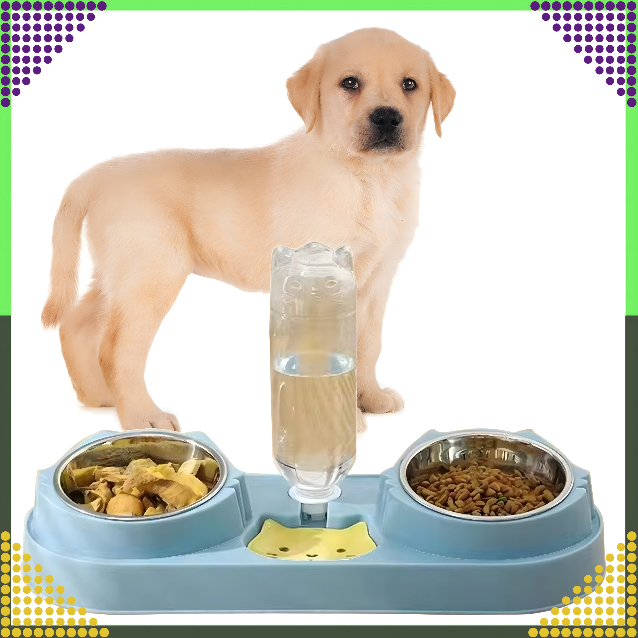 Praktiska divkāršā bļoda mājdzīvniekiem ar integrētu ūdens dozatoru nodrošina vienlaicīgu barības un svaiga ūdens pasniegšanu. Izņemamās nerūsējošā tērauda bļodas atvieglo ātru tīrīšanu, stabilā pamatne novērš apgāšanos, bet gravitācijas dzirdne uztur ūdeni tīru un pieejamu arī jūsu prombūtnes laikā.