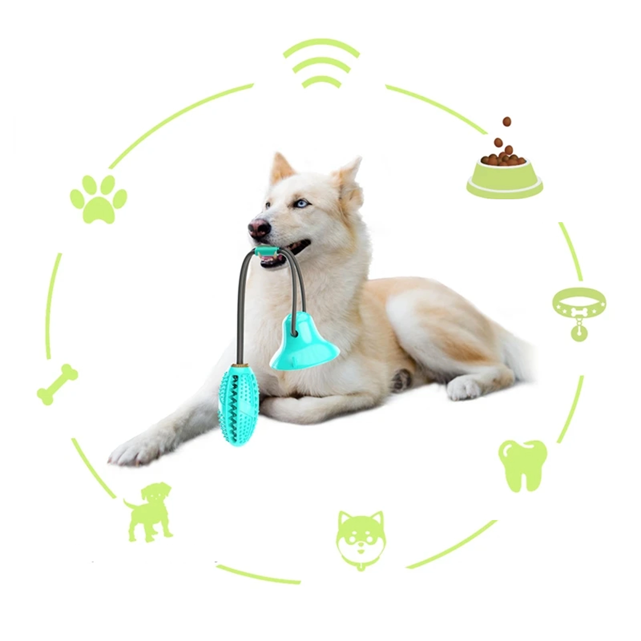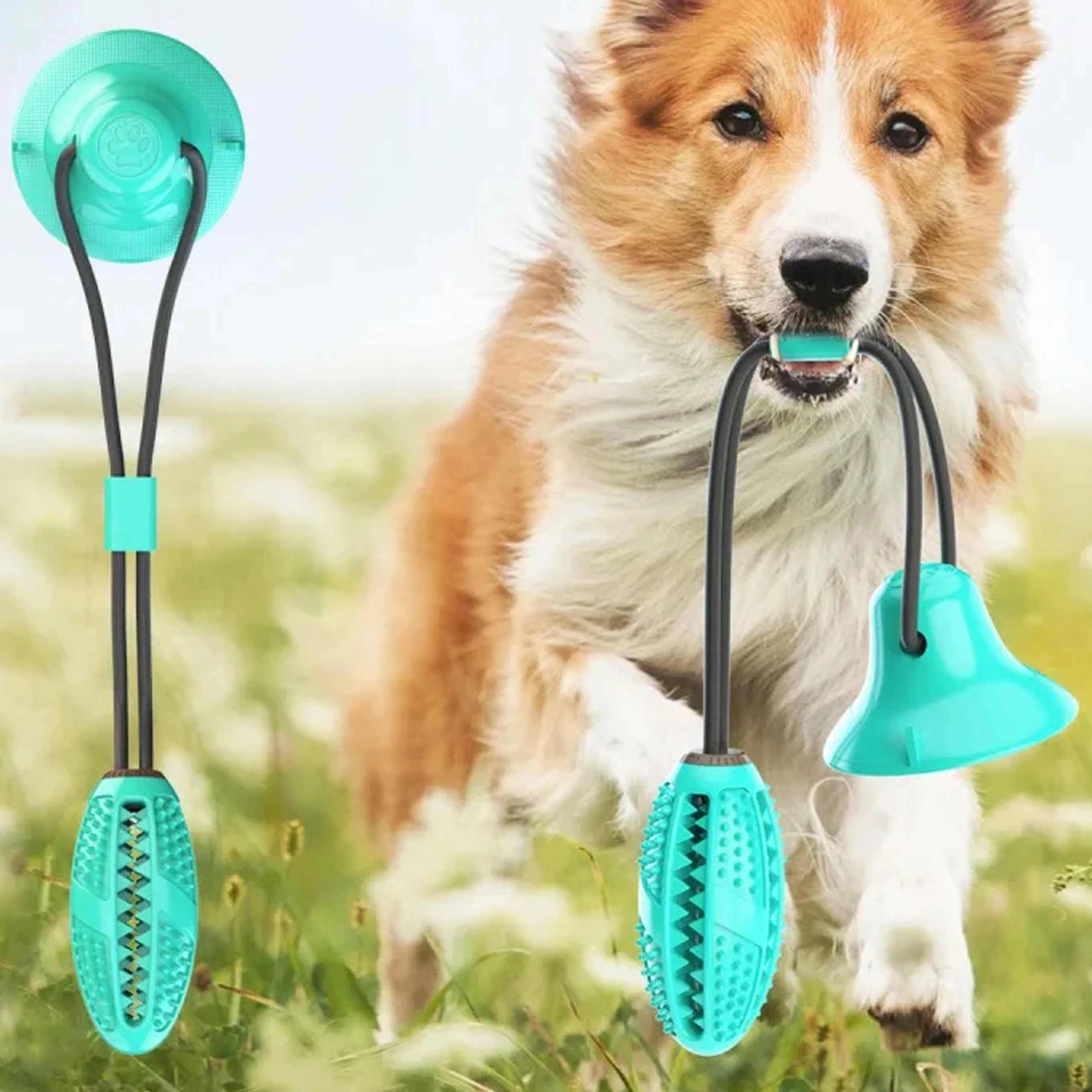 - Interaktīva suņu zobu kopšanas rotaļlieta ar piesūcekni