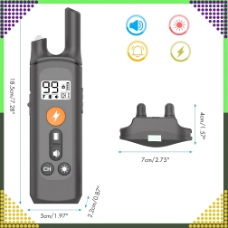 Impulss, vibrācija, gaisma un skaņa palīdz koriģēt riešanu, aizskriešanu vai lēkāšanu. Līmeni var pielāgot suņa jutīgumam.