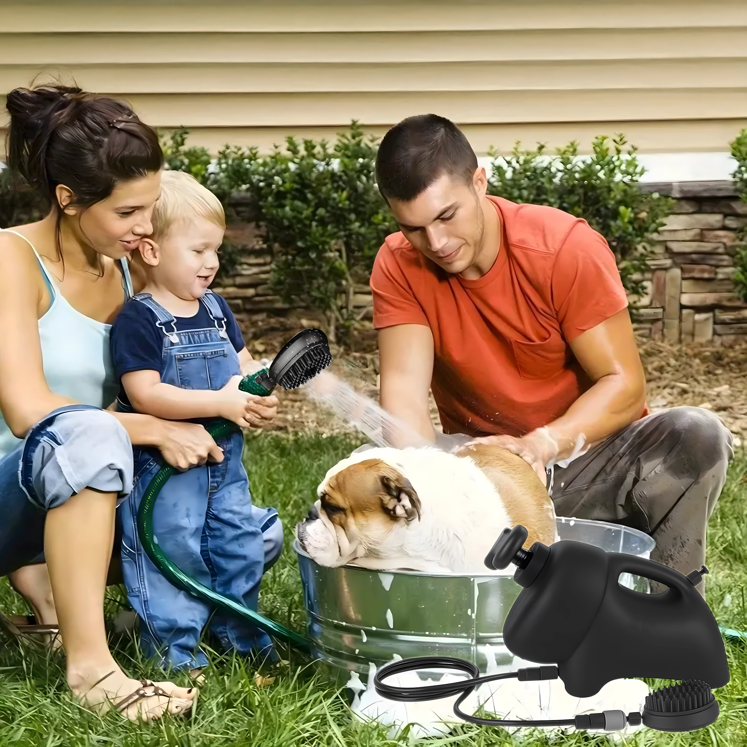 Ņemiet to līdzi jebkur – dārzā, atvaļinājumā vai pēc pastaigas parkā. Kompakts korpuss ar rokturi, izturīga šļūtene un praktisks birstes uzgalis padara to par universālu mobilo dušu jūsu mīluļa tīrībai un komfortam.