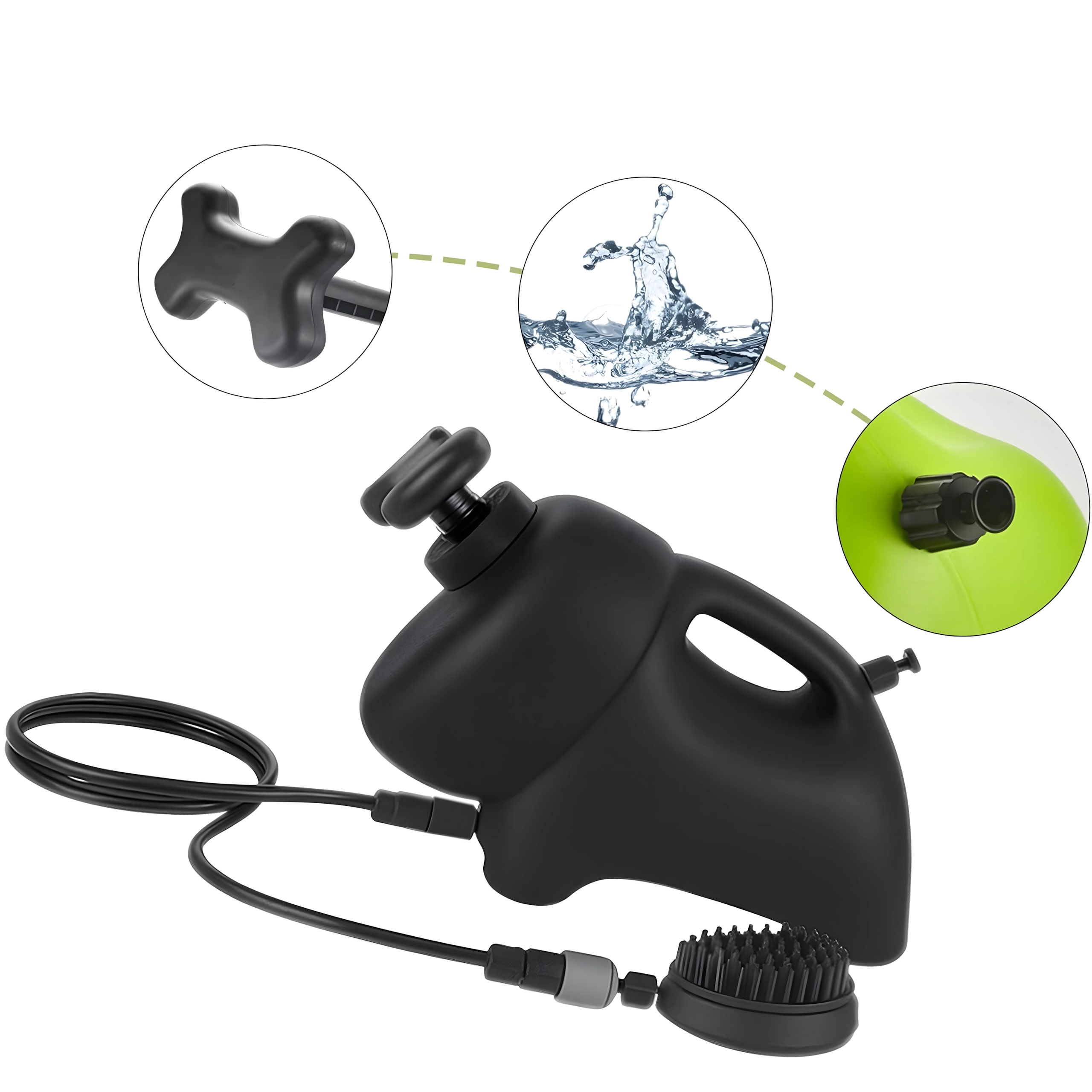 Viegla konstrukcija ar rokturi, gara šļūtene un vienkārša ūdens plūsmas vadība. Ideāli piemērota dārzam, ceļošanai un ātrai ķepu mazgāšanai pēc pastaigas.