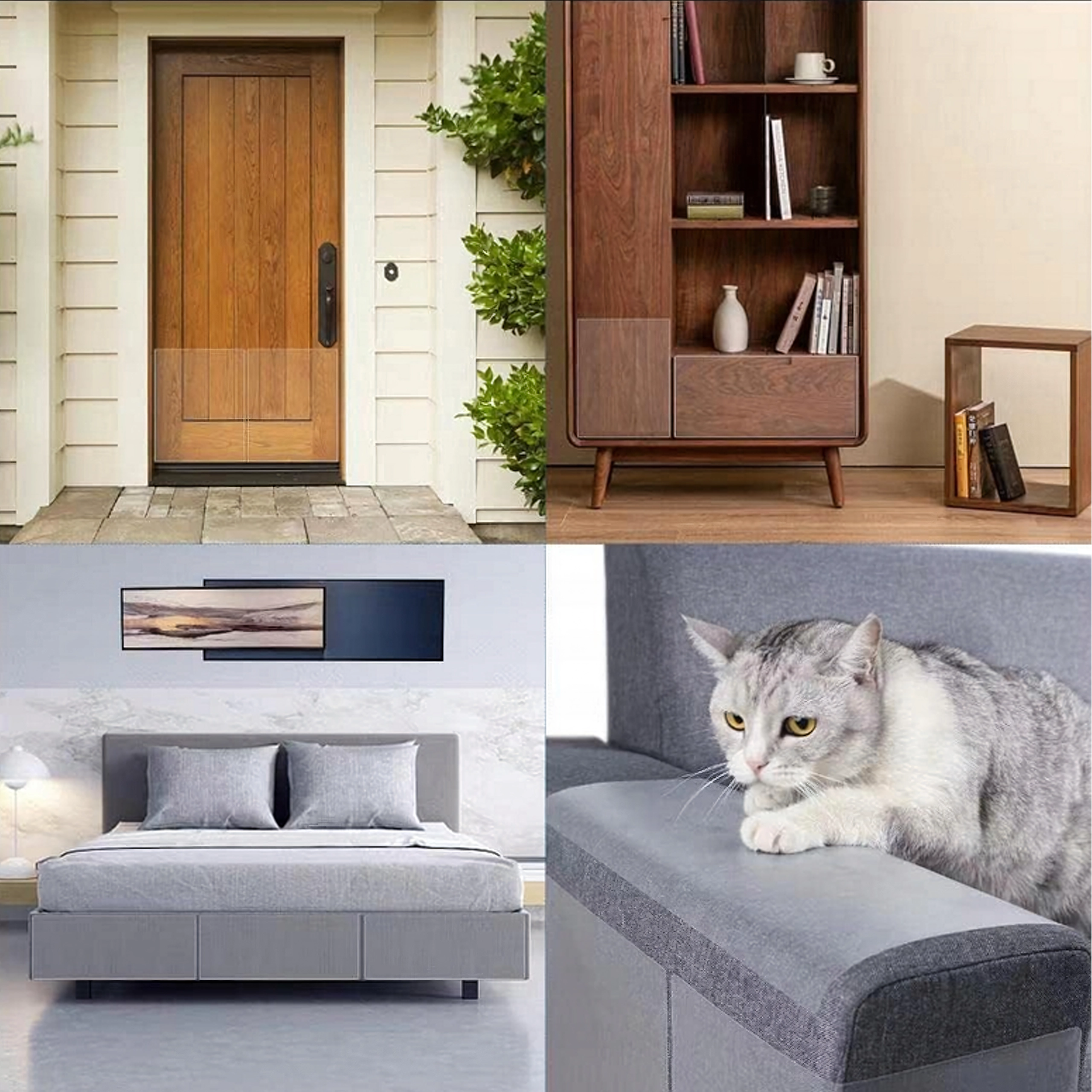 Transparentā plēve saplūst ar mēbeļu virsmu un efektīvi aptur kaķu nagu skrāpējumus, nemazinot jūsu interjera dizaina izskatu.