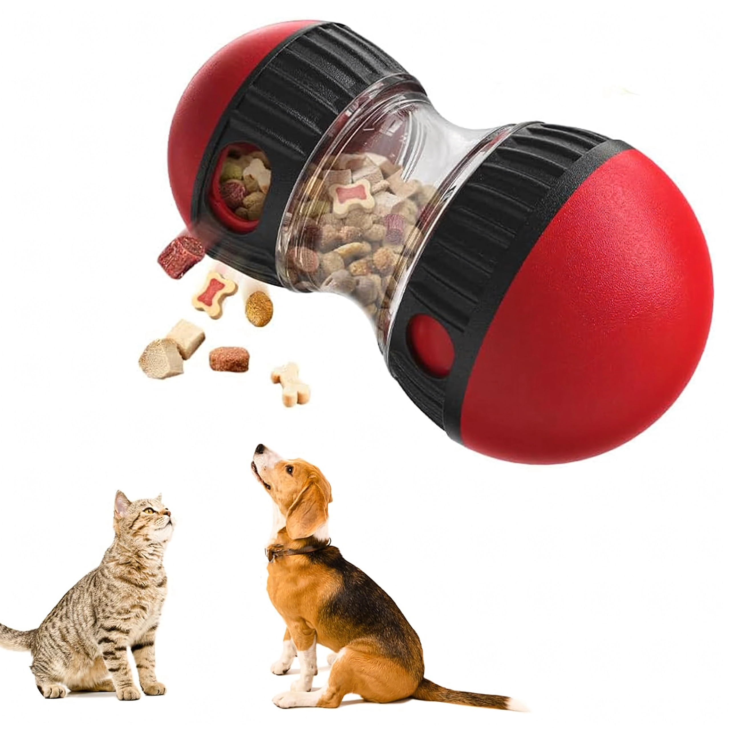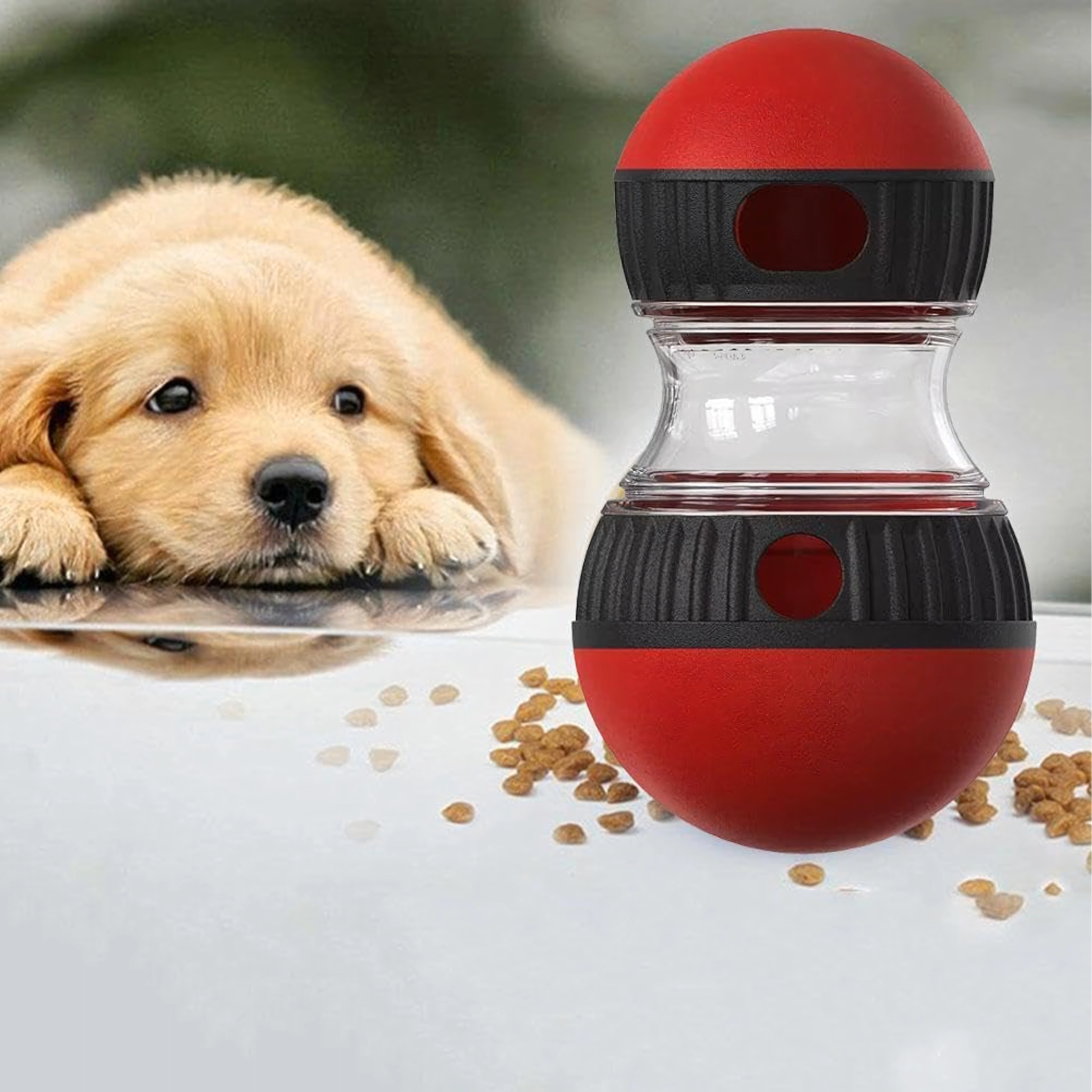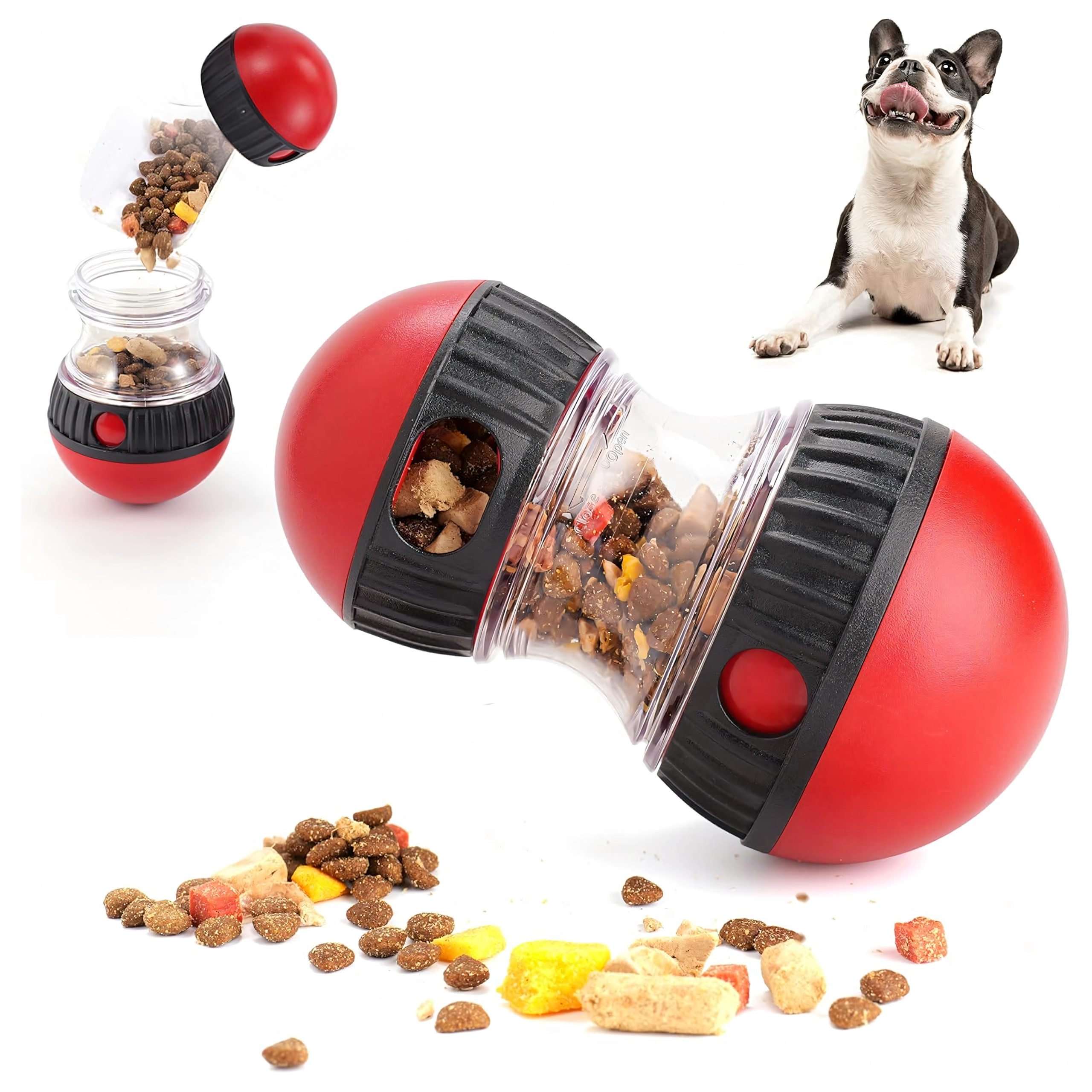 Pārvērtiet katru barošanas reizi gudrā spēlē. Interaktīvais gardumu dozators pakāpeniski izlaiž granulas vai gardumus, tā palēninot ēšanu un palīdzot novērst vēdera uzpūšanos un lieku stresu suņiem. Caurspīdīgā kamera ļauj viegli kontrolēt saturu, bet regulējamās atveres nosaka gardumu izdošanas grūtības pakāpi.