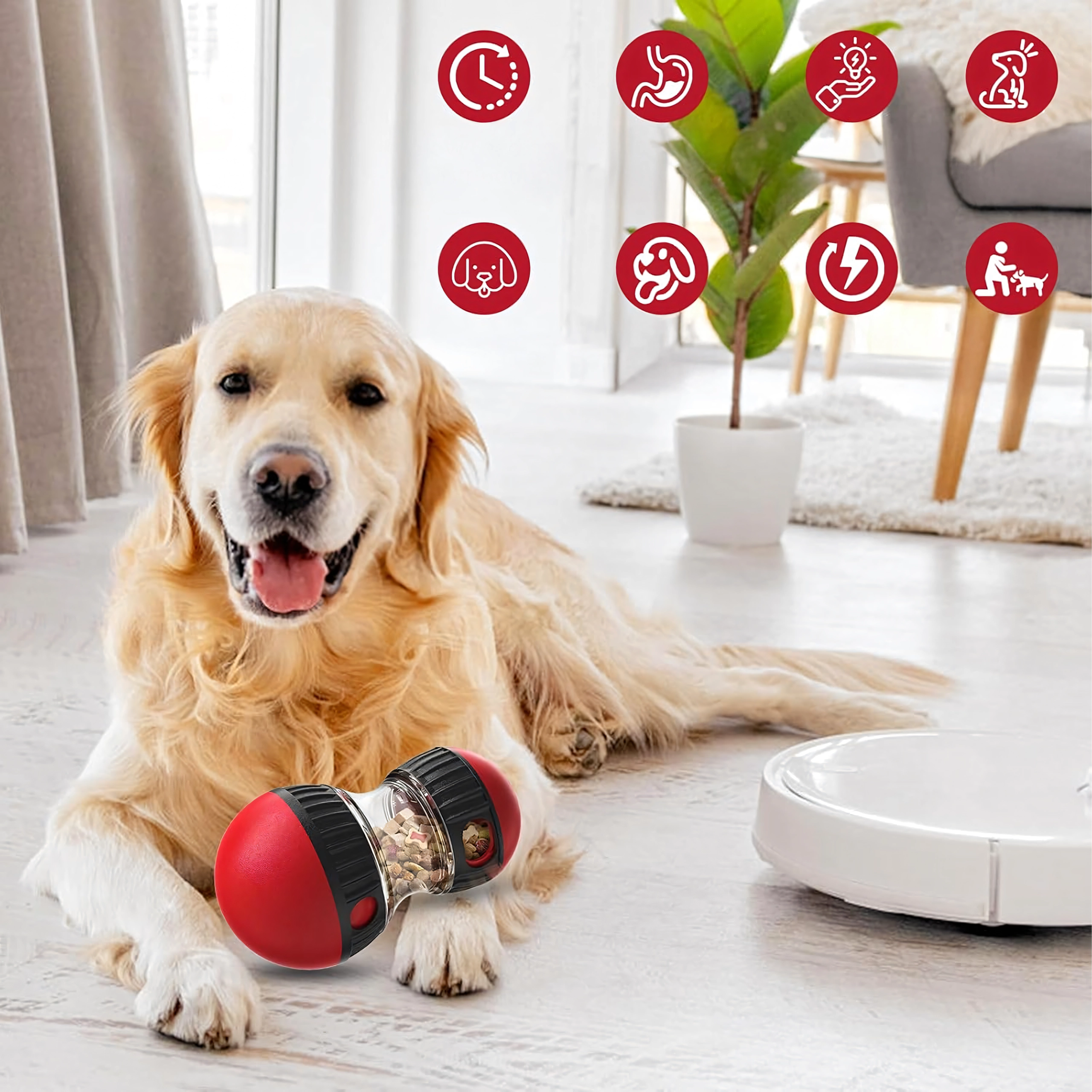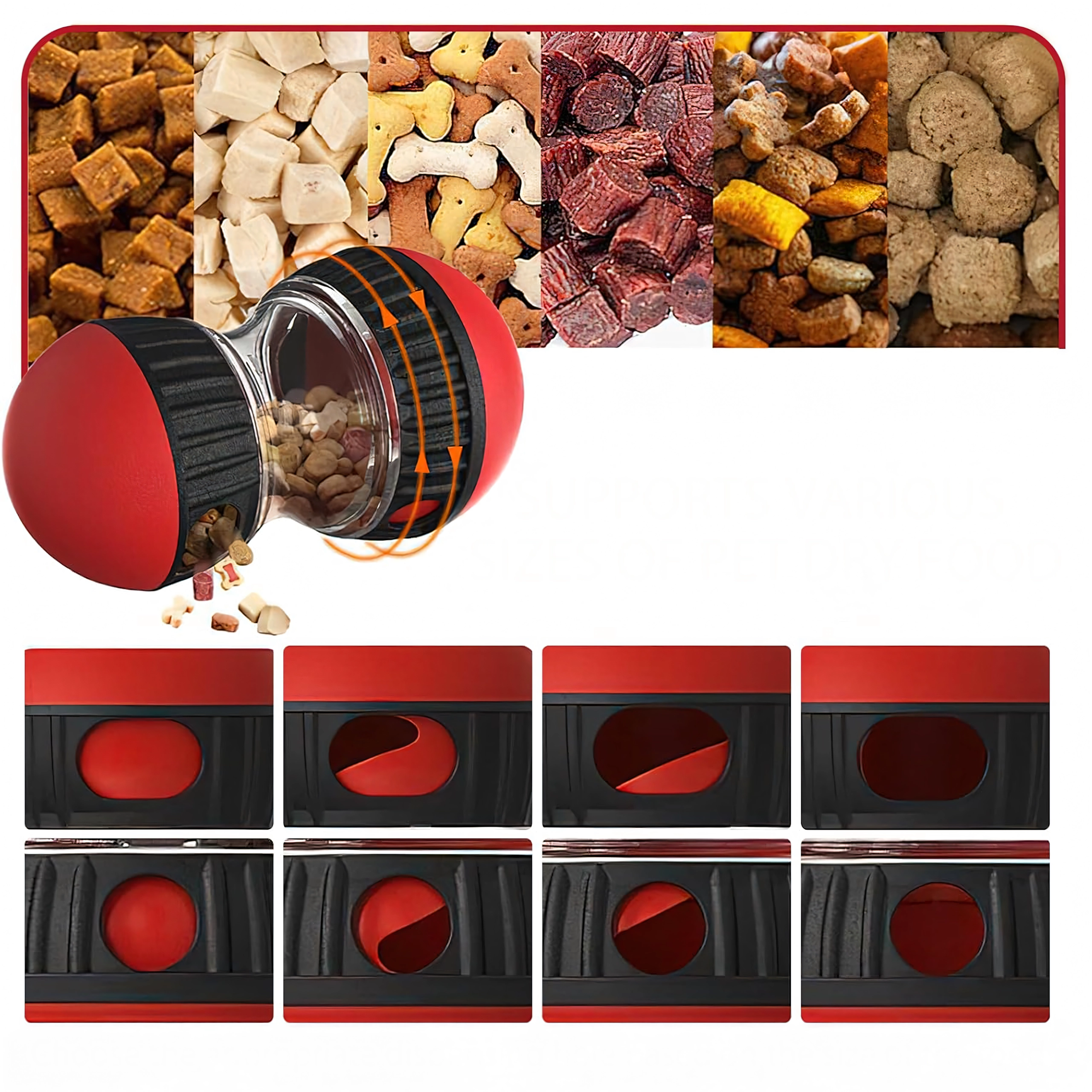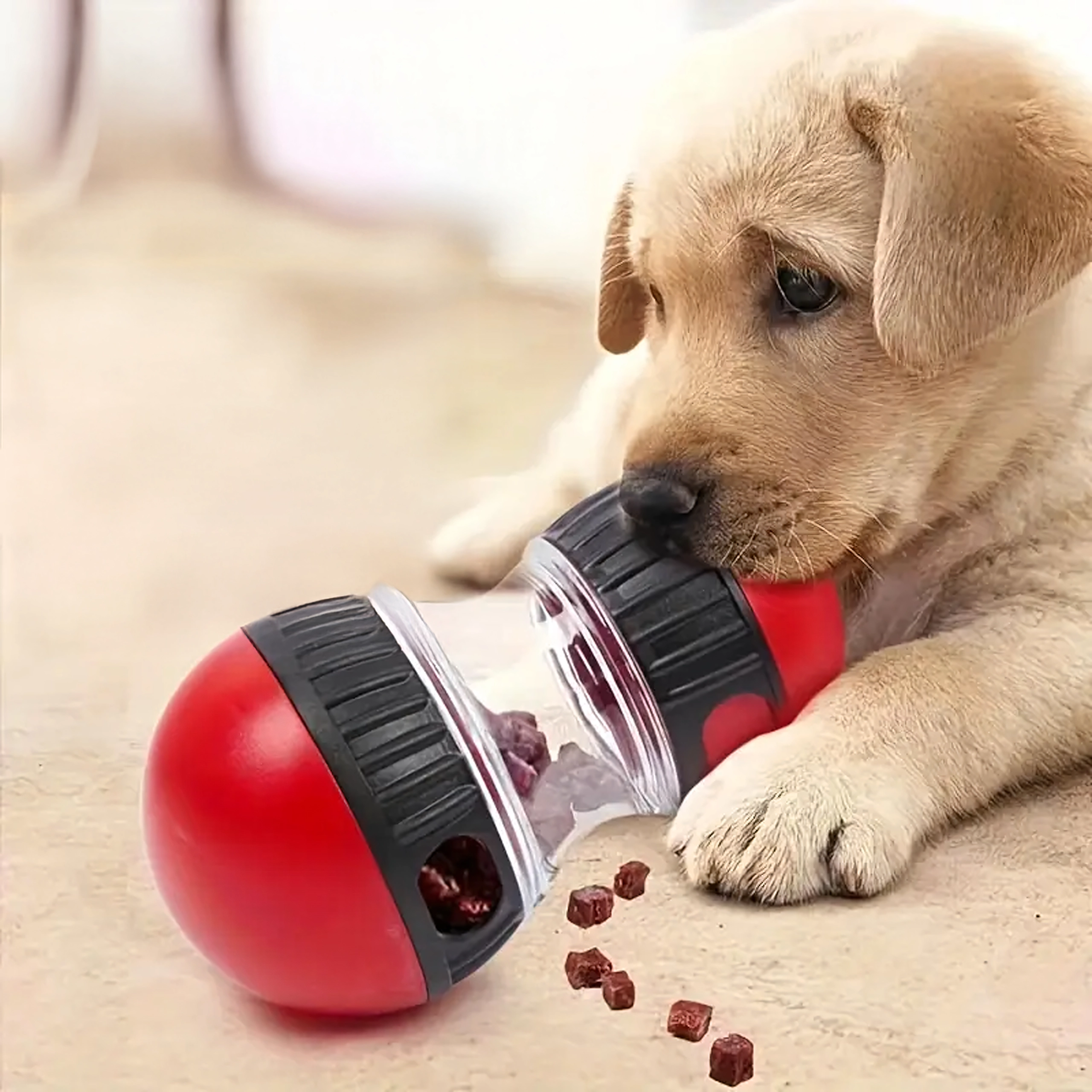 Pārvērtiet katru barošanas reizi gudrā spēlē. Interaktīvais gardumu dozators pakāpeniski izlaiž granulas vai gardumus, tā palēninot ēšanu un palīdzot novērst vēdera uzpūšanos un lieku stresu suņiem. Caurspīdīgā kamera ļauj viegli kontrolēt saturu, bet regulējamās atveres nosaka gardumu izdošanas grūtības pakāpi.
