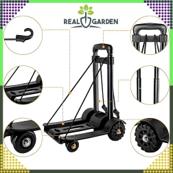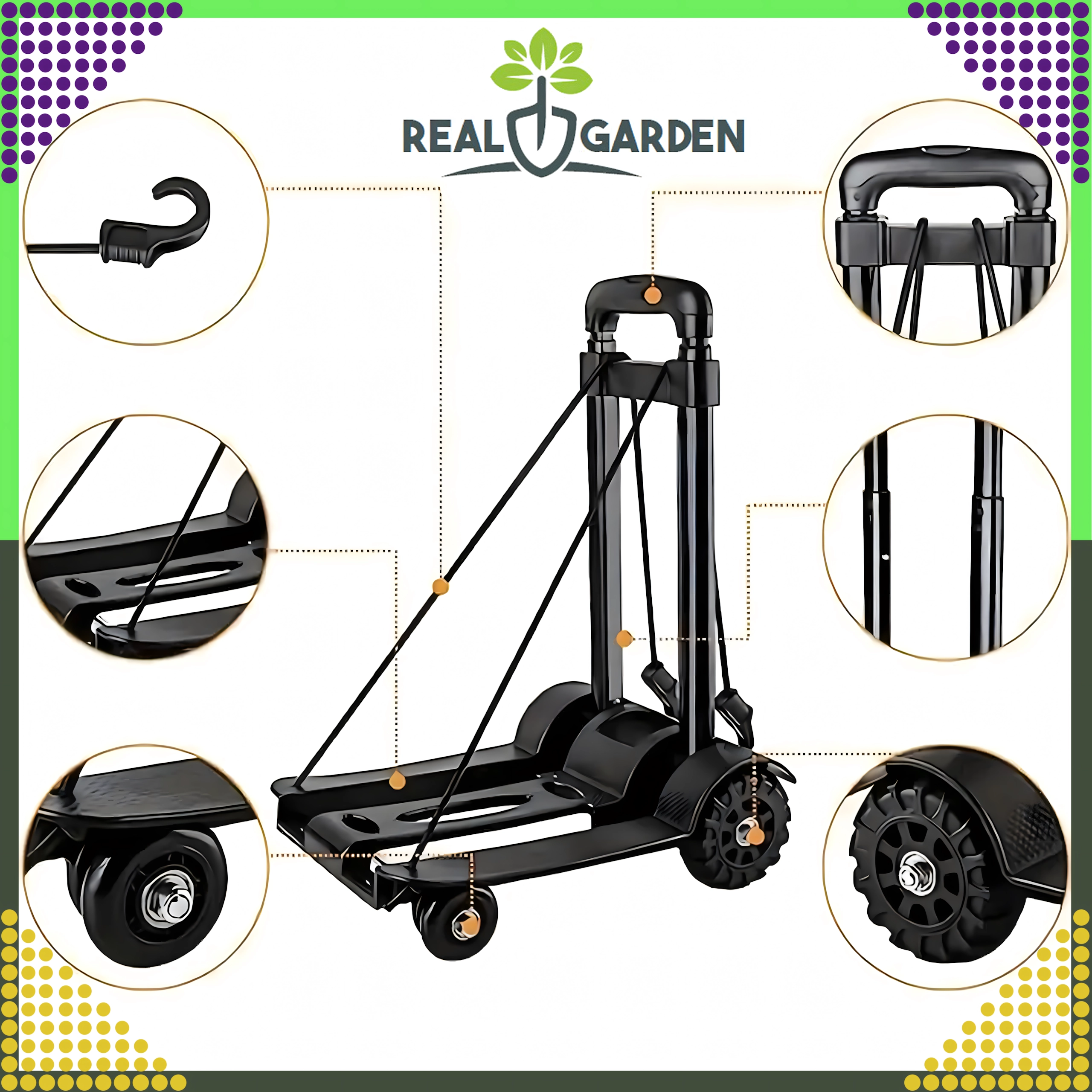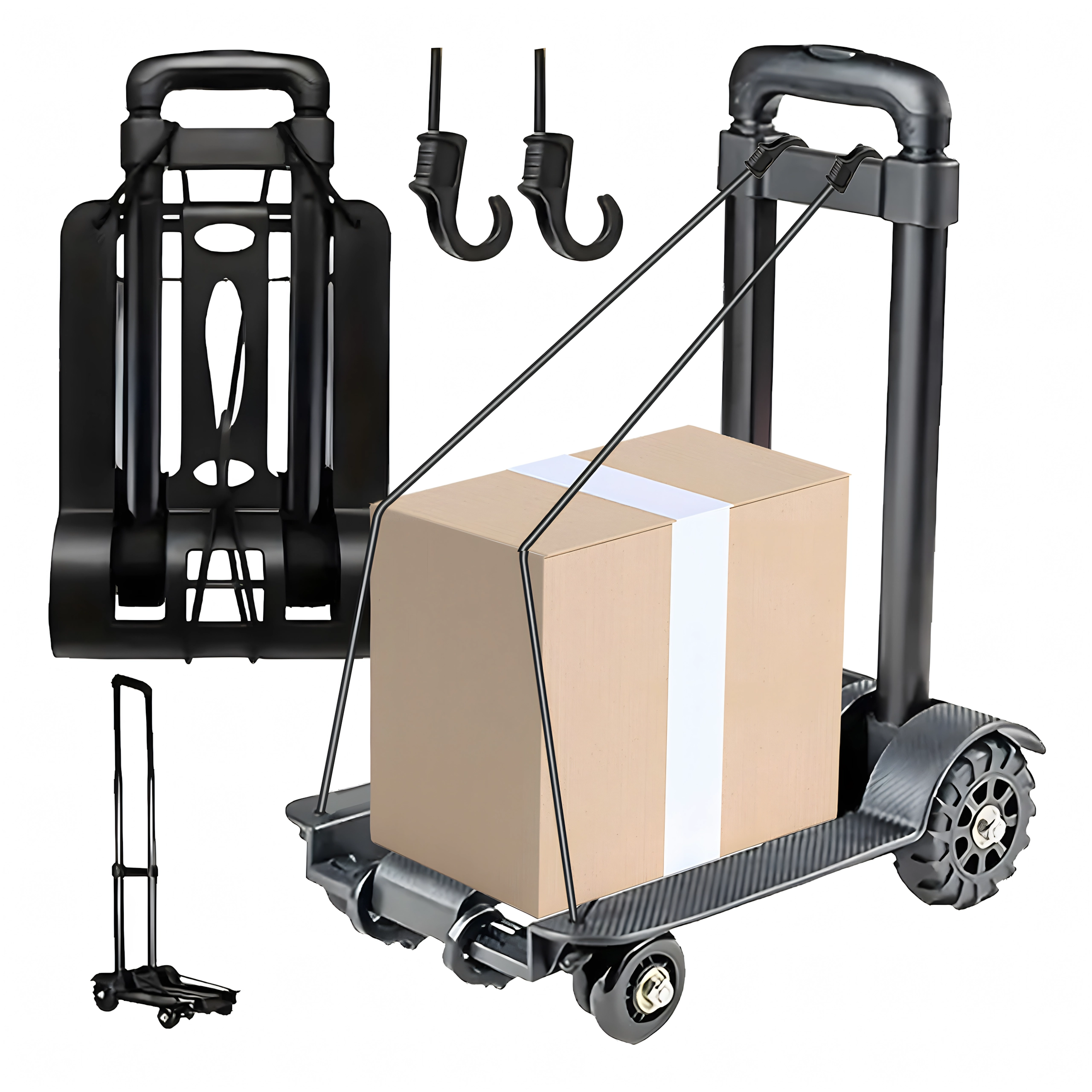 Atvieglojiet ikdienas kravu pārvietošanu. Šis saliekamais pārvadājamo kravas ratiņš apvieno zemu svaru, izturīgu alumīnija un plastmasas konstrukciju un teleskopisku rokturi, kas pielāgojas jūsu augumam. Pateicoties kompaktajiem izmēriem, pēc lietošanas to viegli uzglabāt skapī, automašīnā vai uz plaukta.