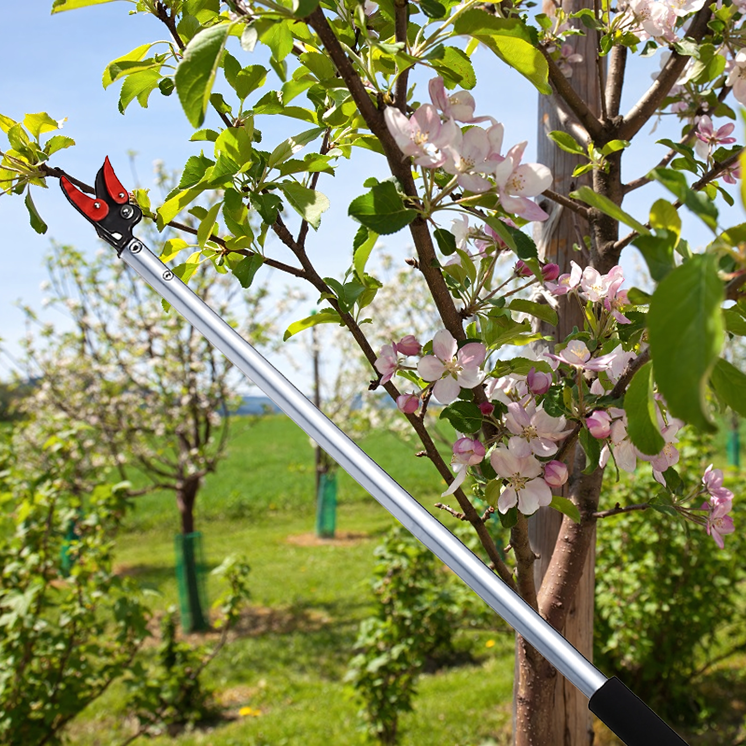 100 cm garums un vieglā konstrukcija ļauj droši no zemes apgriezt zarus un lasīt augļus.