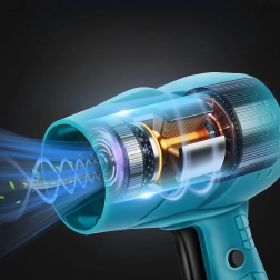 - Spēcīga jauda 400 W: efektīva gaisa plūsma tīrīšanai un žāvēšanai