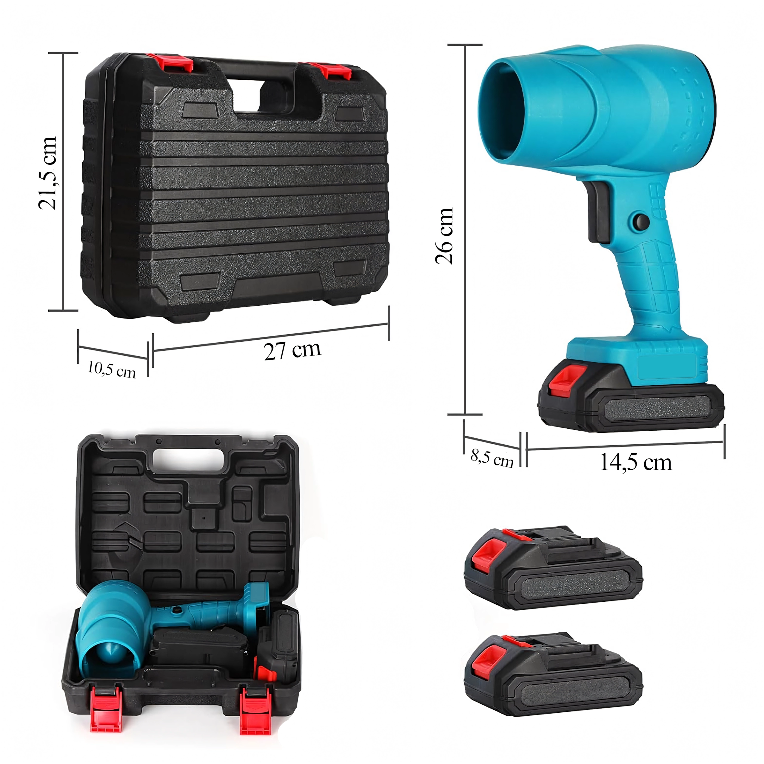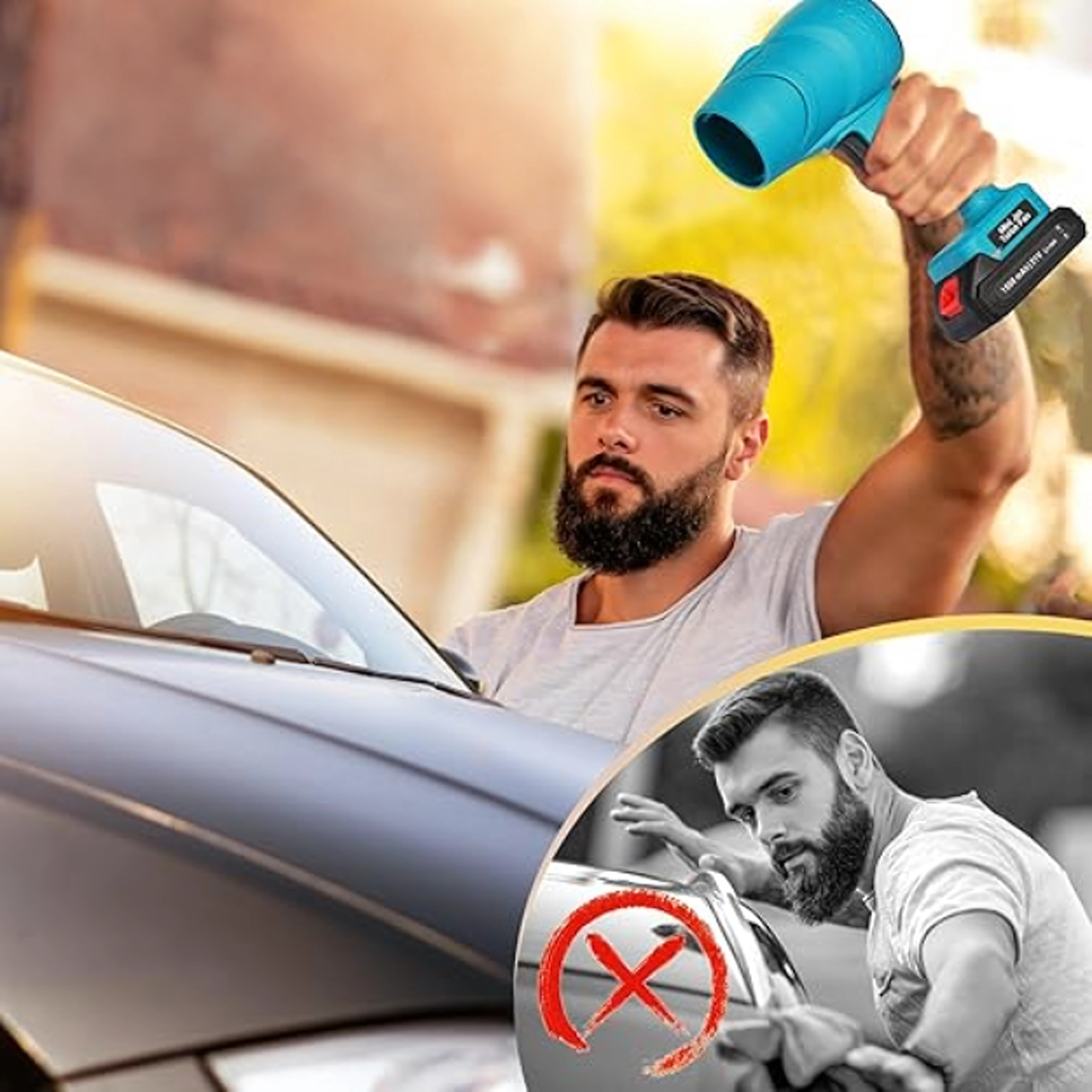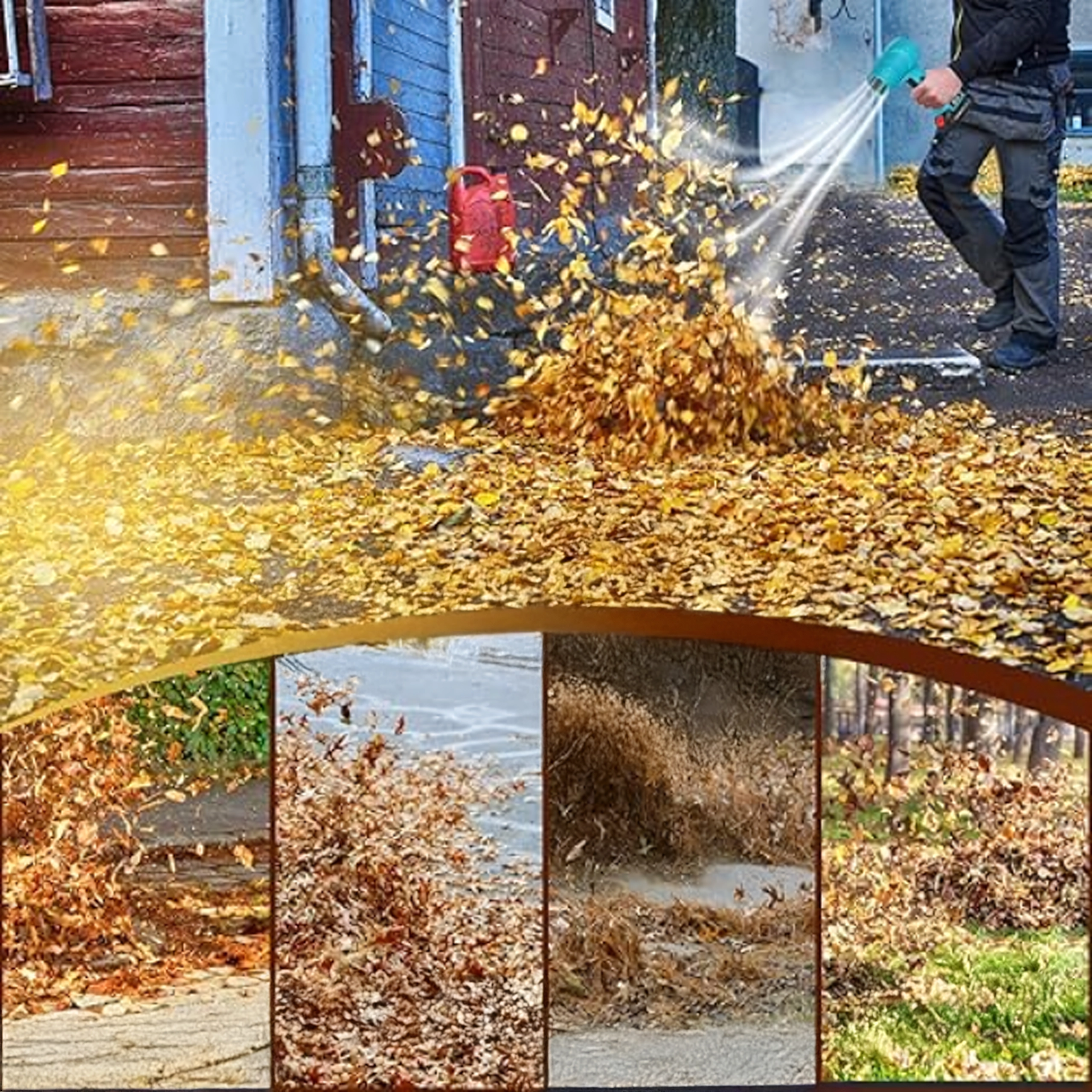 Šis bezvadu pūtējs izmanto turbokompresora tehnoloģiju, lai nodrošinātu tūlītēju koncentrāciju un augstu gaisa plūsmas ātrumu. Tas viegli savāc sausas lapas no ietvēm un piebraucamajiem ceļiem, izpūš putekļus no stūriem un instrumentiem, kā arī ātri palīdz virsmu žāvēšanā, piemēram, pēc auto mazgāšanas.