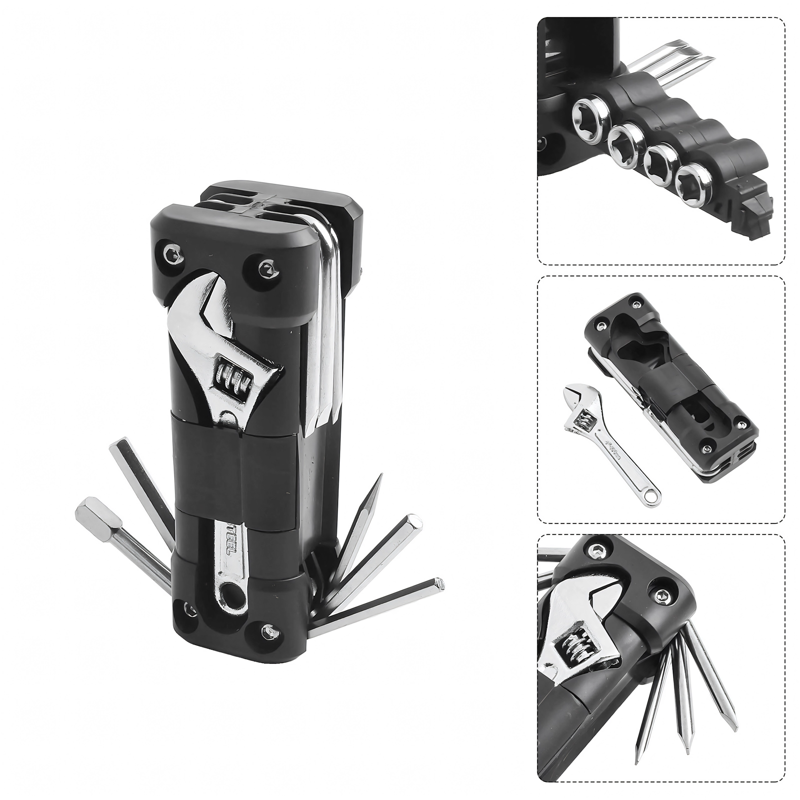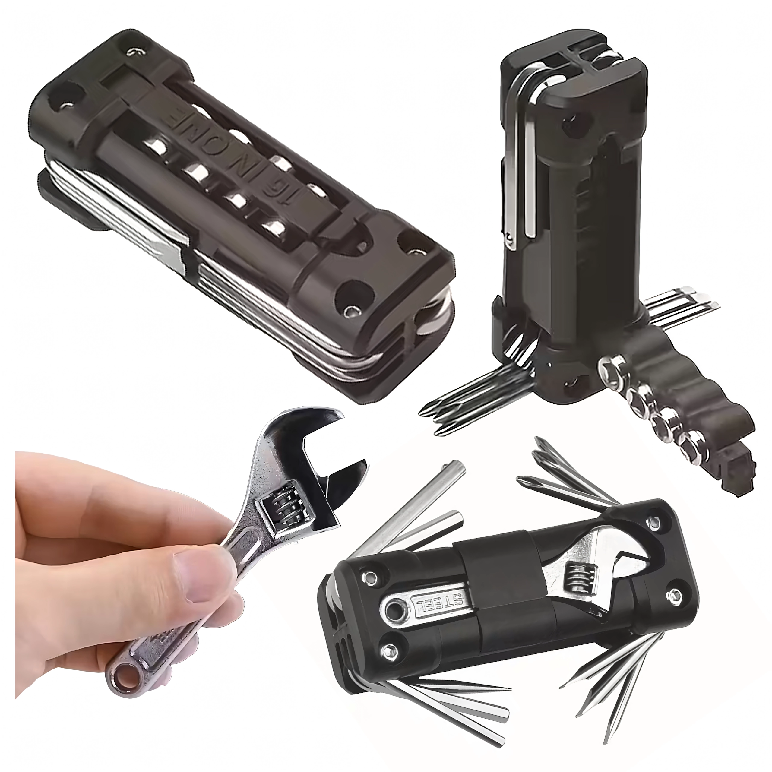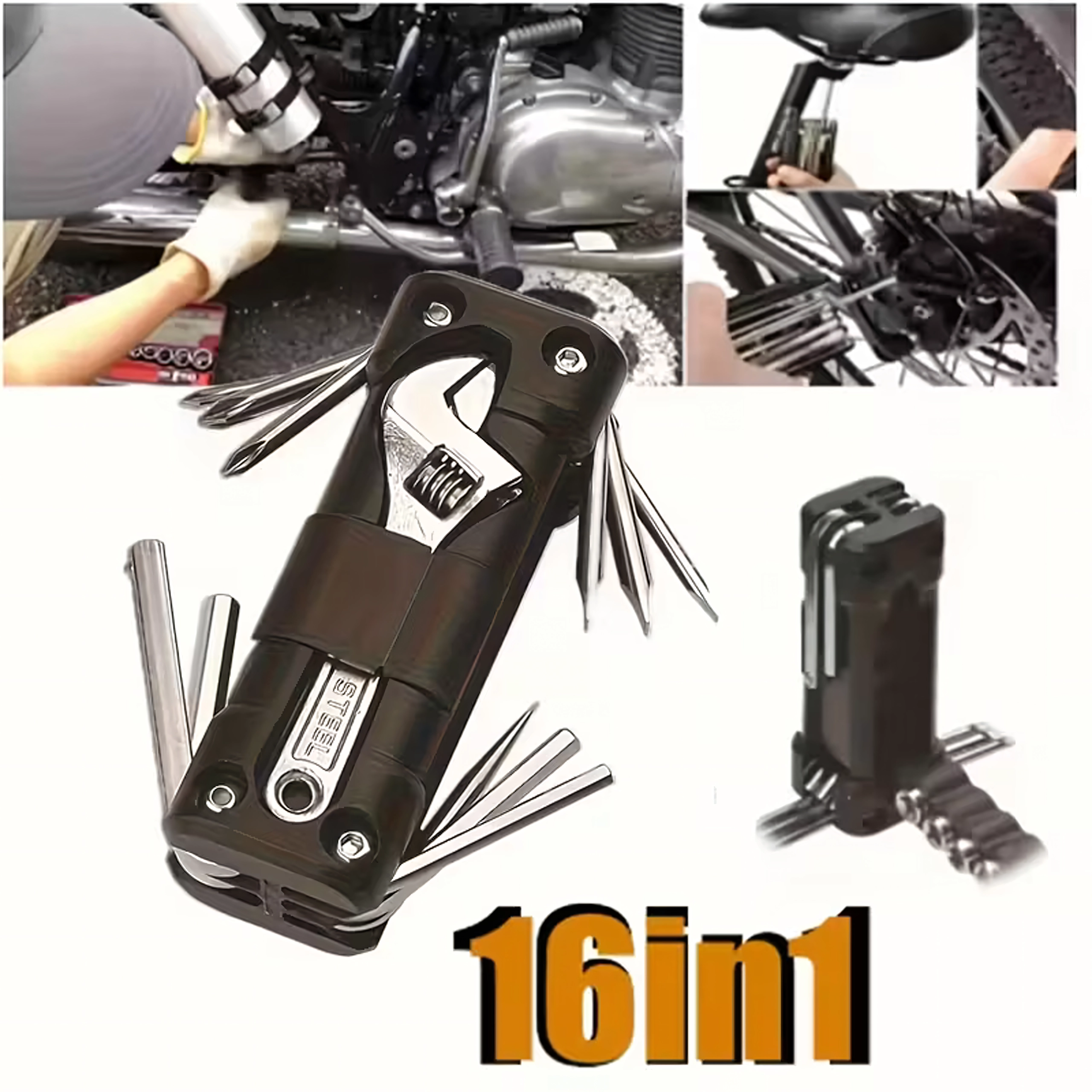 Praktisks multitūls 13 v 1 aizstāj veselu instrumentu kasti. Tas ir kompakts, salokāms un ideāli piemērots velosipēdam, darbnīcas remontiem, auto un kempingam – vienmēr pa rokai, kad vajadzīgs ātrs labojums.