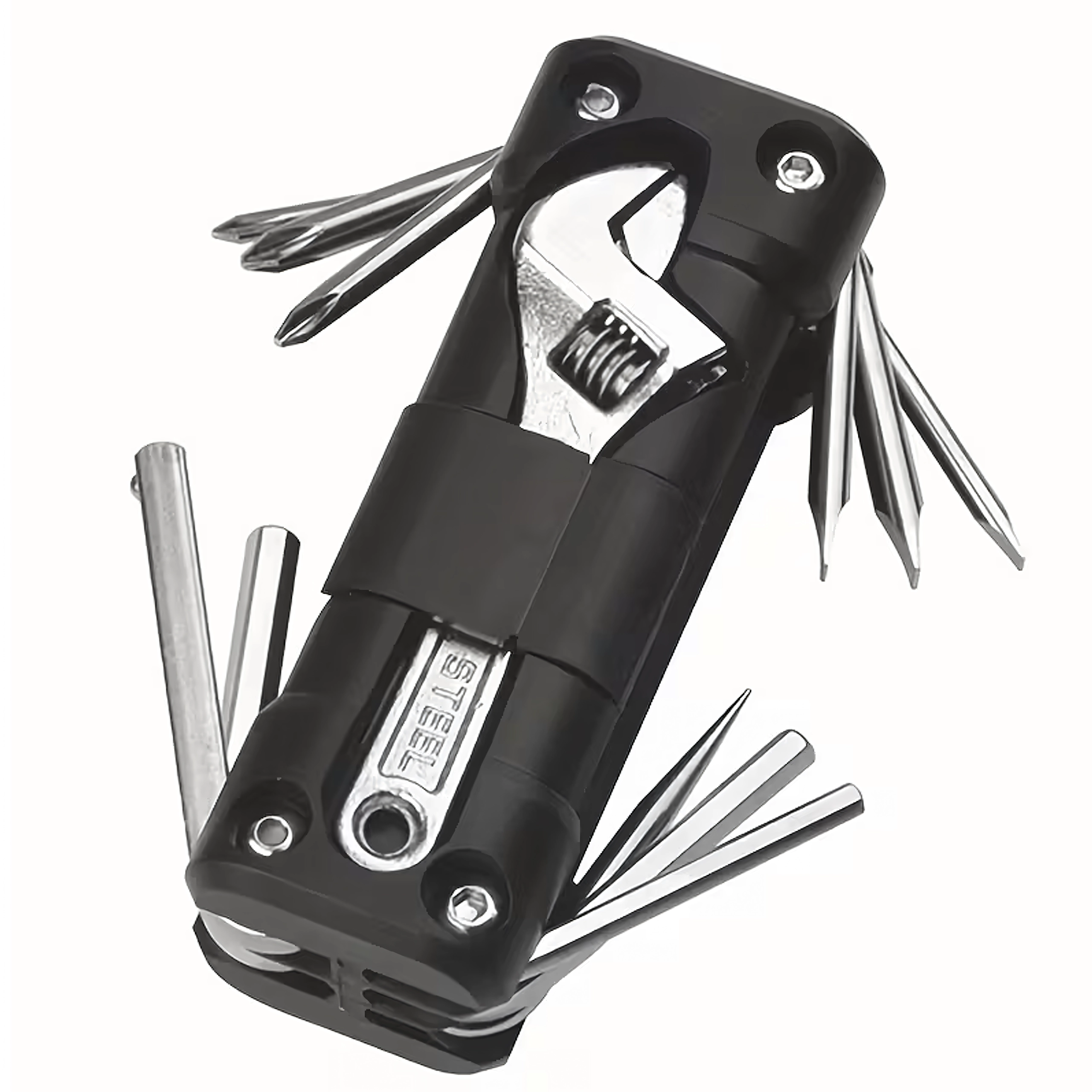 Universāls multitūls 13 v 1 piedāvā visu nepieciešamo skrūvju pievilkšanai un ātrai regulēšanai ceļā un mājās. Izturīgi metāla instrumenti un ergonomisks korpuss nodrošina drošu satvērienu un ilgu kalpošanas laiku. Pateicoties salokāmajai konstrukcijai, tas ērti ietilpst kabatā, zemsēdekļa somiņā vai auto nodalījumā.