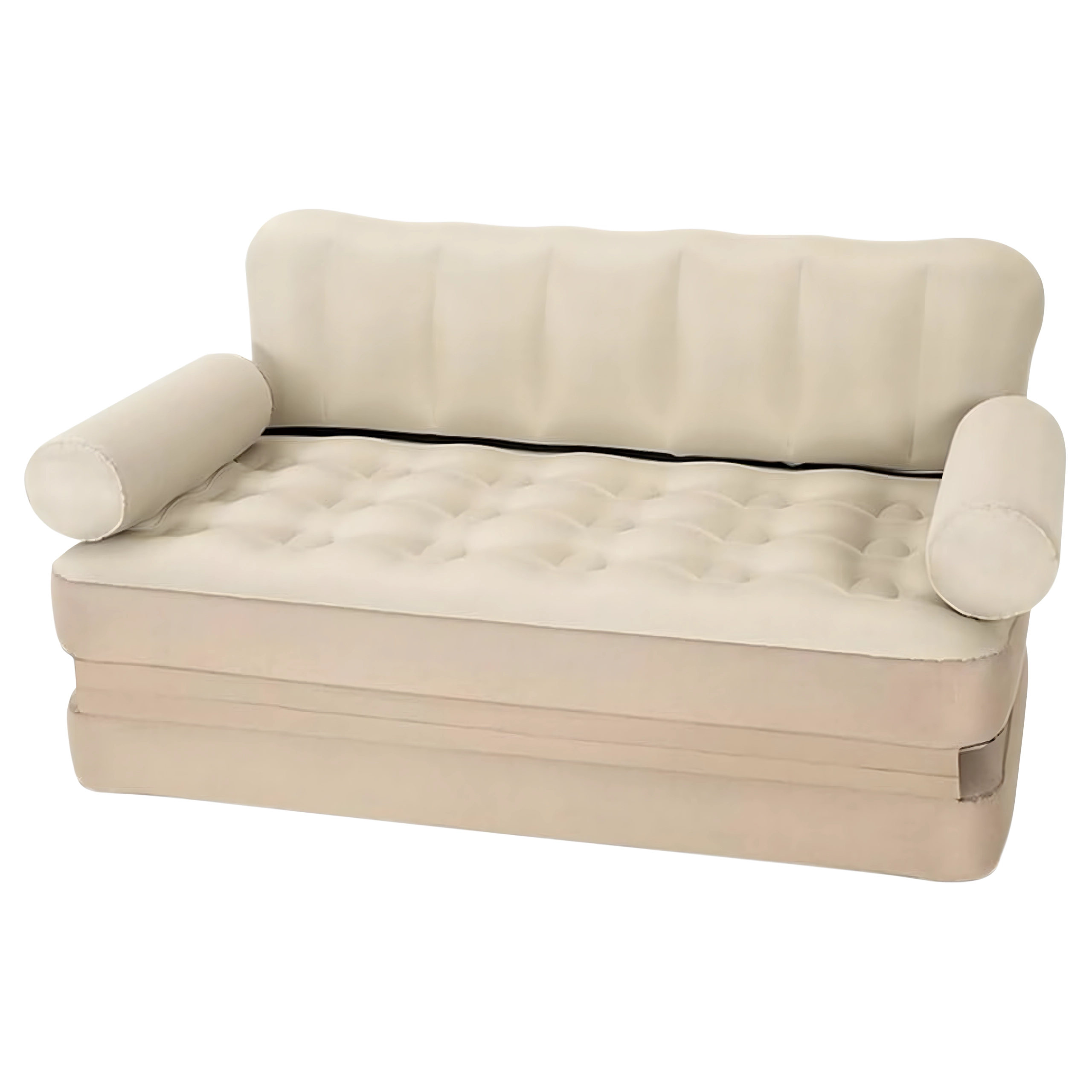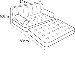 Atklājiet elastīgu sēdēšanas un gulēšanas risinājumu vienā. Šis uzpūšamais saliekamais 5‑in‑1 dīvāns acumirklī pārvēršas no ērta dīvāna par plašu gultu divām personām. Mīksta, kamervirsmas struktūra mazina spiediena punktus un sniedz atbalstu gan sēžot, gan guļot.