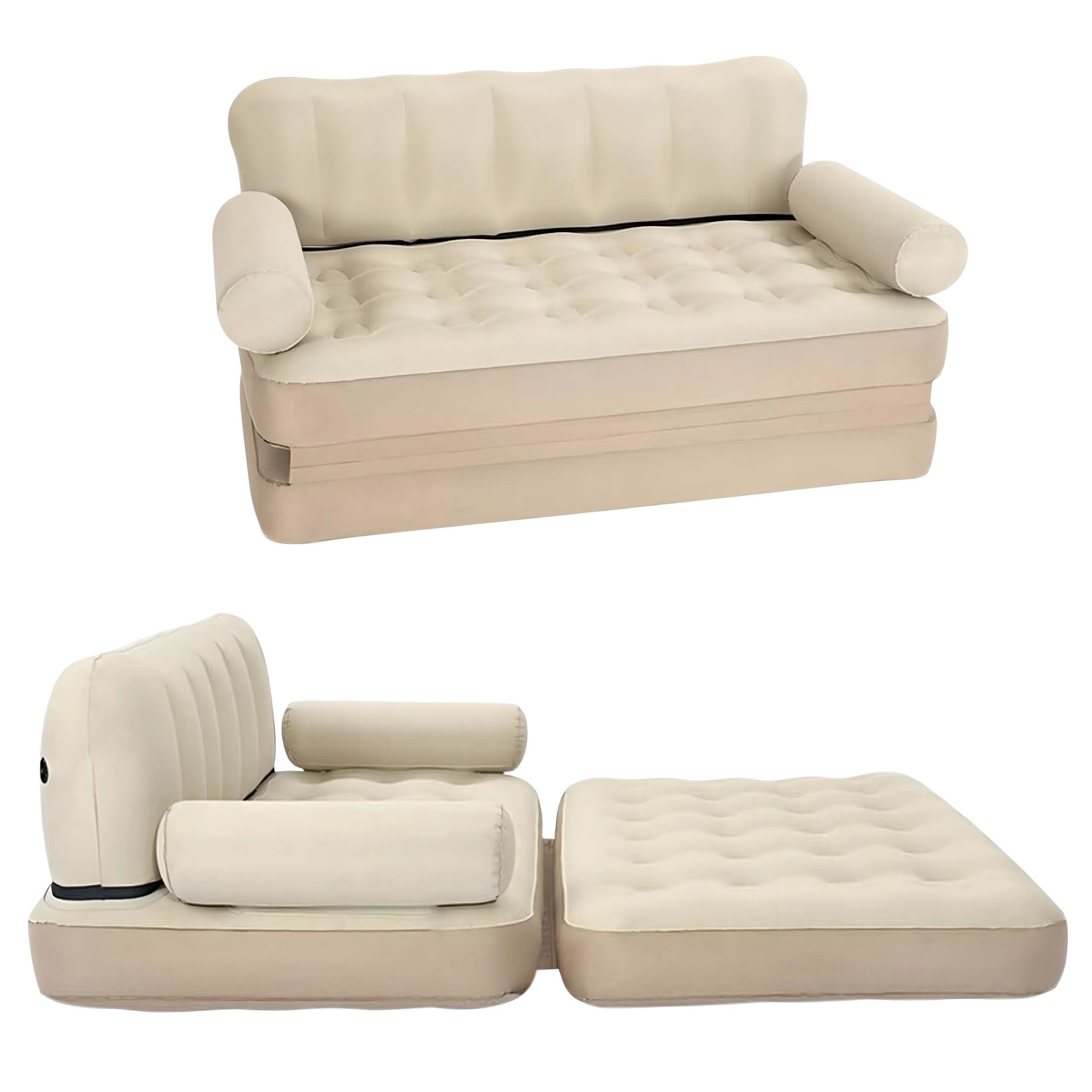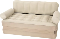 Universālais uzpūšamais 5‑in‑1 dīvāns ir praktisks mēbeļu risinājums ikdienas komfortam mājās un ceļā. Tas kalpo kā dīvāns, šezlongs, matracis un gulta divām personām. Pateicoties izturīgam PVC, tas ir viegls, ērti pārnēsājams un elegantā bēšā krāsā iederas jebkurā interjerā un dārzā.