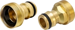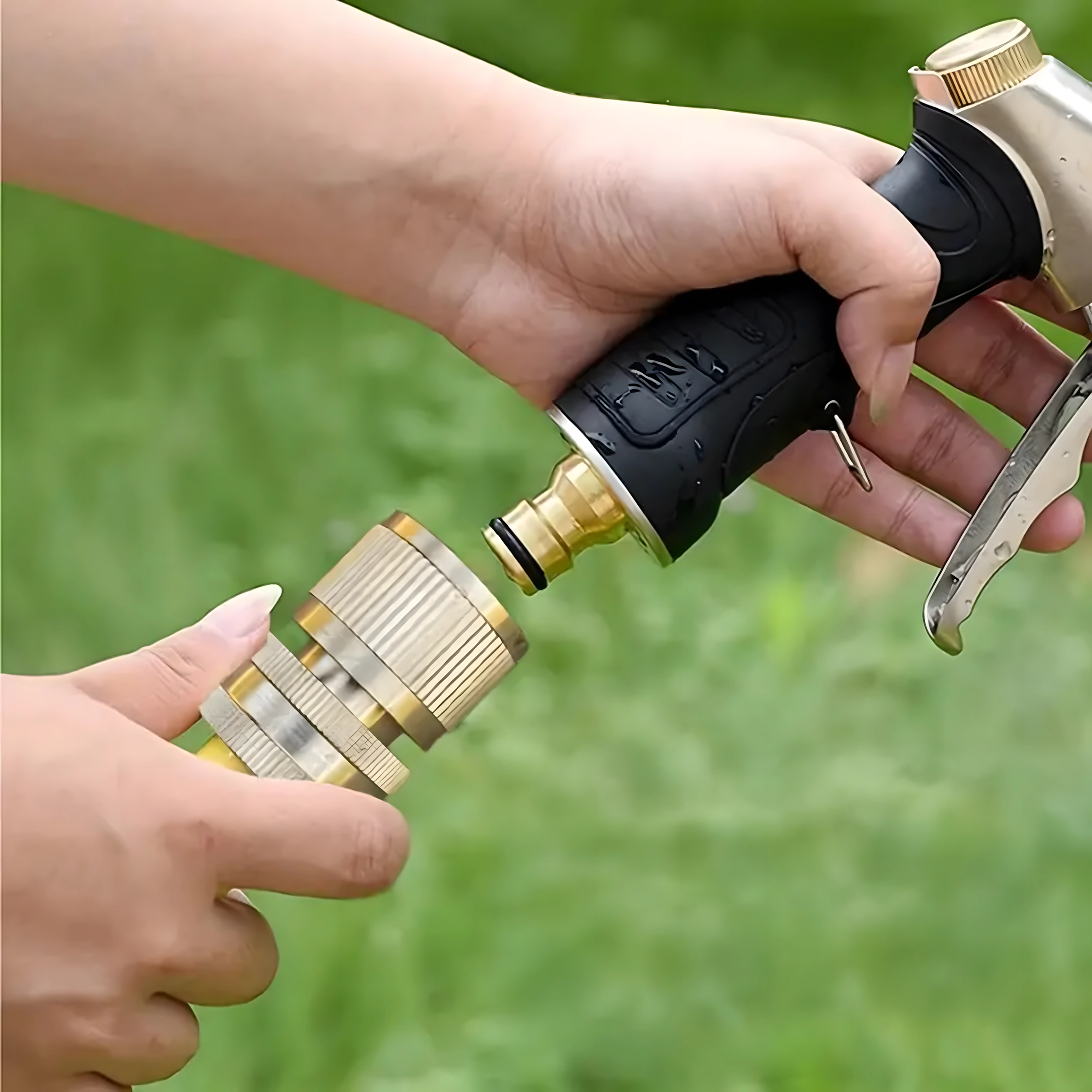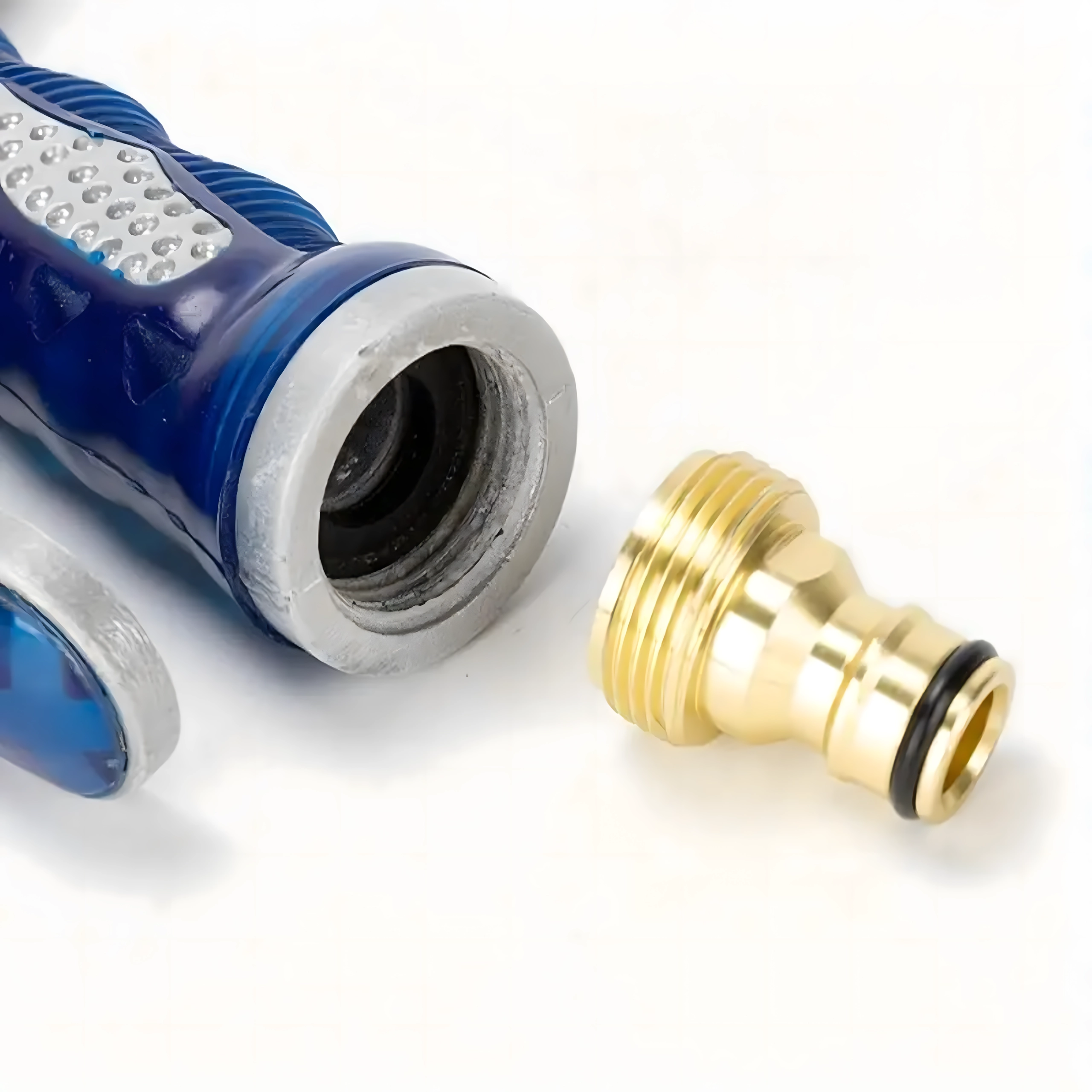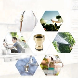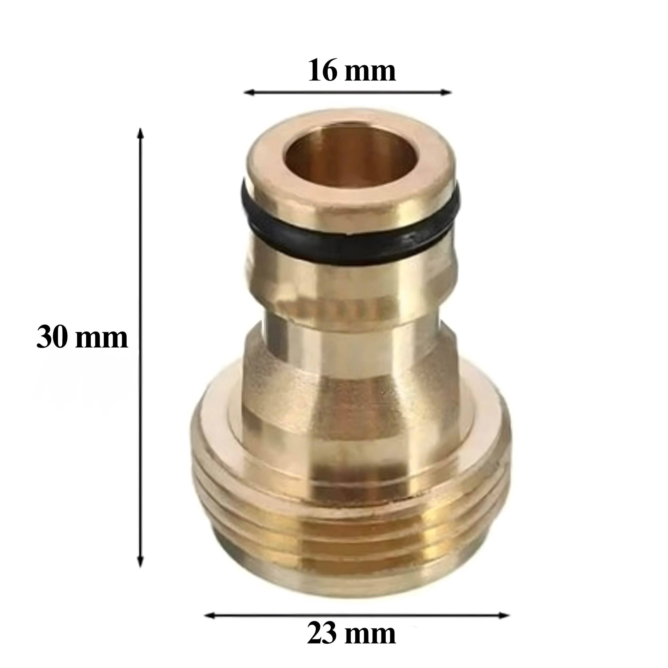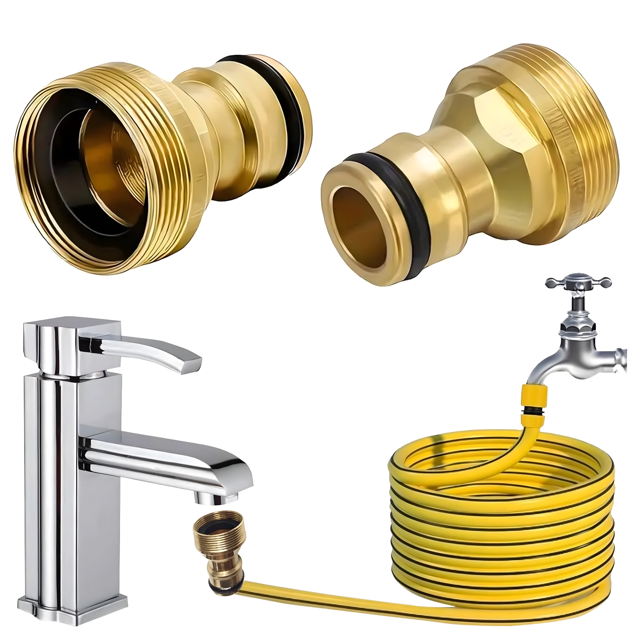 Universāls misiņa adapteris G3/4 nodrošina ātru dārza šļūtenes pievienošanu krānam bez instrumentiem. Pateicoties izturīgajai misiņa konstrukcijai un maināmajai blīvgredzena O‑ringam, tas nodrošina uzticamu, ciešu un bezpilienu savienojumu laistīšanai, auto mazgāšanai un mājas apkārtnes uzkopšanai.