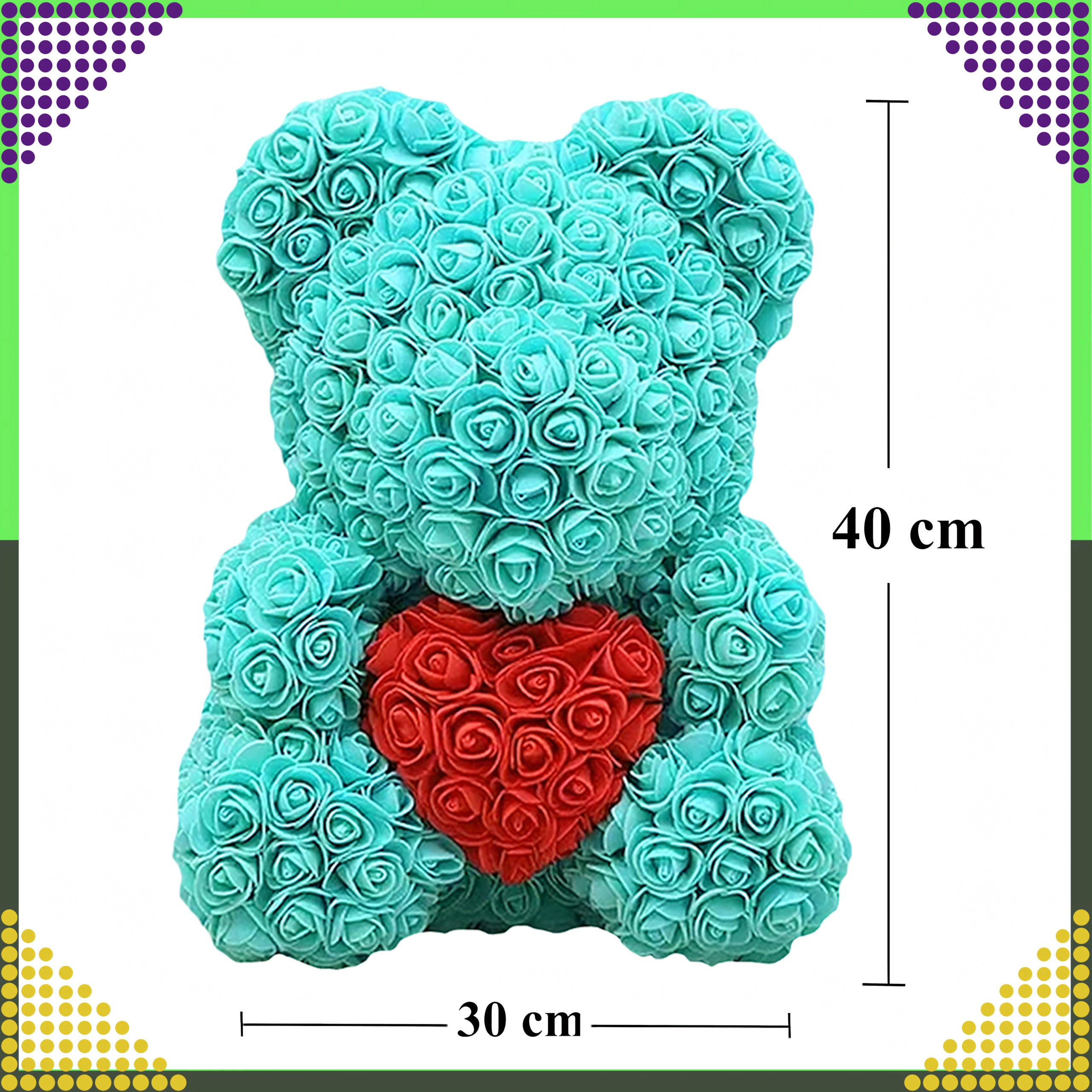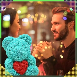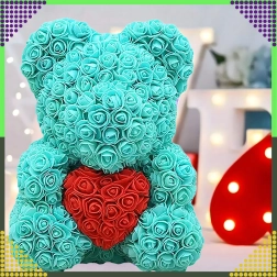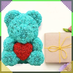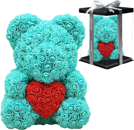 Elegantais 40 cm augstais rožu lācītis ir neaizmirstama romantiska dāvana partnerei, mammai vai vecmāmiņai. Tas ir izgatavots no maigām putu rozēm, kas nekad neizvīst, tāpēc kalpos kā ilglaicīga dekorācija un mīlestības simbols Valentīndienā un citos īpašos brīžos.