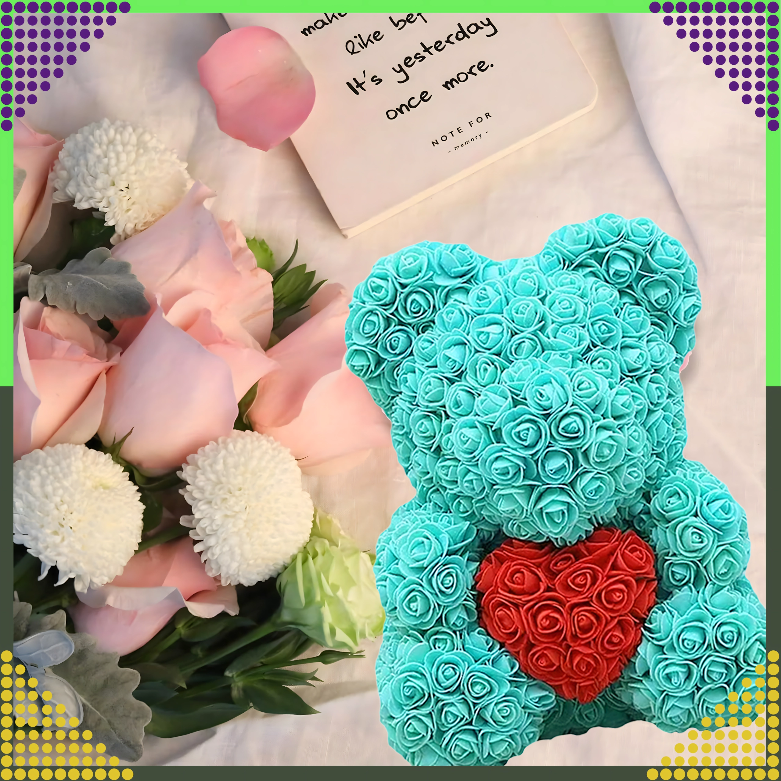 Ideāli piemērots kā Valentīndienas dāvana, jubilejai, Mātes dienai vai vienkārši priekam. Neizžūst, neprasa kopšanu un vienmēr izskatās svaigs – skaistums bez rūpēm.