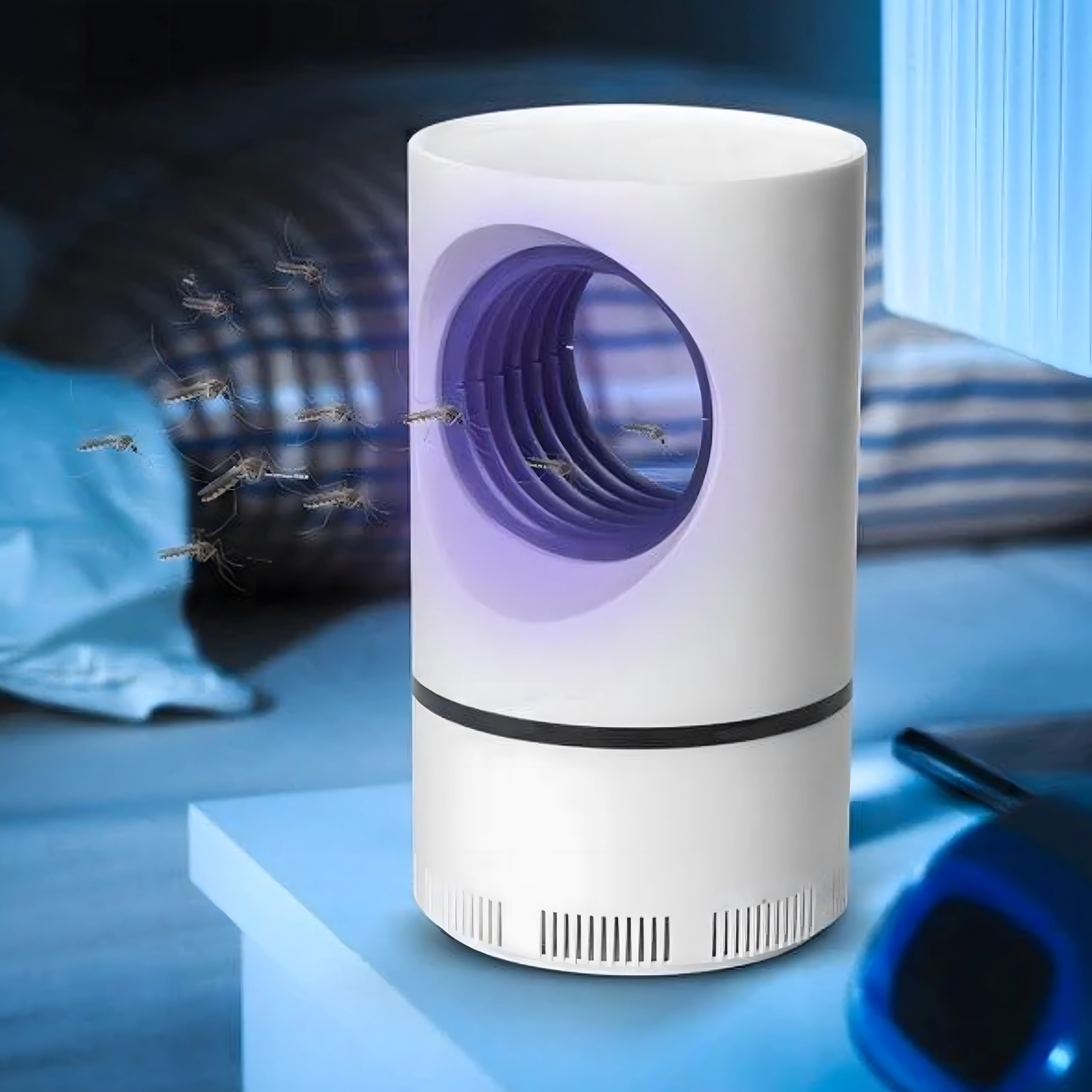 UV gaisma pievilina kukaiņus, un iebūvētais ventilators tos iesūc savākšanas kamerā – bez ķīmijas, bez smakas un bez elektriskām izlādes dzirkstelēm. Piemērots guļamistabai un bērnu tuvumā.