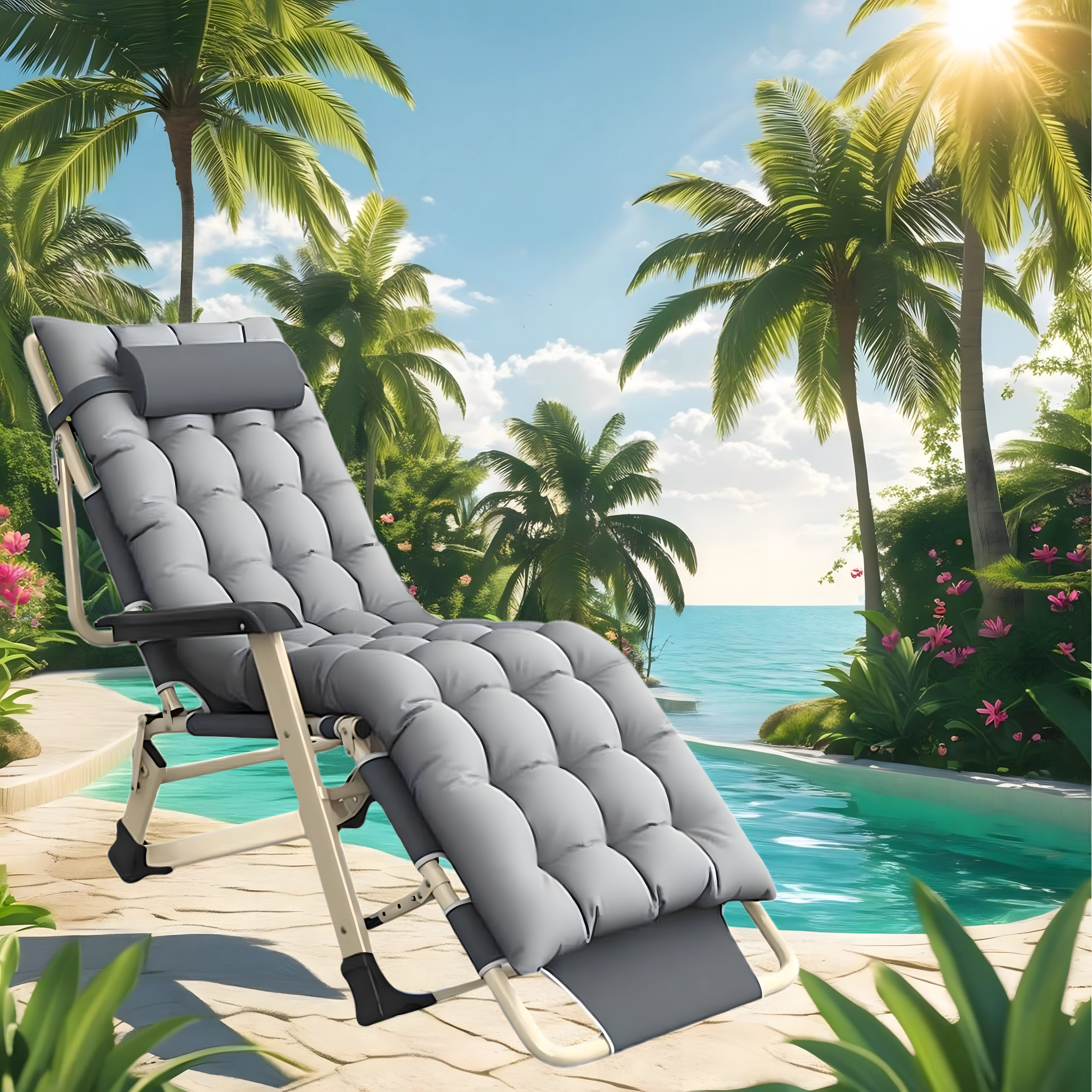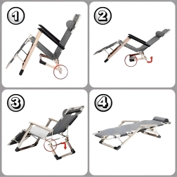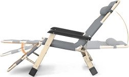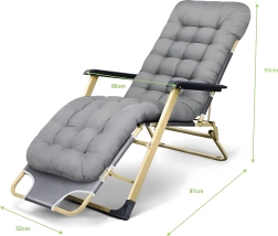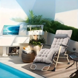 Pateicoties regulējamai muguras un kāju pozicionēšanai, varat viegli atrast ideālu pozu lasīšanai, sauļošanai vai īsai snaudai. Roku balsti un pagarināts kāju balsts palielina komfortu, bet pārnēsājamā saliekamā konstrukcija atvieglo uzglabāšanu un pārvadāšanu.