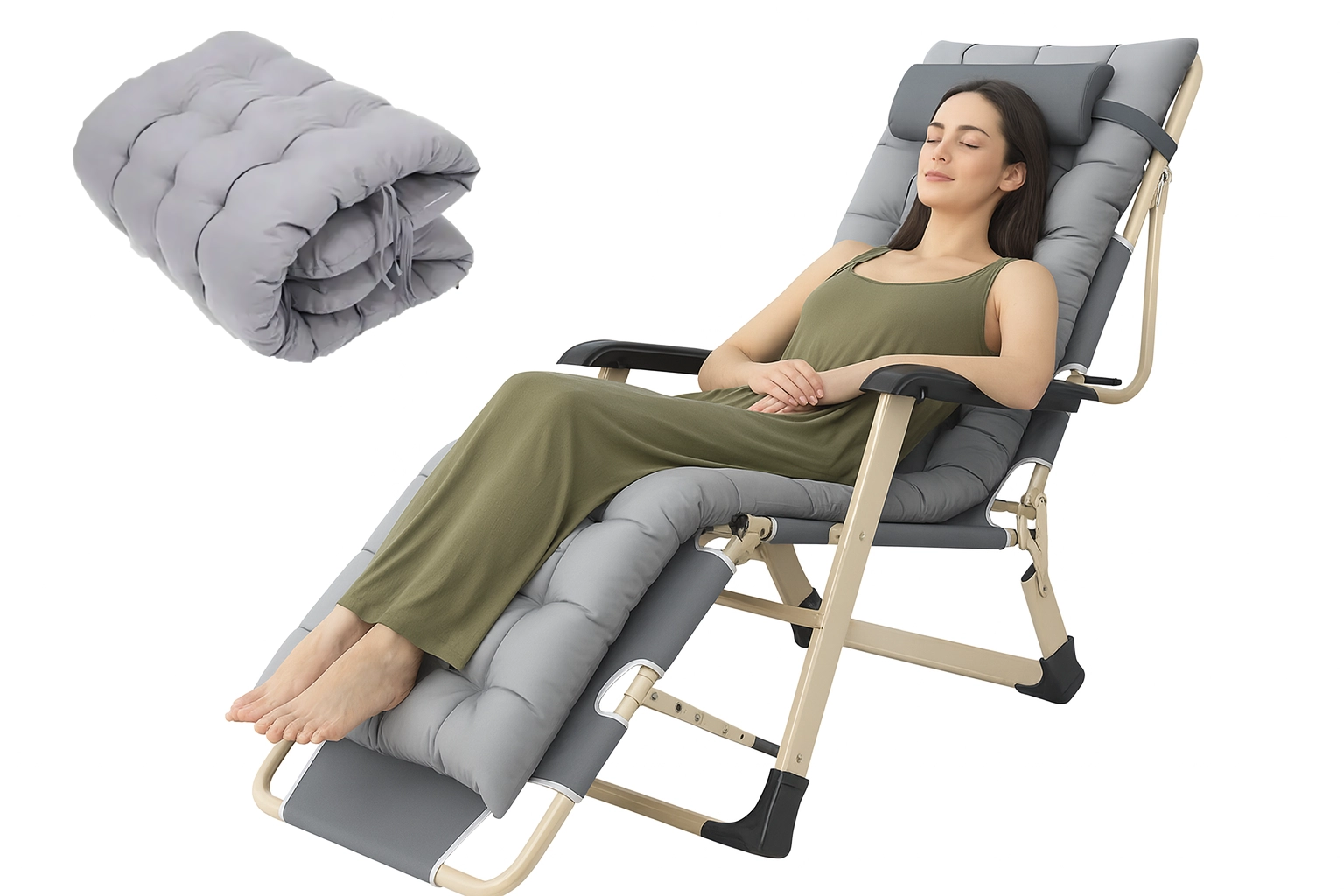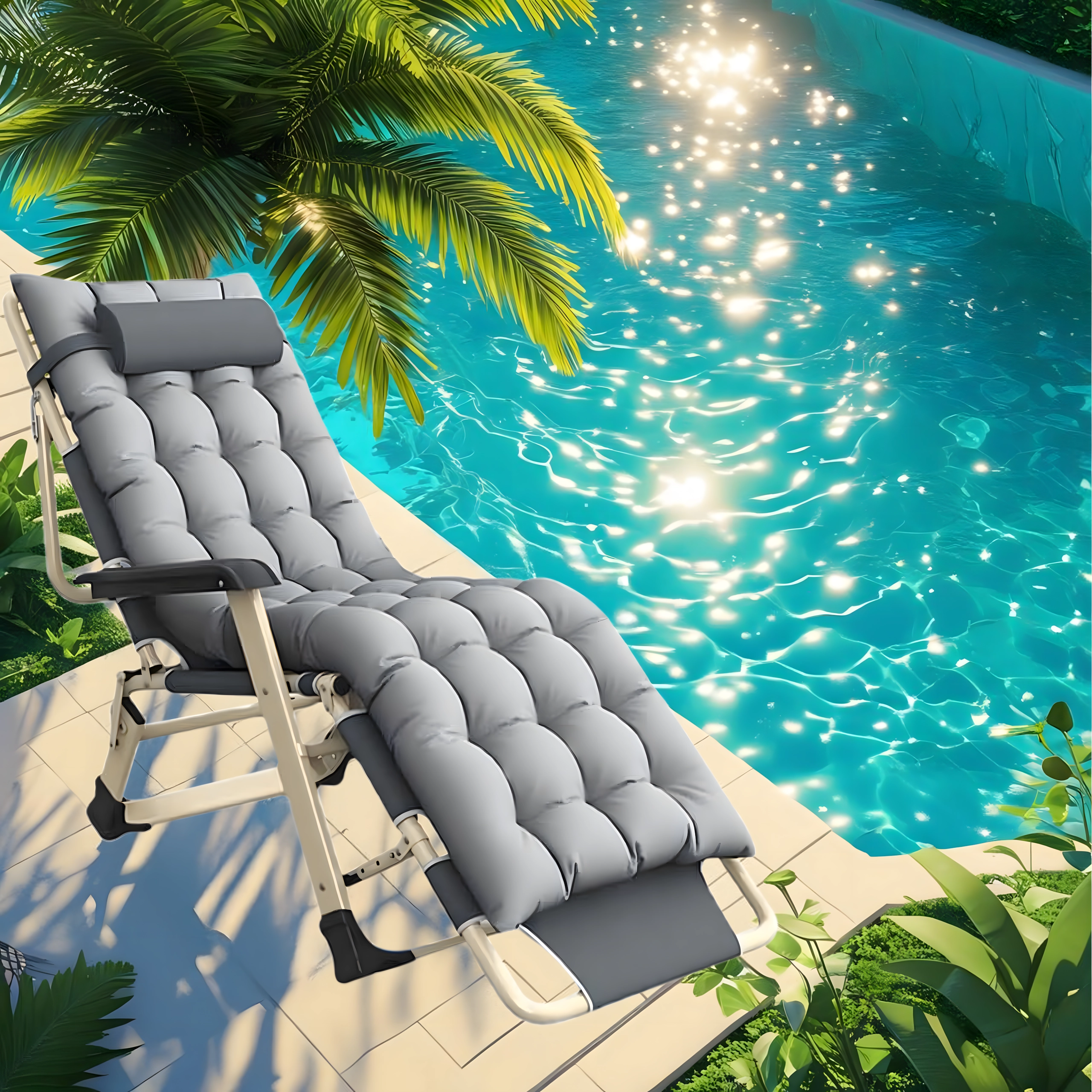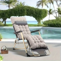 Praktisks un stilīgs atpūtas krēsls jūsu relaksācijai. Biezs polsterējums ar noņemamu spilventiņu sniedz patīkamu balstu galvai un mugurai, bet stabilā, saliekamā konstrukcija nodrošina drošu un ērtu gulēšanu gan mājās, gan ārā. Materiāli ir viegli kopjami un izturīgi pret parastiem laikapstākļu apstākļiem.