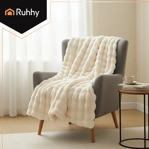 Izbaudiet tūlītēju komfortu ar mīksto un maigo RUHHY pledu universālā baltā krāsā. Tas ir viegls, silts un ārkārtīgi patīkams taustei. Pateicoties divslāņu konstrukcijai – augšpuse kā truša kažoka imitācija un apakša – maigs plīšs – tas nodrošina maksimālu komfortu. Vienkārša kopšana veļasmašīnā 30 °C temperatūrā, izturība pret pūkošanos un stilīgs izskats padara to par ideālu papildinājumu gan guļamistabai, gan viesistabai.