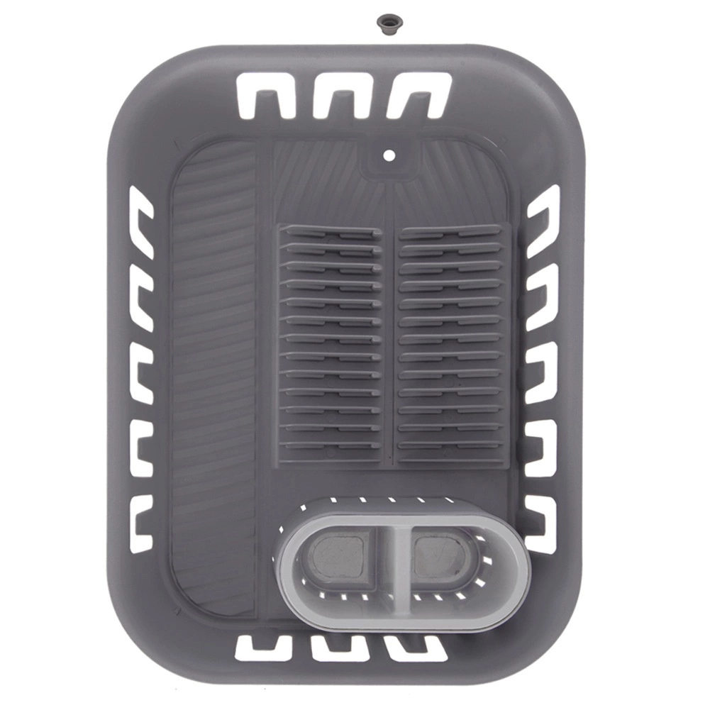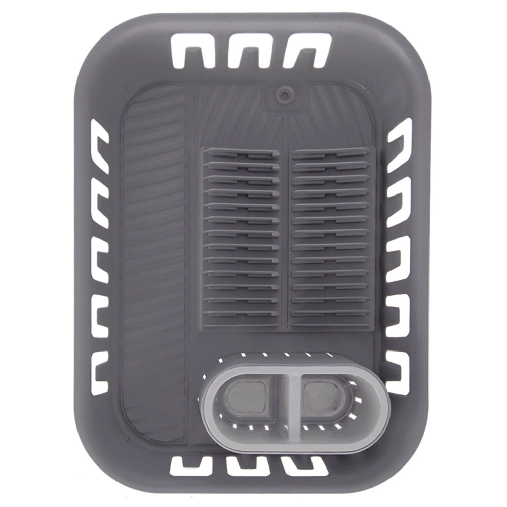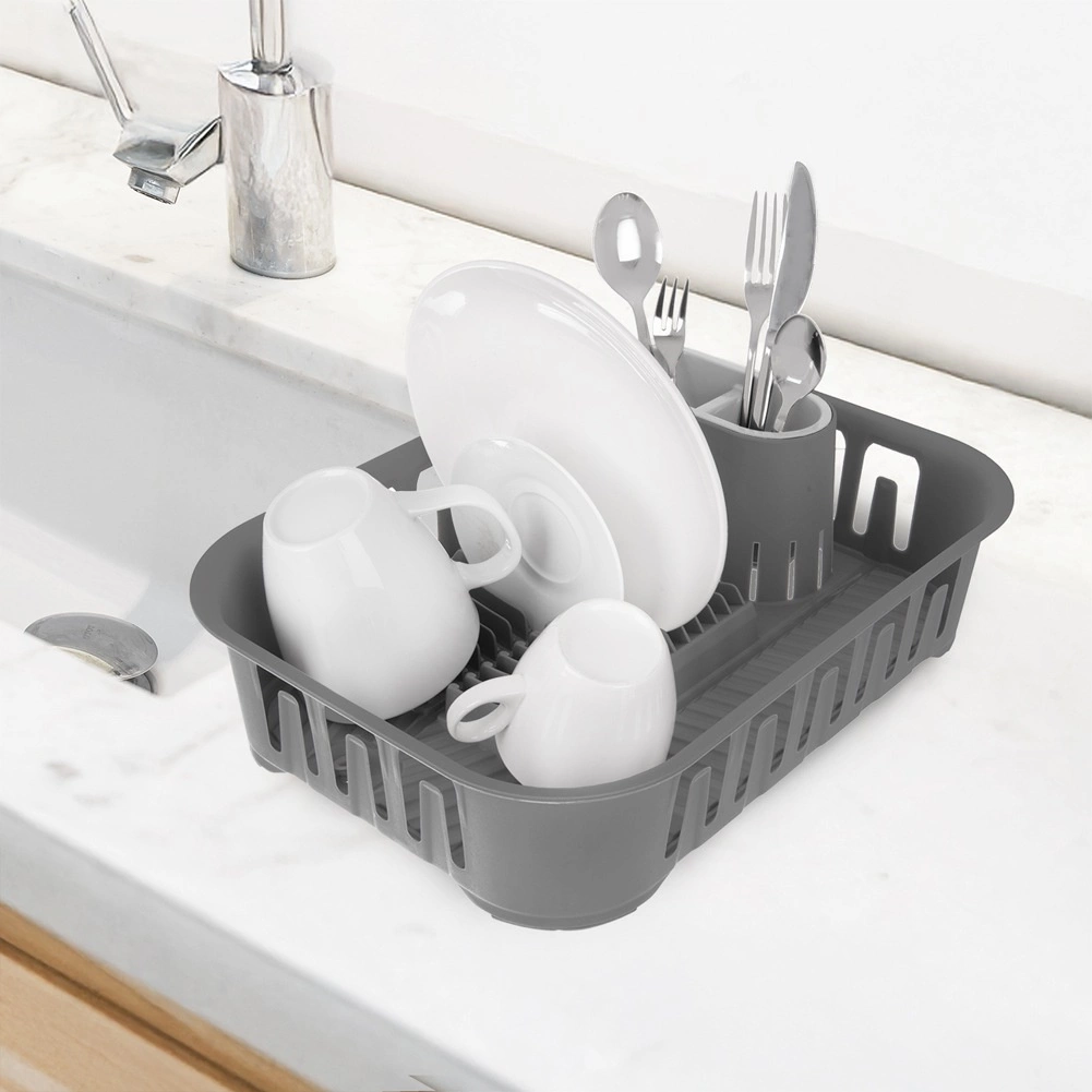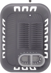 Ērts trauku notecinātājs elegantā pelēkā krāsā atvieglo nomazgātu šķīvju, krūžu un galda piederumu žāvēšanu un vienlaikus pasargā virtuves virsmu no ūdens. Tam ir pārdomāts dibens ar integrētu noteku un aizbāzni, tāpēc nav nepieciešams papildu paplāte. Komplektā ietilpst izņemama galda piederumu kaste ar divām nodalījumu kamerām ērtai šķirošanai.