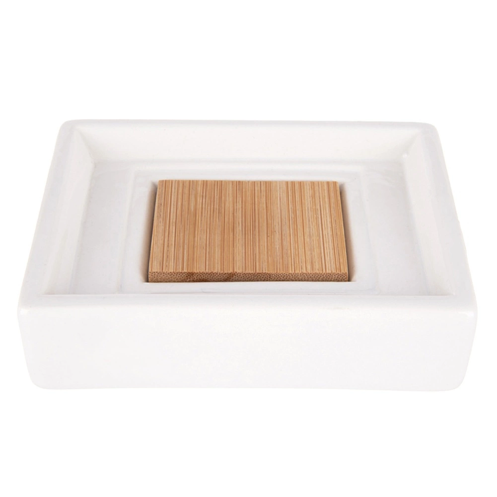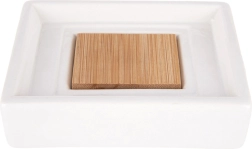 Paaugstināta bambusa ieliktnis palīdz novadīt ūdeni, pagarina ziepju kalpošanas laiku un uztur tīrību pie izlietnes.