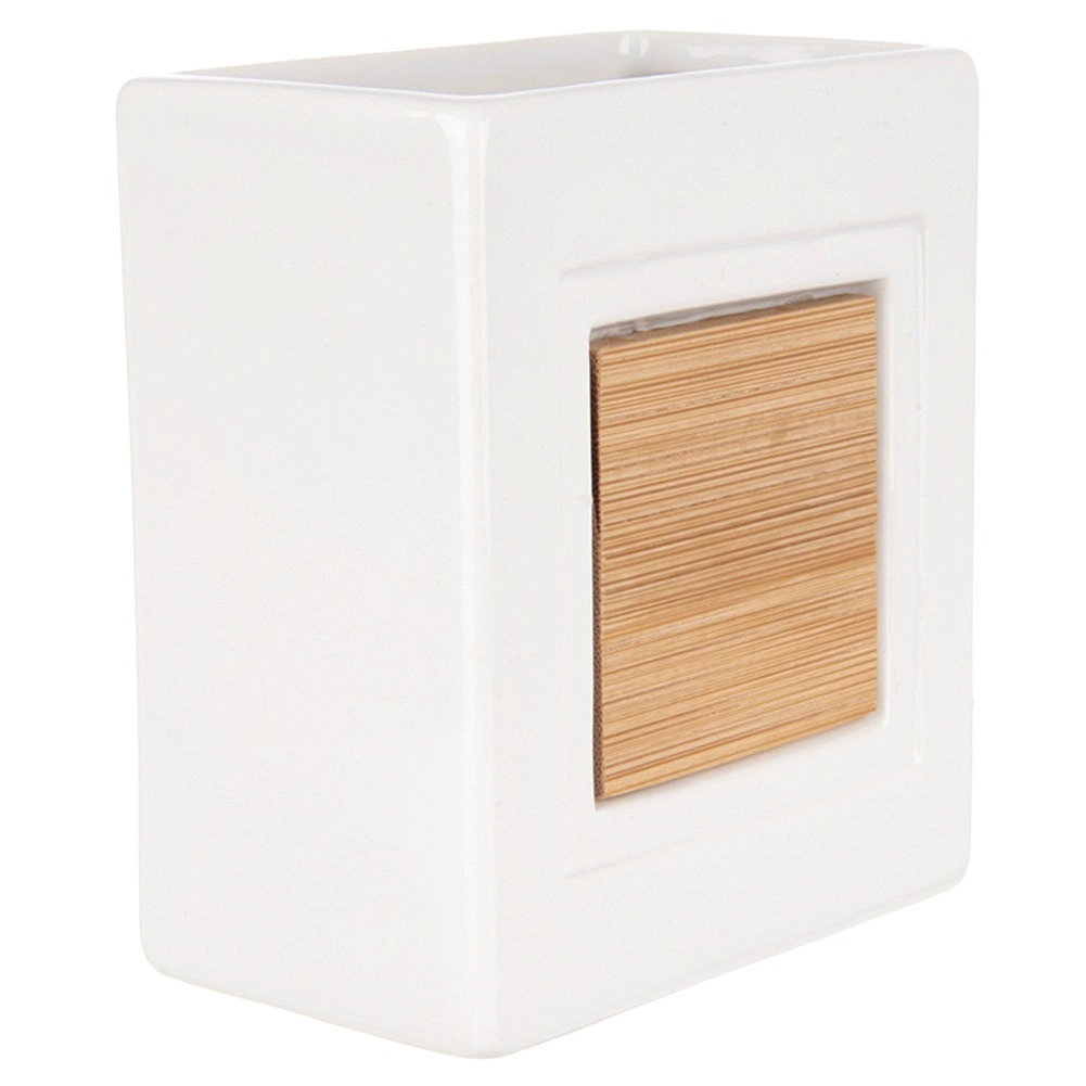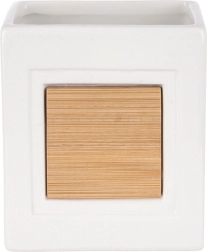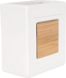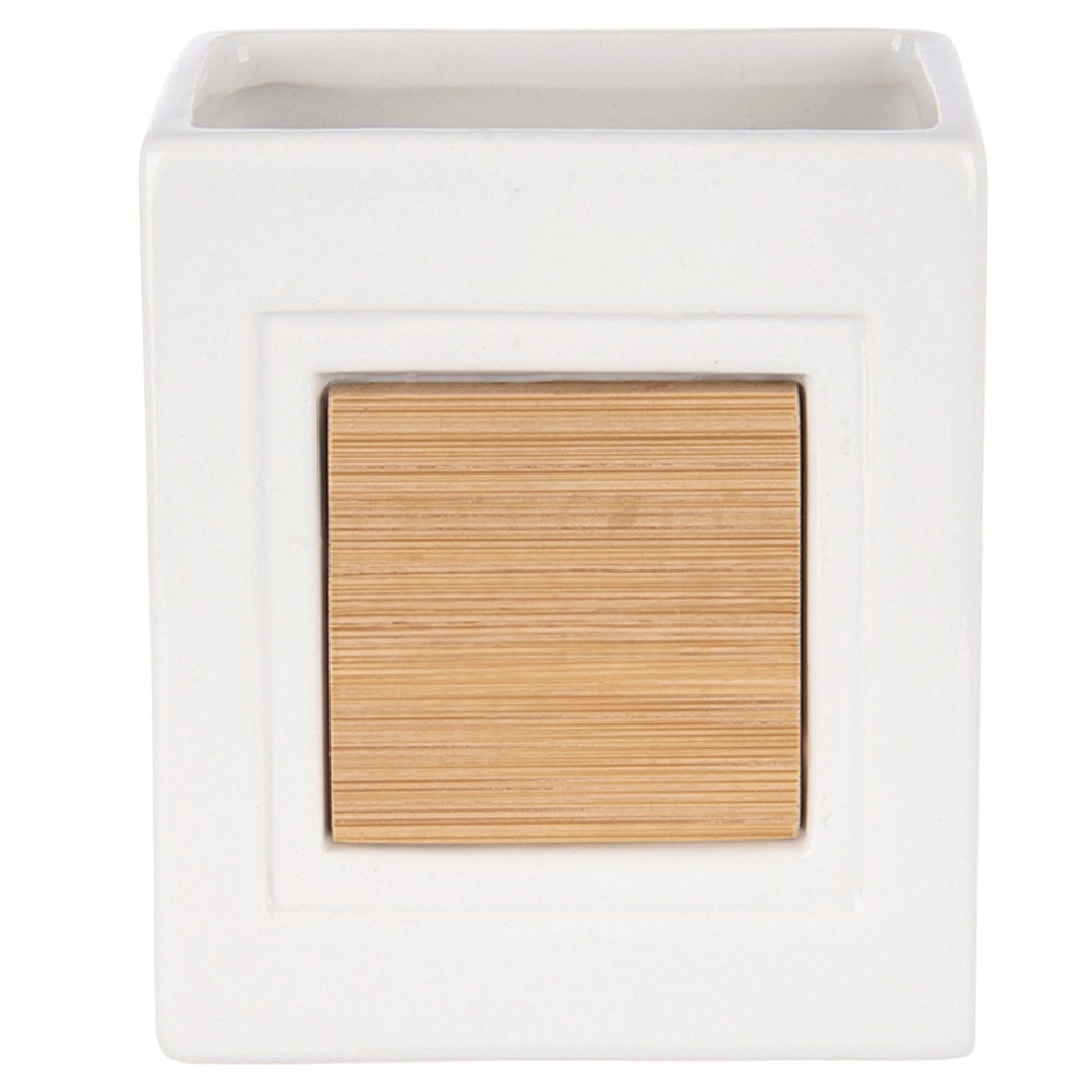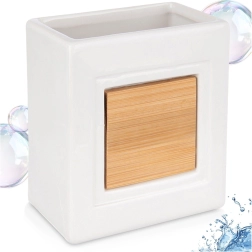 Šī stilīgā krūzīte ir ideāla jebkurai vannas istabai. Tā apvieno izturīgu dolomīta keramiku ar dabīgu bambusu, radot tīru un vienlaikus mājīgu iespaidu. Atvērtā augšdaļa ļauj pārskatāmi uzglabāt zobu birstes, zobu pastu un kosmētikas otas.