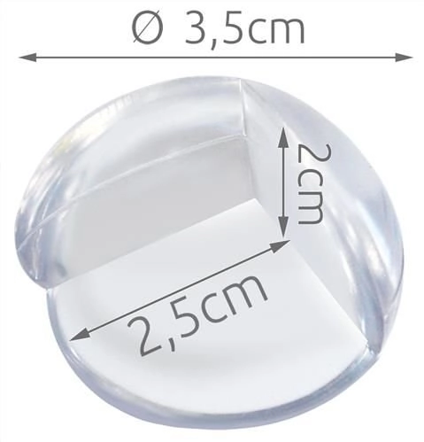 Aizsargi ir izgatavoti no mīksta un izturīga materiāla, kas slāpē triecienus un palielina drošību, īpaši mājokļos ar maziem bērniem. Praktisks iepakojums ar 4 gab. sedz tipiskos pakļautos galdu vai skapīšu stūrus.