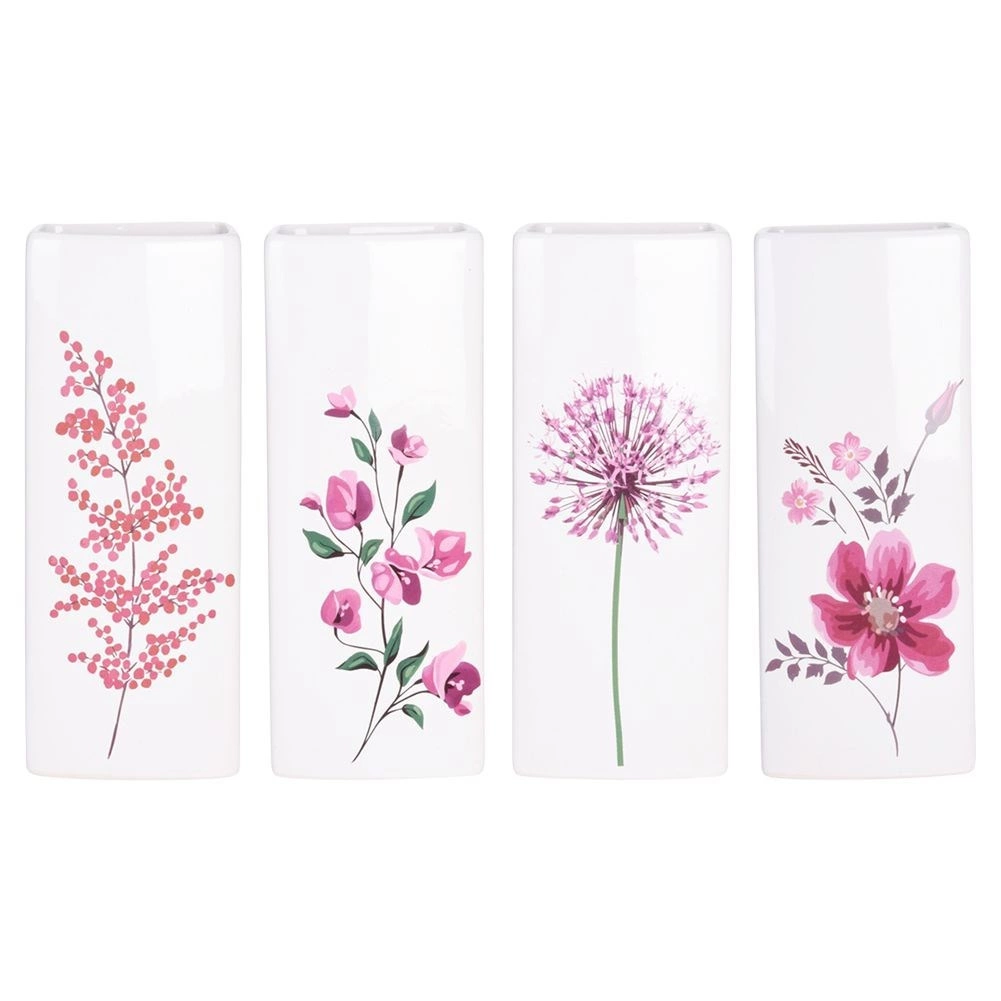 Balta glazūra un dažādi rozā ziedu motīvi piešķir tīru un dekoratīvu izskatu – piemērots viesistabai, guļamistabai un bērnistabai.