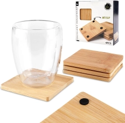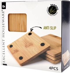 Stilīgs četru kvadrātveida bambusa koka paliktnīšu komplekts aizsargā jūsu galdu no karstuma, mitruma un skrāpējumiem. Paliktnīšiem ir izmēri 9,7 × 10 × 0,7 cm, tie ir izturīgi, videi draudzīgi un, pateicoties pretbuksēšanas ieliktnīšiem, droši turas vietā. Lieliski piemēroti karstiem un aukstiem dzērieniem un kā eleganta galda dekorācija.