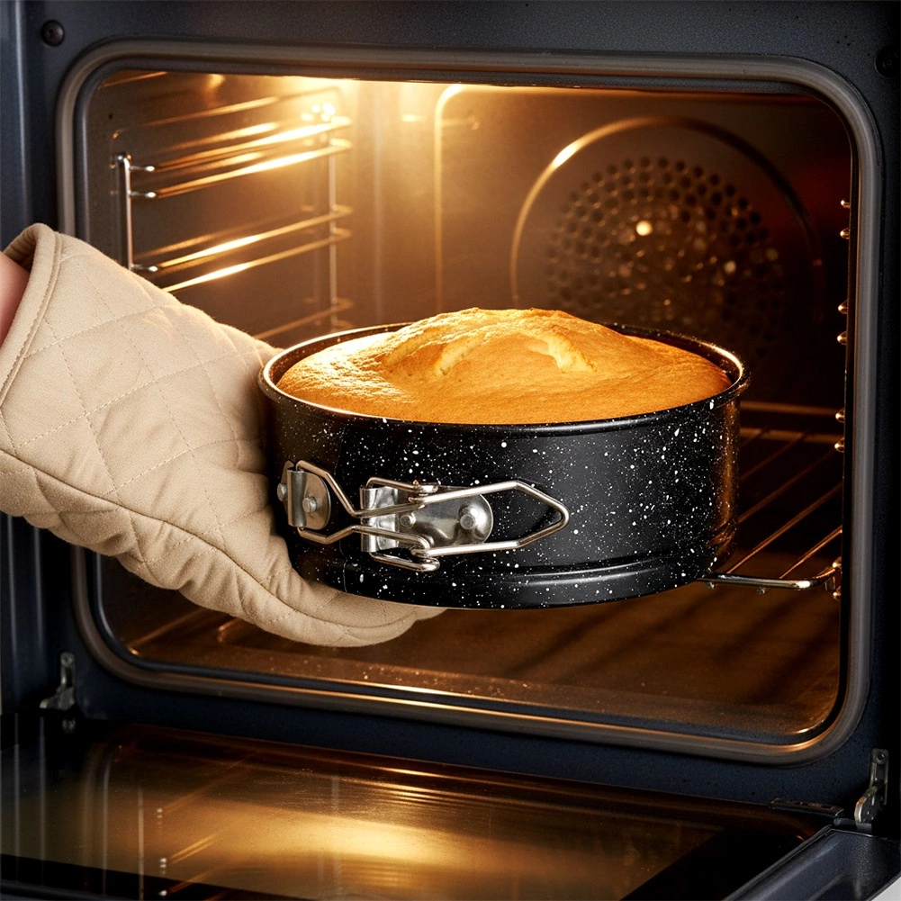 Sānu sprādze un noņemamā pamatne ļauj ātri atbrīvot kūku, nebojājot tās formu. Ideāli piemērota siera kūkām un daudzslāņu mini kūkām.
