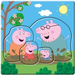 Puzles ar Pepas motīvu ir vienkāršas un ideāli piemērotas bērniem, kuri tikai sāk apgūt formu salikšanu.