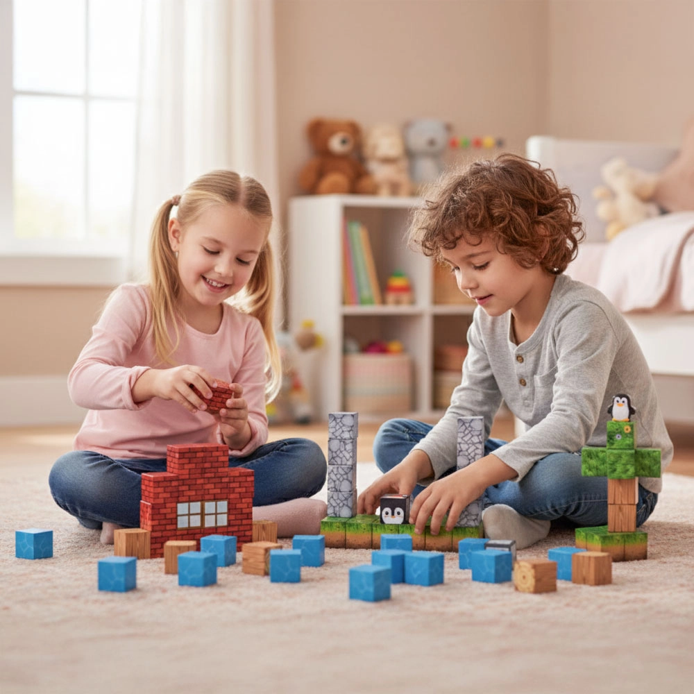 Iebūvētie magnēti nodrošina ātru un stingru savienojumu no visām pusēm. Bērni viegli uzceļ stabilas konstrukcijas bez sarežģītas detaļu saskaņošanas.