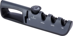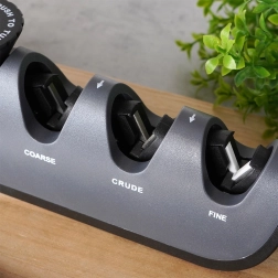 Četras asināšanas zonas ļauj virzīties pakāpeniski: Coarse stipri atstrādāta asmens malas atjaunošanai, Crude klasiskai asināšanai, Fine (keramika) smalkai pieasināšanai un gala pulēšanai, kā arī atsevišķa dimanta zona šķērēm. Kompaktie izmēri atvieglo glabāšanu arī virtuves atvilktnē, tomēr rīks ir izturīgs un viegls ikdienas lietošanai.