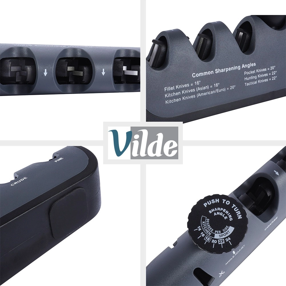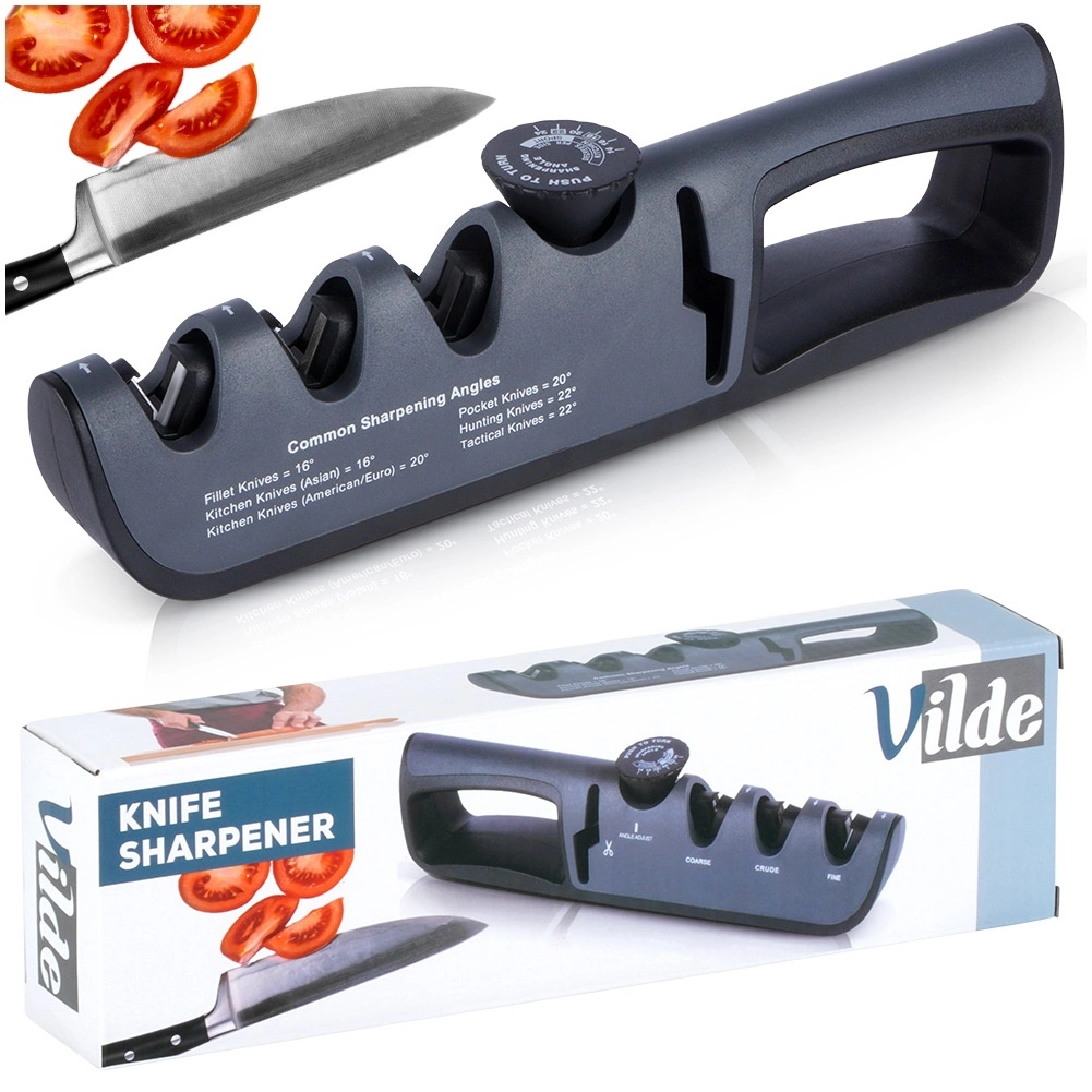 Šis universālais Vilde nažu asinātājs apvieno mājas asināšanas ērtumu ar regulējamu leņķu precizitāti. Ar pagriežamo selektoru viegli iestatīsiet pareizo leņķi 14–24° atkarībā no asmens tipa – no virtuves un filejas nažiem līdz EDC un medību nažiem. Pateicoties pretslīdes pamatnei un ergonomiskam rokturim ar platu satvērienu, darbs ir drošs un stabils.