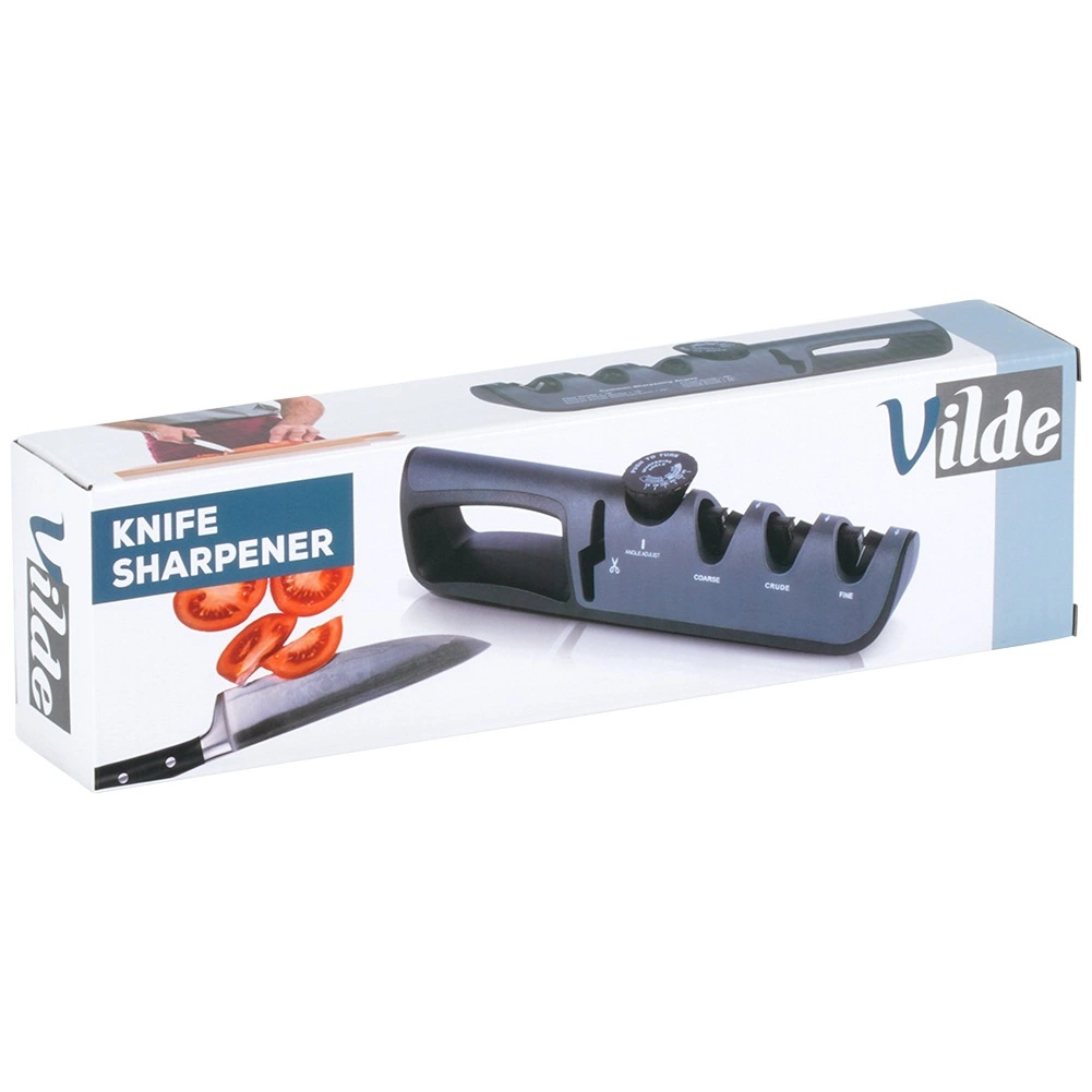 - Universāla lietošana tērauda nažiem, keramikas nažiem un šķērēm