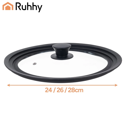Praktisks universāls vāks 3 vienā no zīmola RUHHY aizstāj trīs parastos vākus un ietaupa vietu virtuvē. Pateicoties diametriem 24/26/28 cm, tas der katliem un pannām, karstumizturīgais stikls ļauj kontrolēt gatavošanu, silikona mala nodrošina ciešu piegulšanu un aizsargā trauku malas, bet tvaika vārsts novērš pāršļākšanos. Piemērots trauku mazgājamajai mašīnai, ērts ergonomisks rokturis, droši materiāli ar LFGB sertifikāciju.