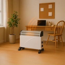Kompakts elektriskais konvektors ar 2000 W jaudu nodrošina ātru, klusu un efektīvu apkuri mājām un birojam. Pateicoties regulējamam termostatam un trim jaudas līmeņiem, siltumu viegli pielāgosiet aktuālajiem apstākļiem. Stabila konstrukcija, zems trokšņu līmenis un taupīgs darbības režīms padara to par ideālu izvēli vēsām dienām.